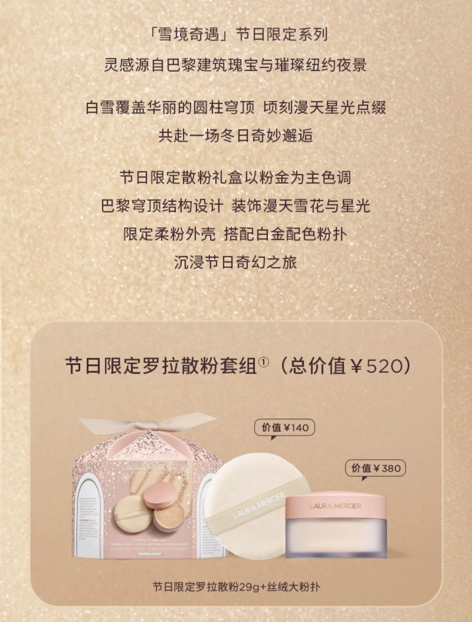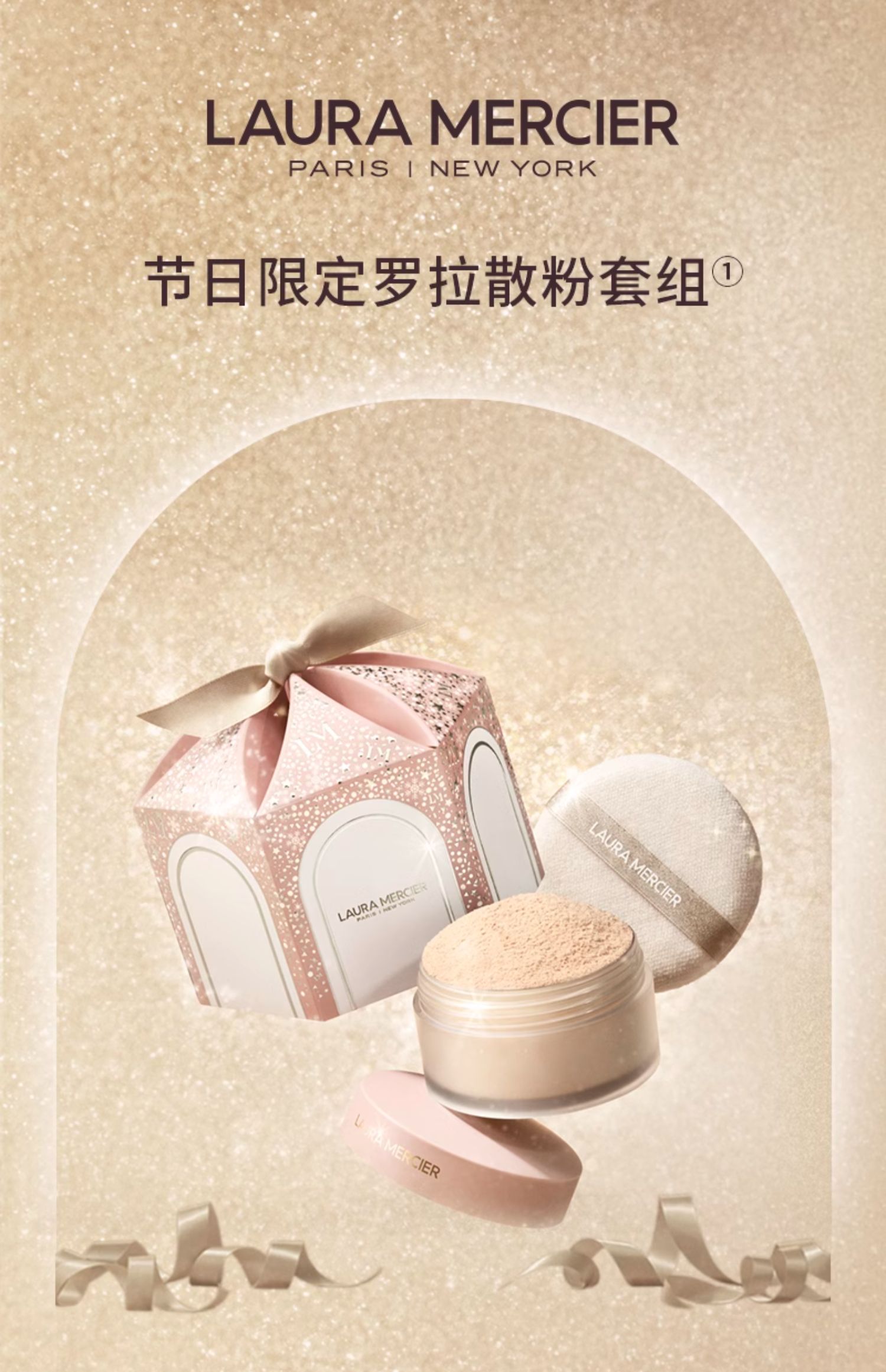 品牌直发 LAURA MERCIER 罗拉玛希 节日限定焕颜清透蜜粉套组(节日限定散粉 29g+丝绒大粉扑)