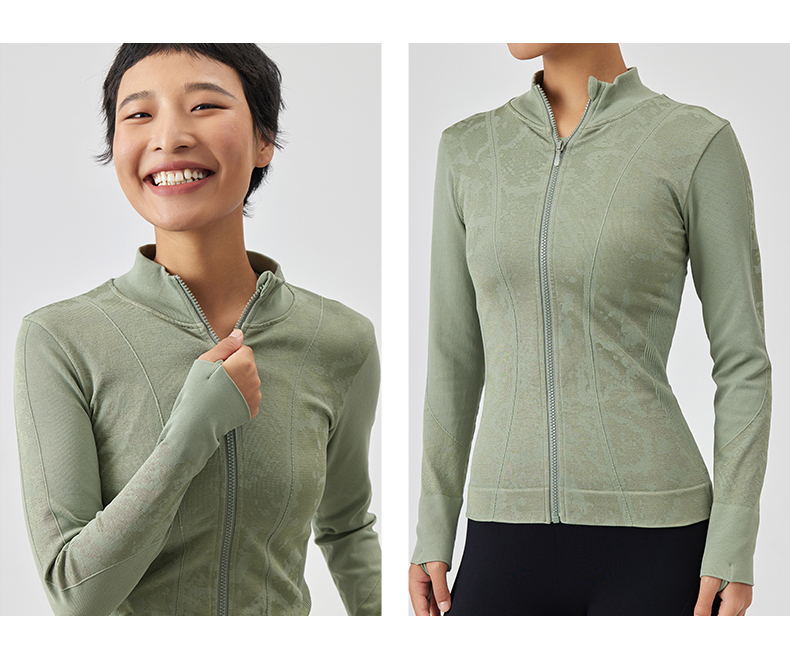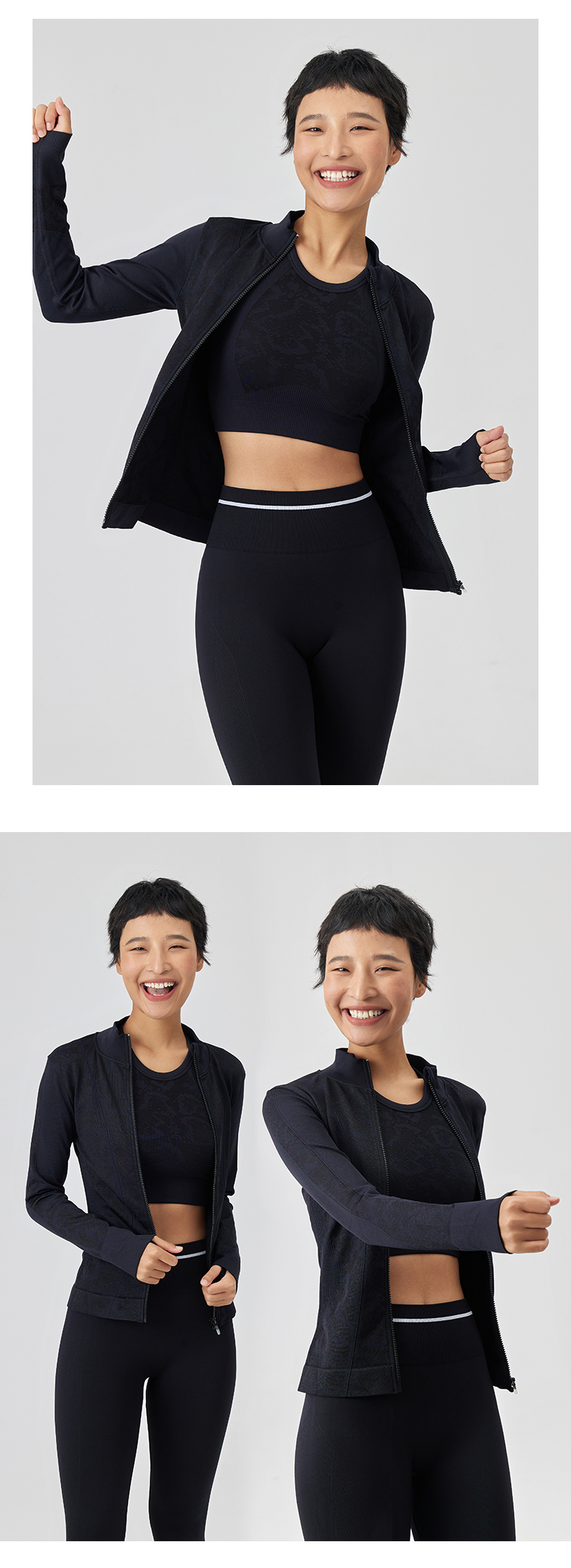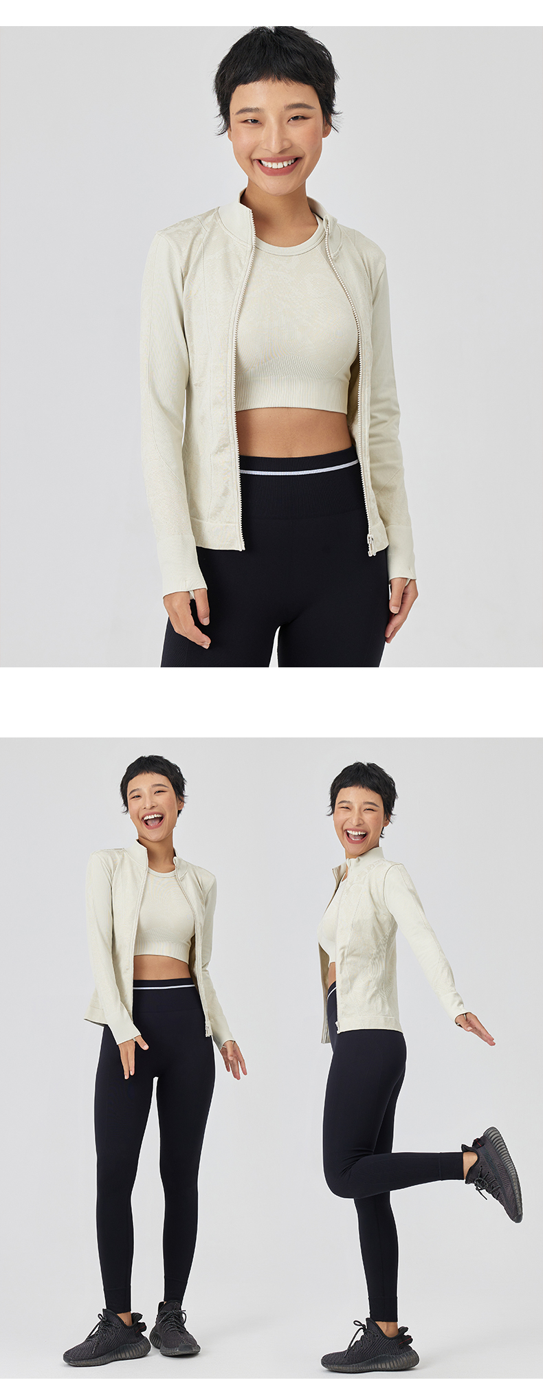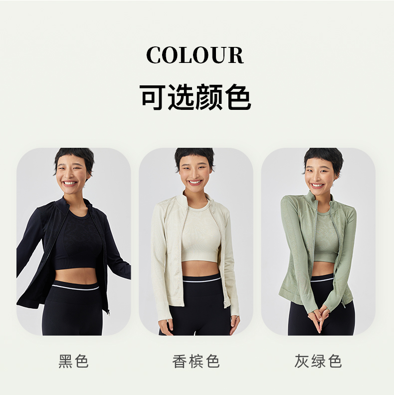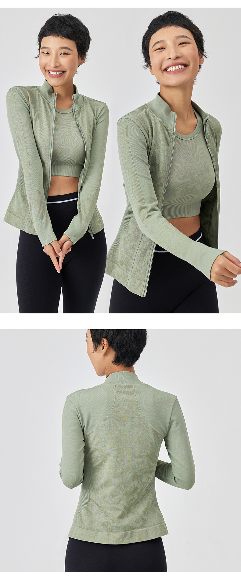 Leorrey乐拉无缝提花针织工艺运动瑜伽健身立领普拉提拉链外套