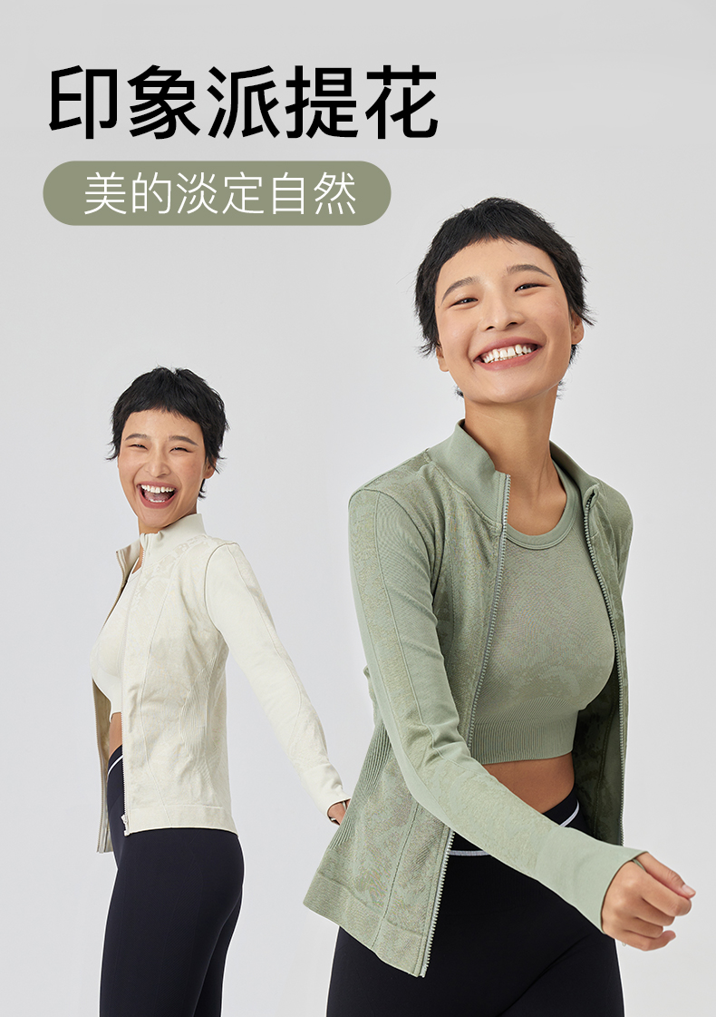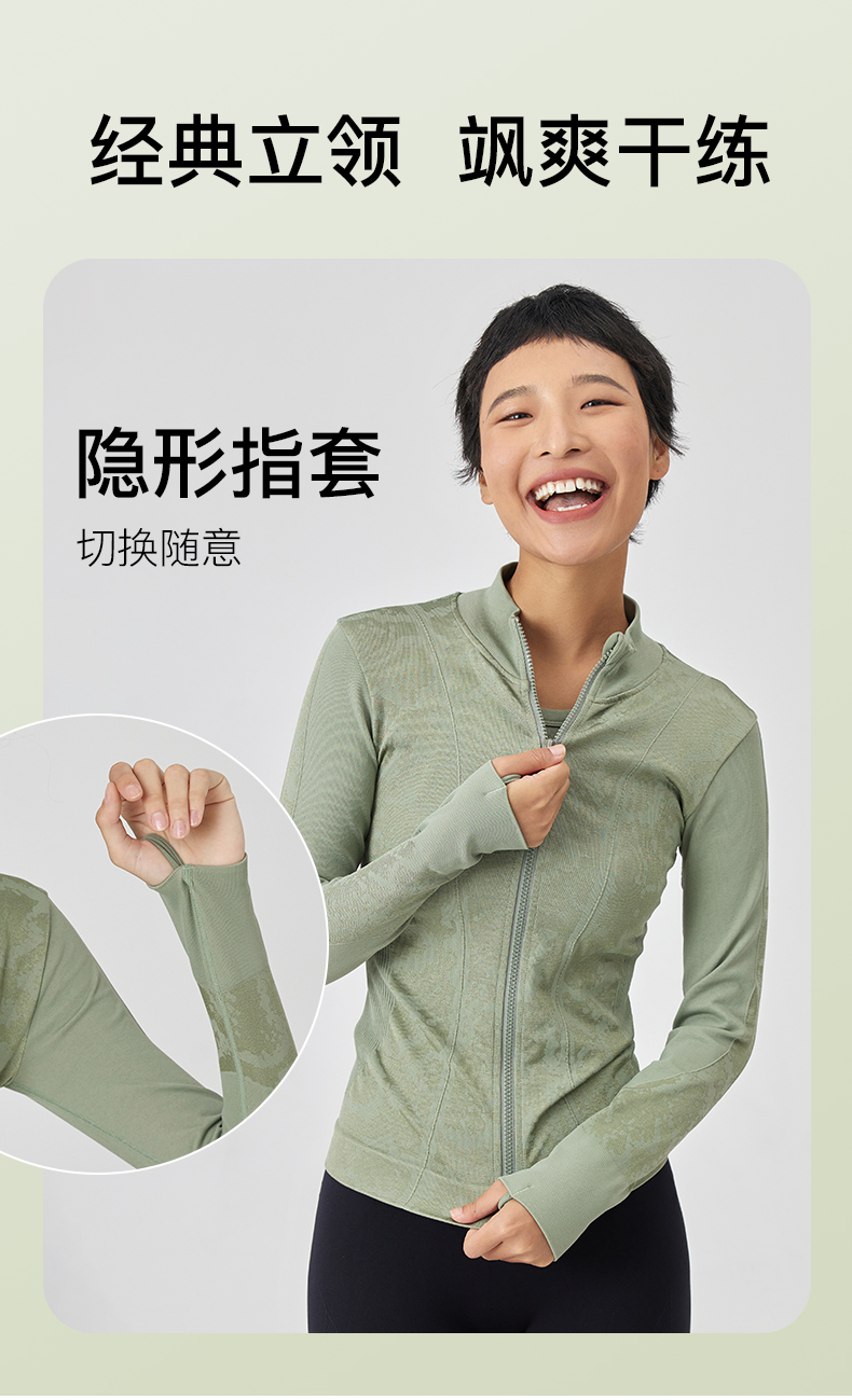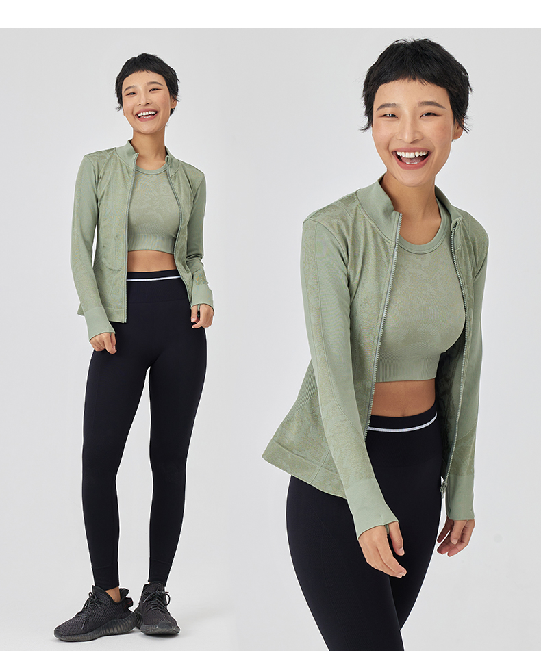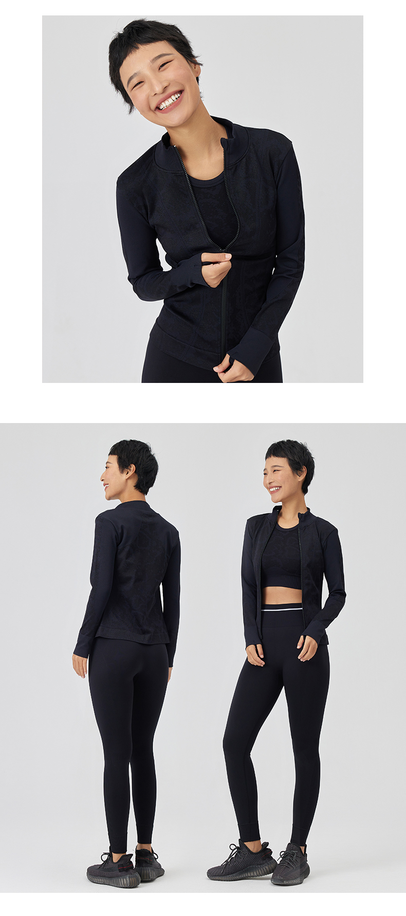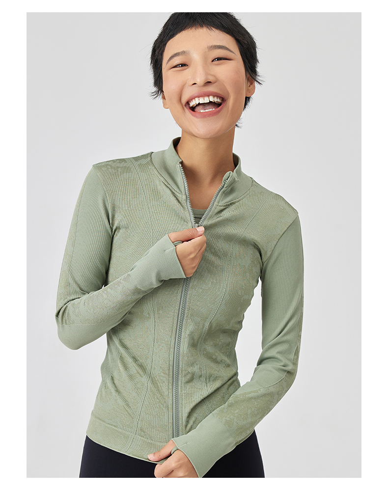 Leorrey乐拉无缝提花针织工艺运动瑜伽健身立领普拉提拉链外套