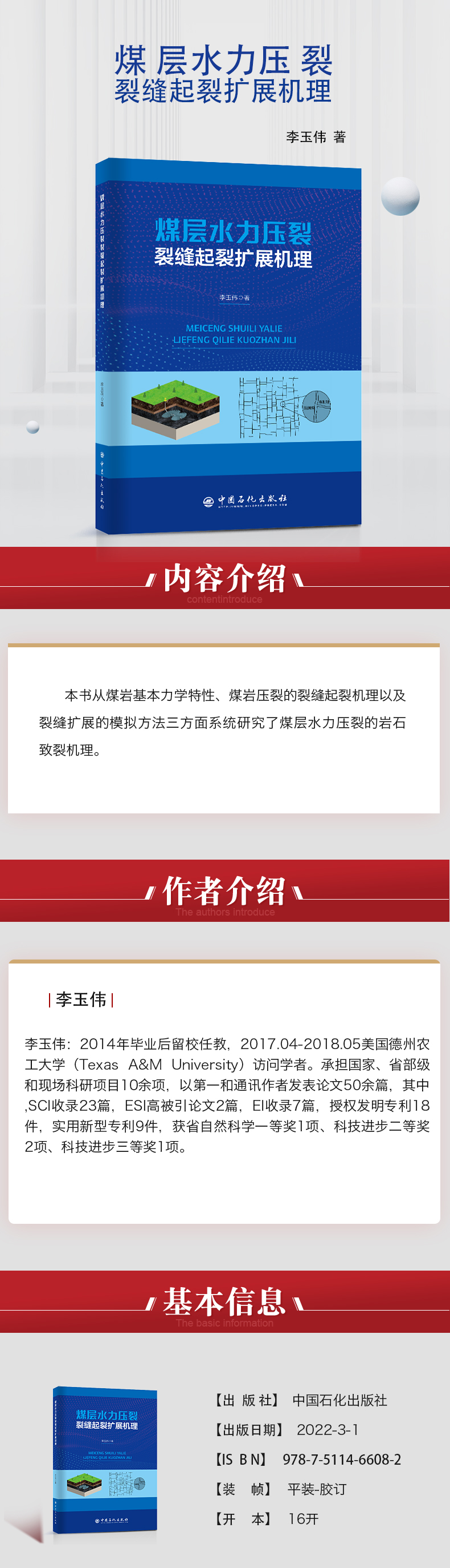 本书从煤岩基本力学特性、煤岩压裂的裂缝起裂机理以及裂缝扩展的模拟方法三方面系统研究了煤层水力压裂的岩石致裂机理。