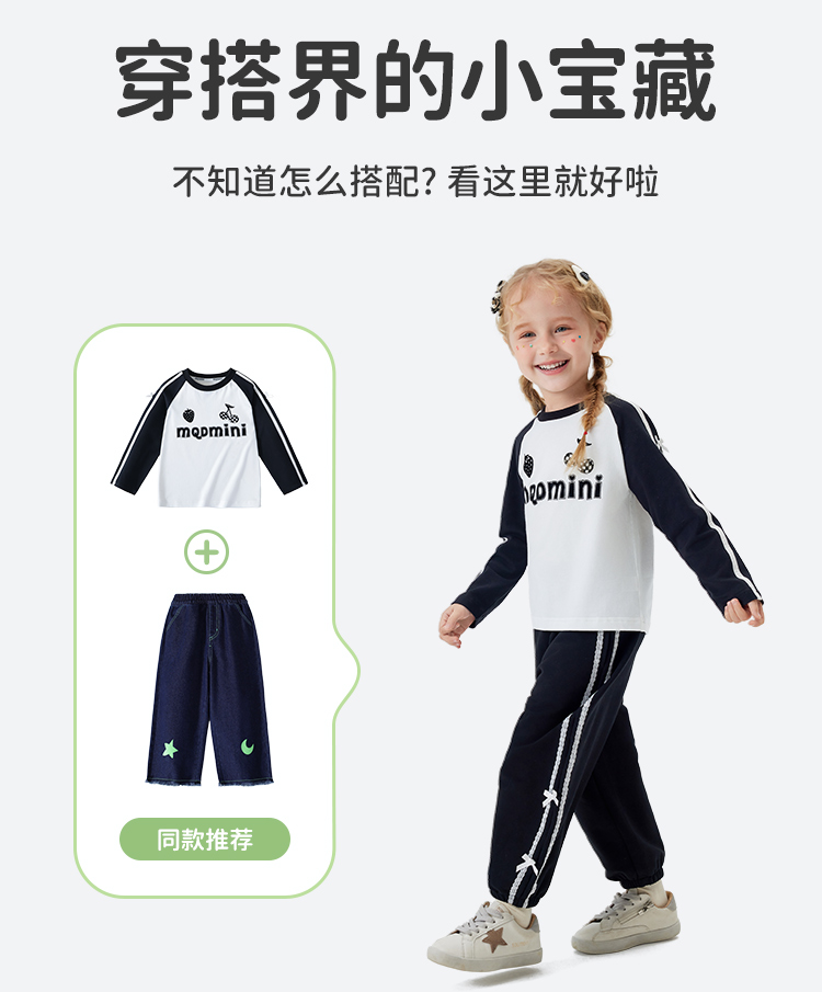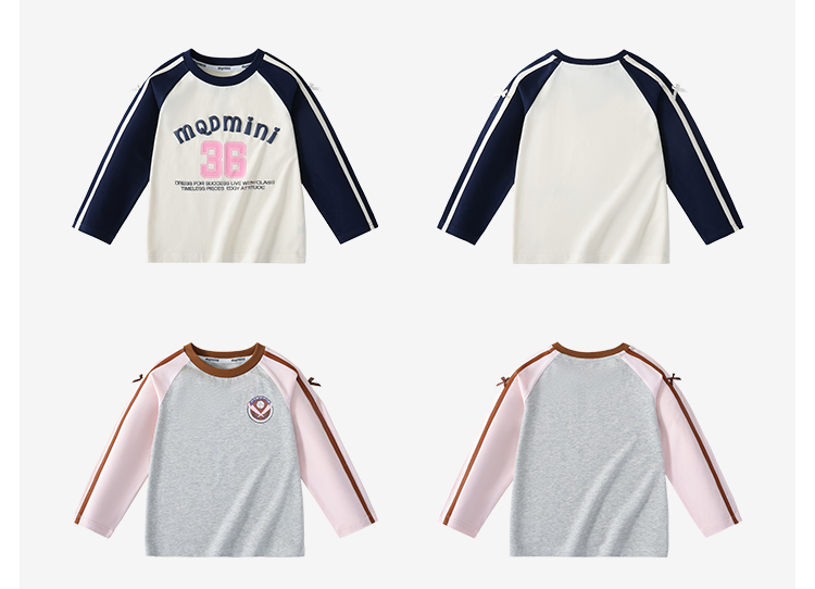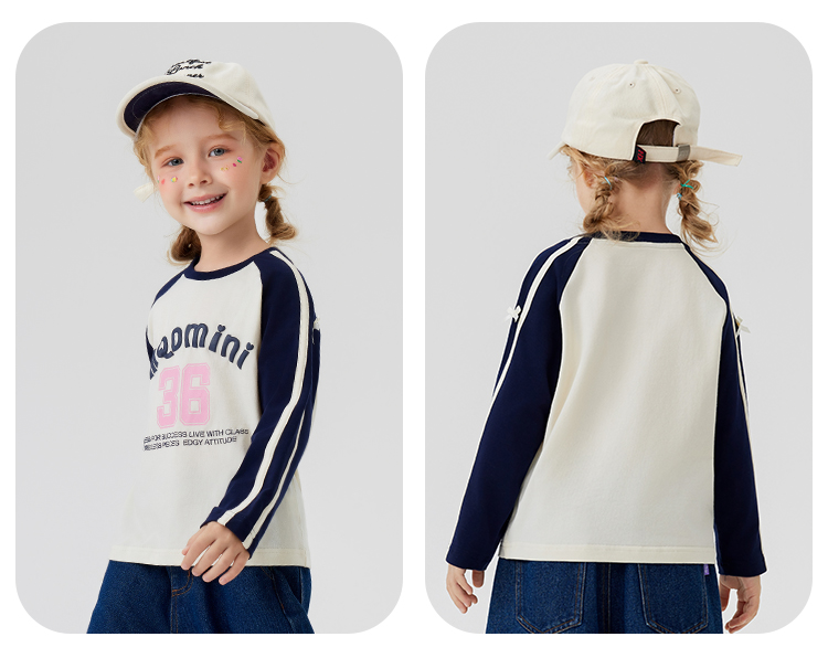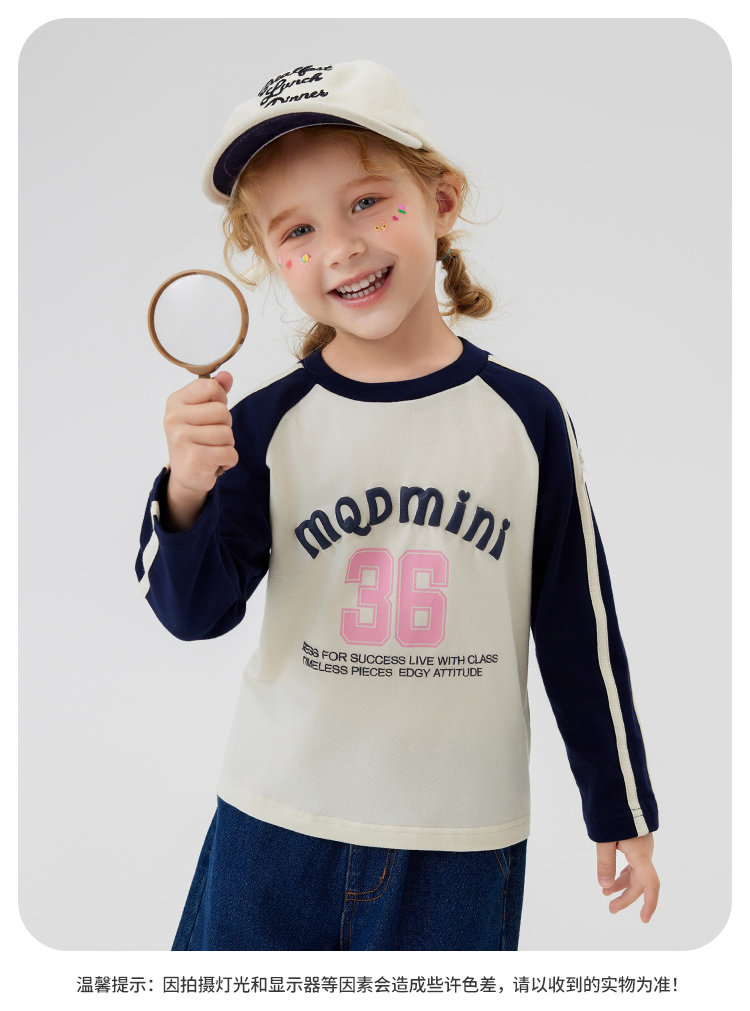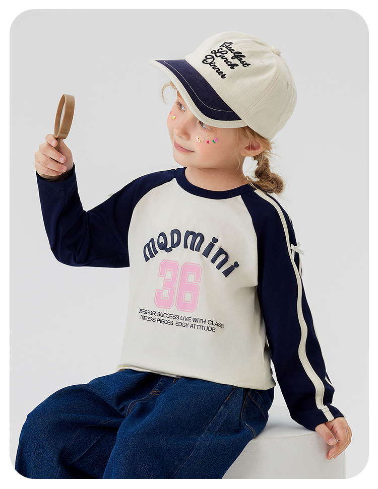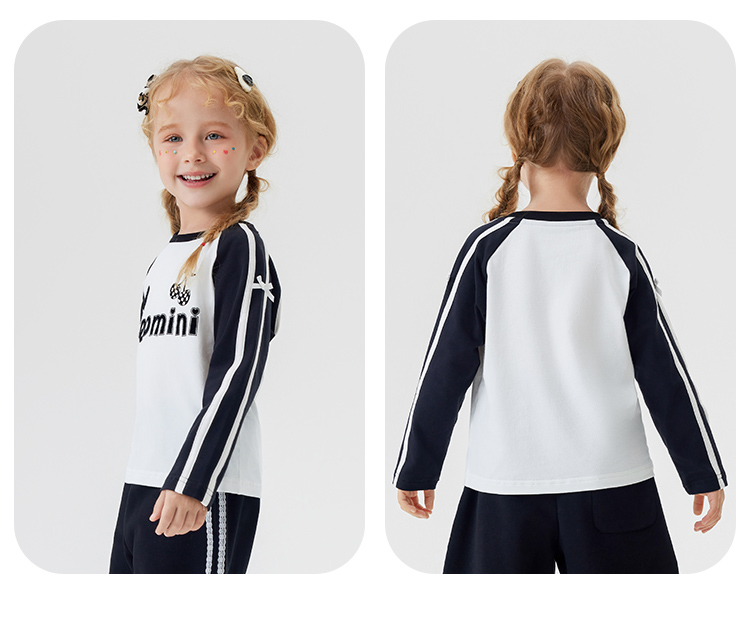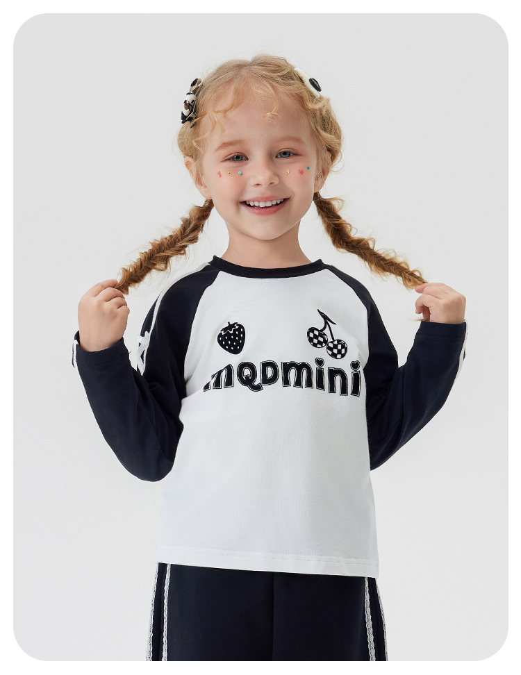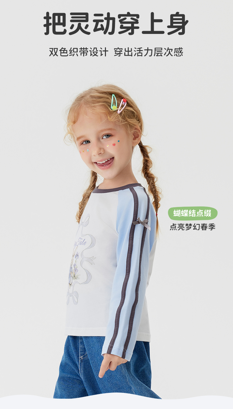 【清仓捡漏】【90-140】【MQDmini】女童春秋t恤长袖双色织带上衣