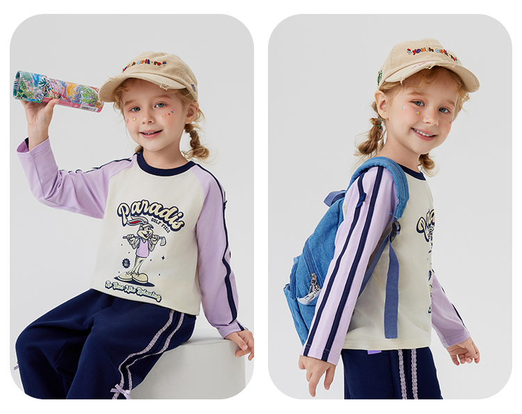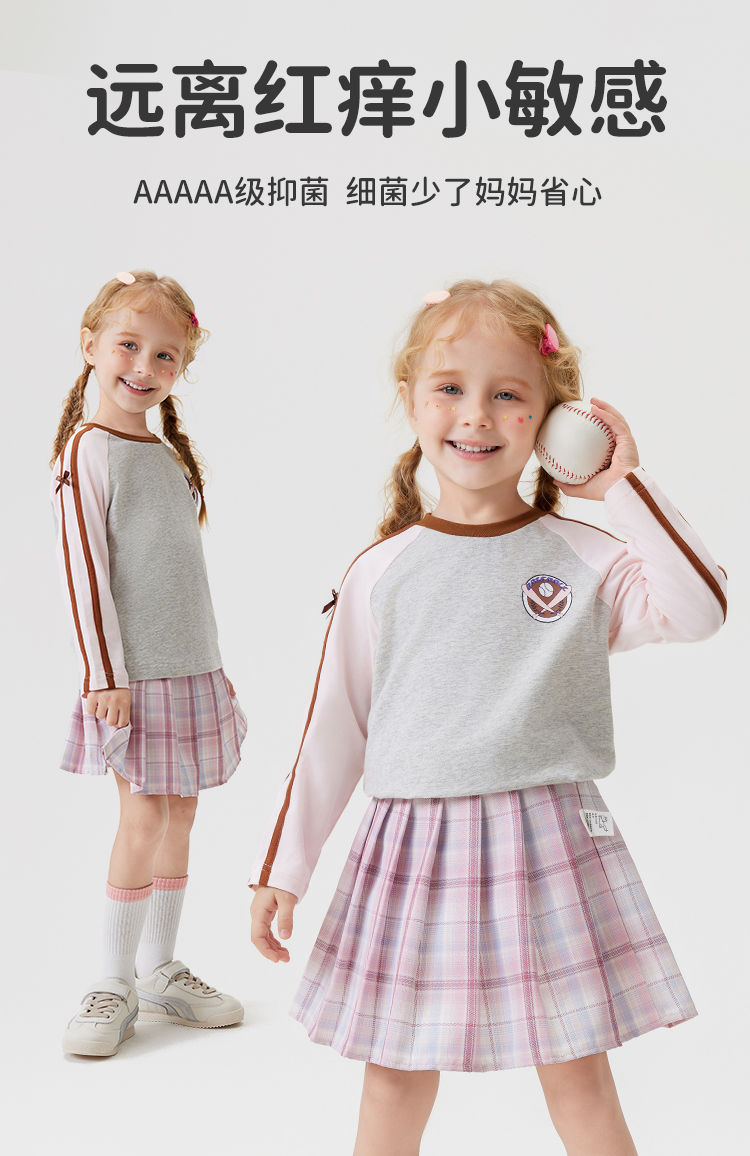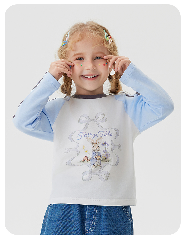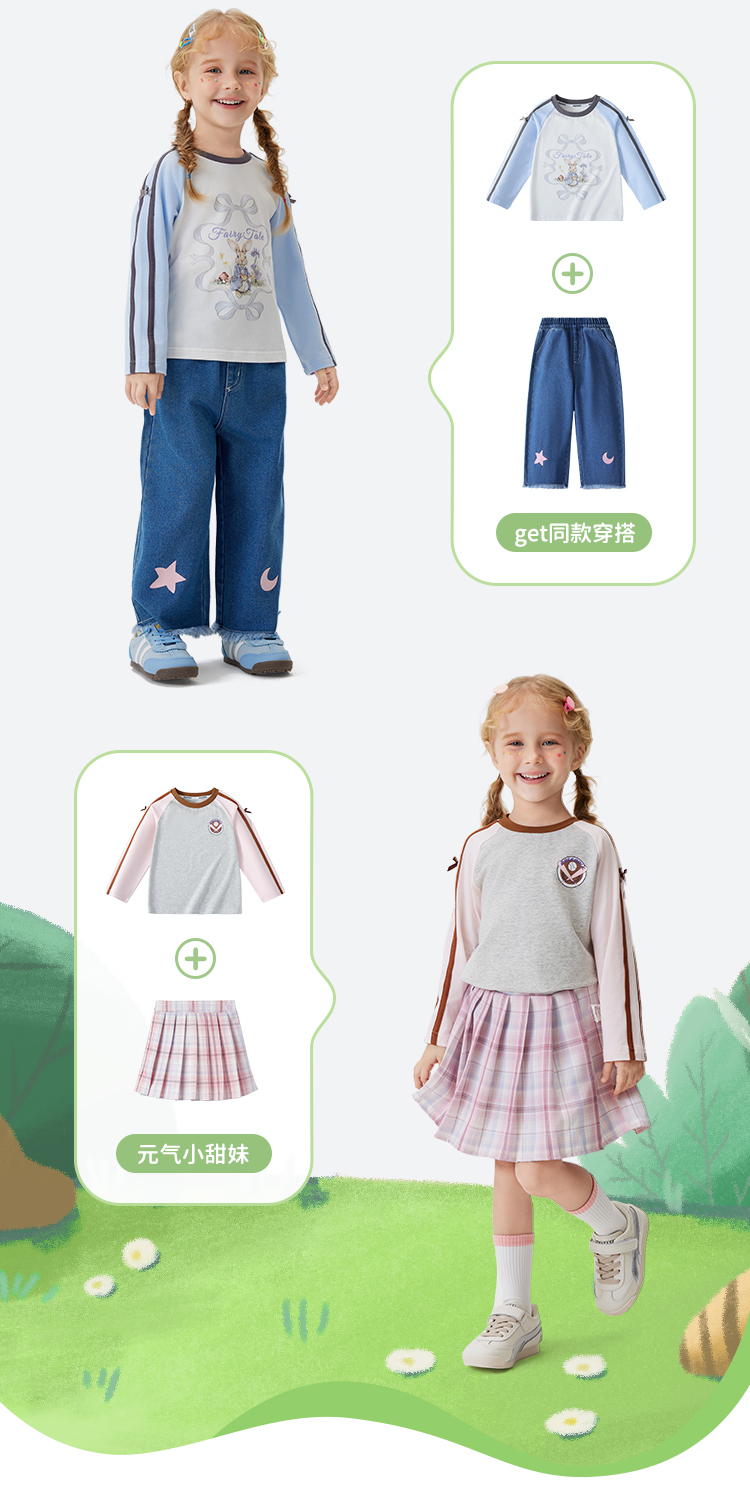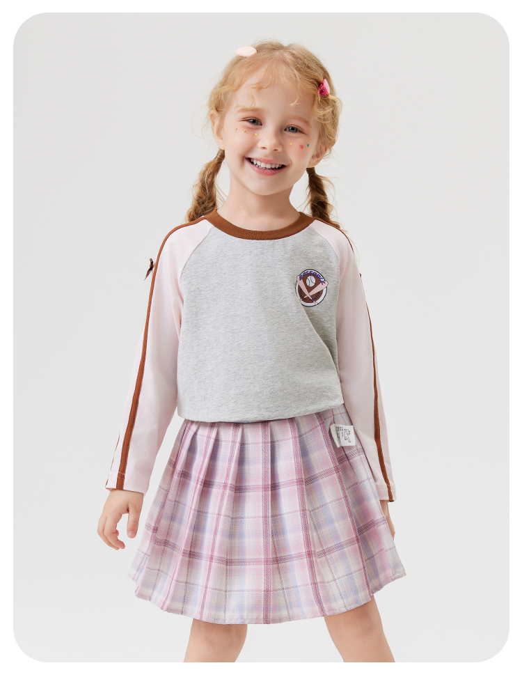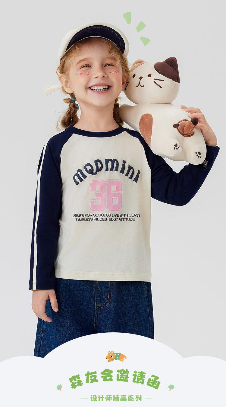 【清仓捡漏】【90-140】【MQDmini】女童春秋t恤长袖双色织带上衣