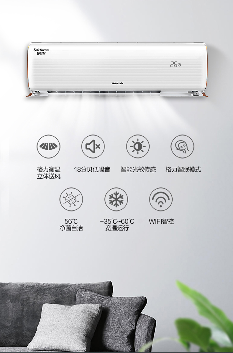 格力睡梦星变频冷暖大1匹1级能效挂机空调 KFR-26GW/(26599)FNhBc-B1(WIFI)(皓雪白)