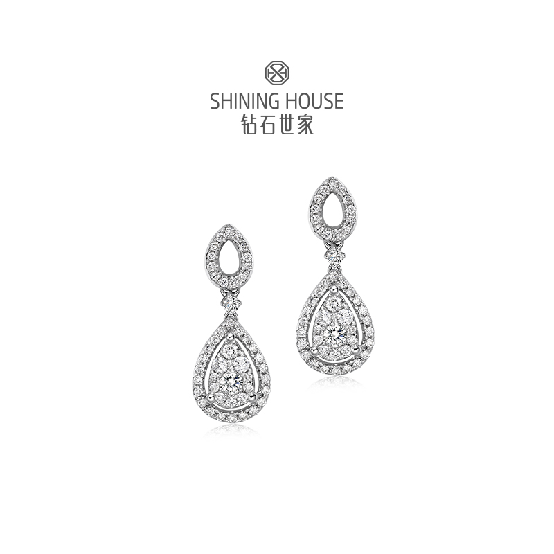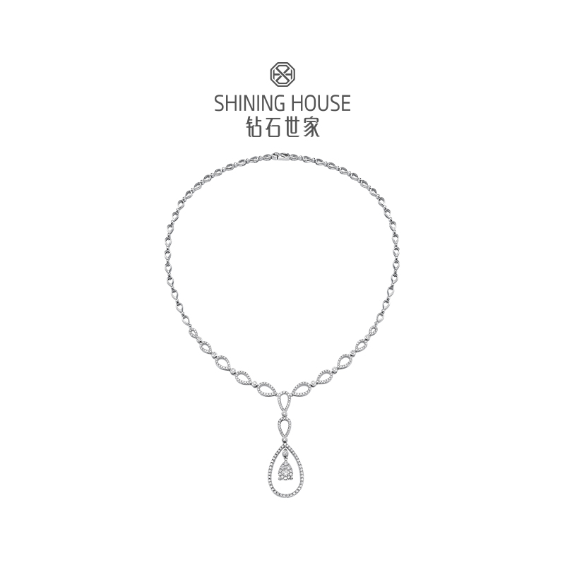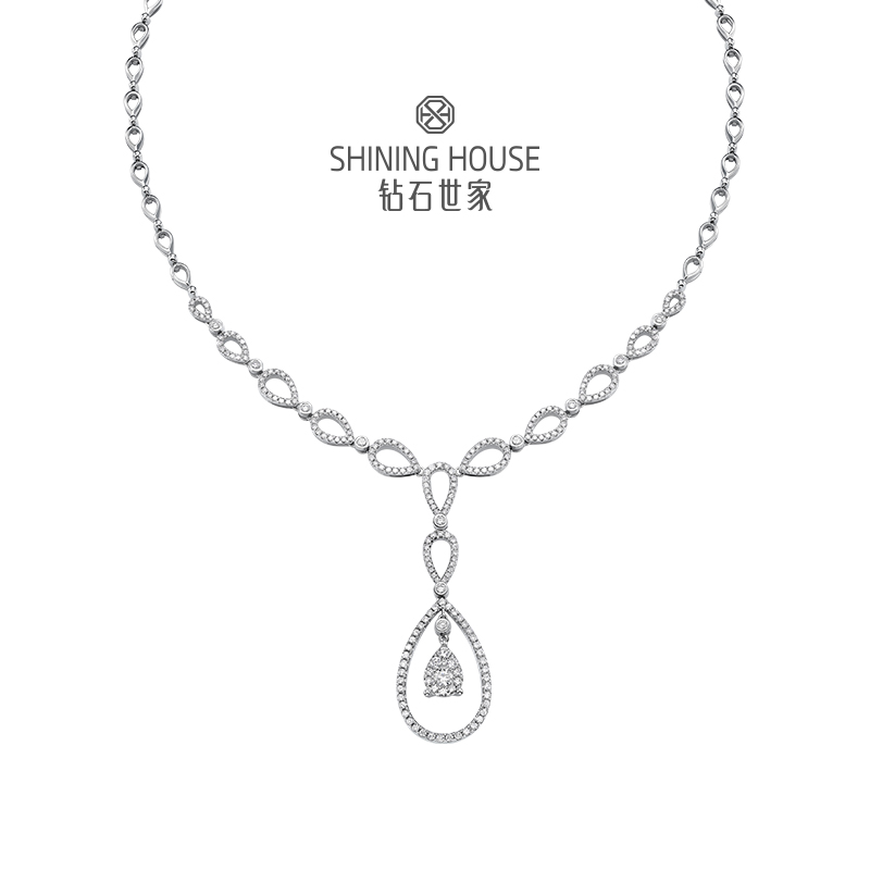 幻美佳人系列[天然] 钻石世家 18k金钻石项链 18K金钻石耳饰 天然真钻K金项链K金耳饰婚嫁结婚订婚耀目群镶18K金天然真钻钻石项链钻石耳饰(预计3天发货)