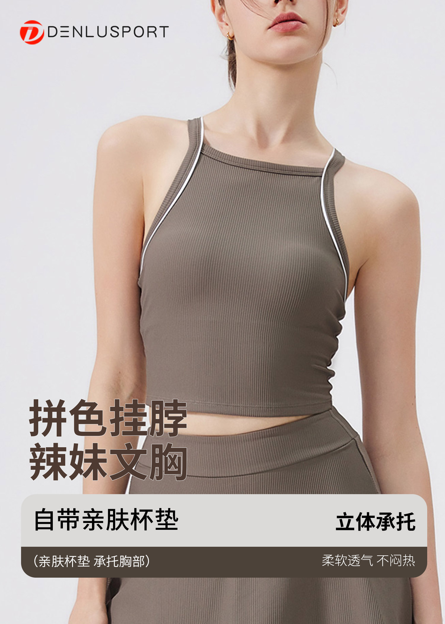 撞色美背速干挂脖内衣裸感瑜伽背心 DY66197