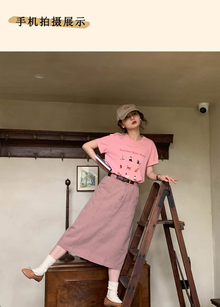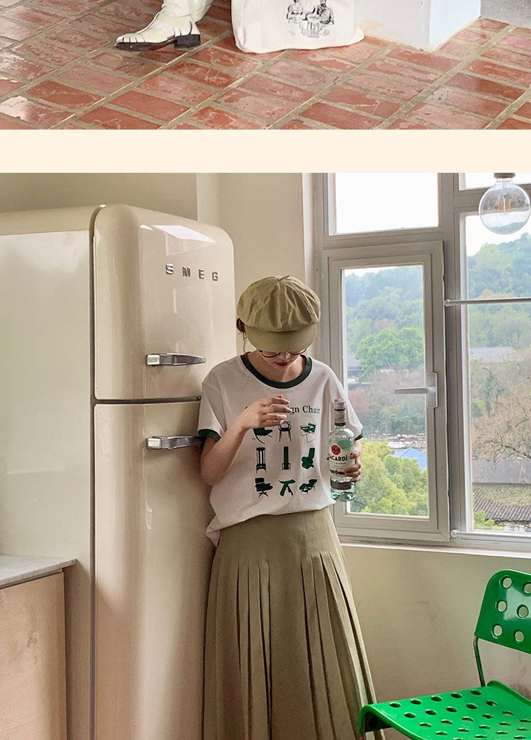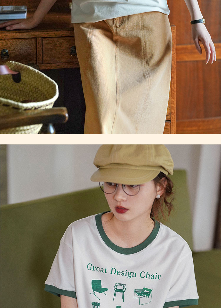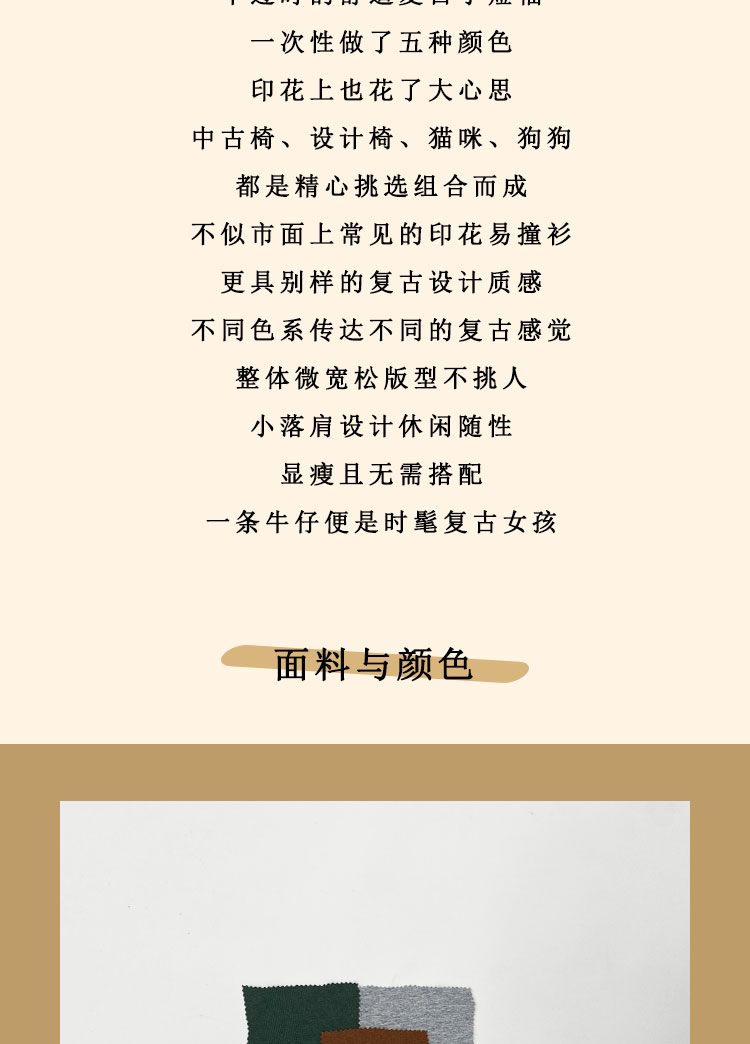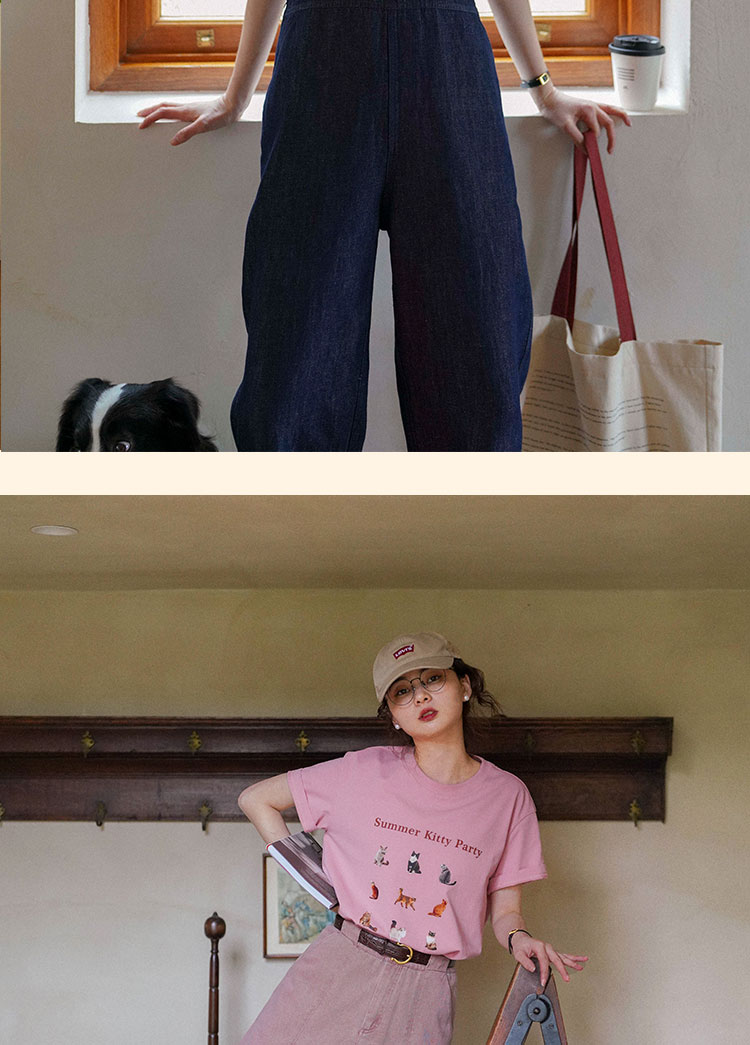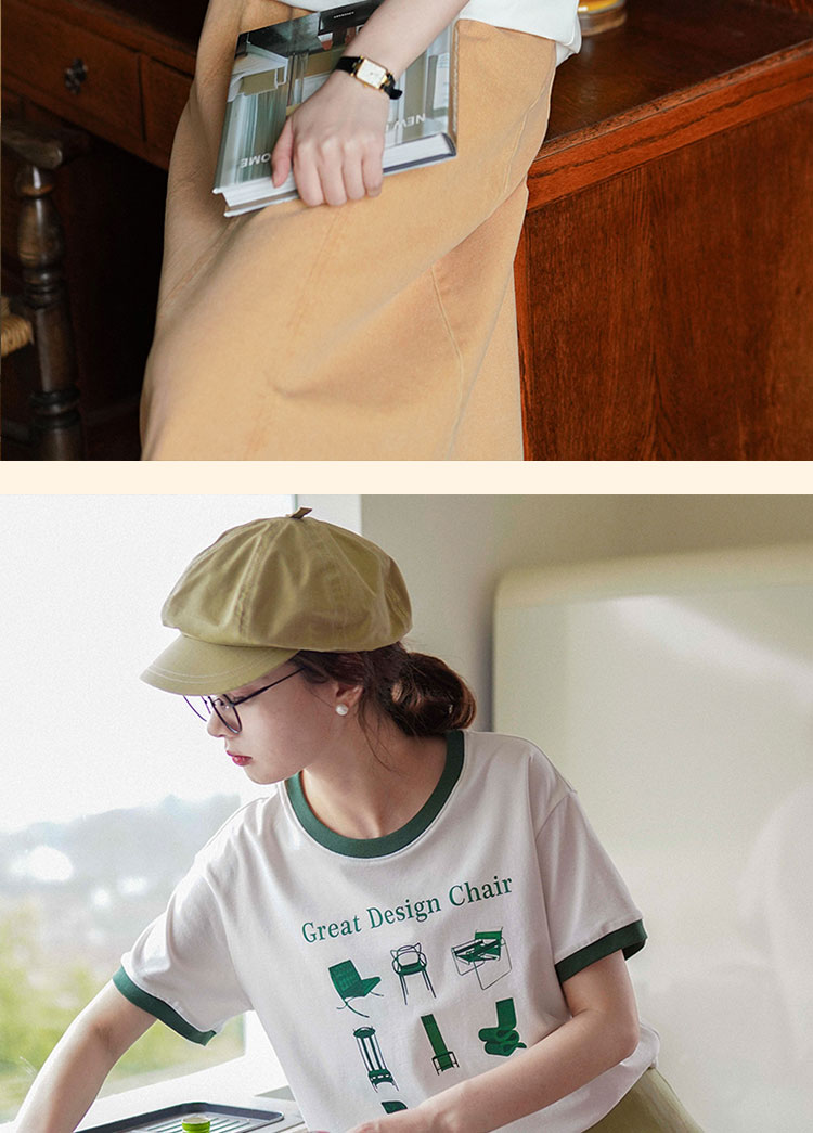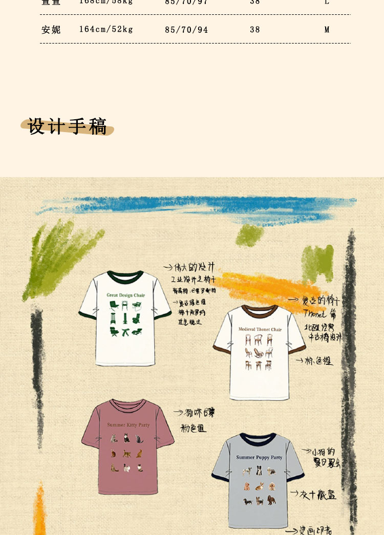 浮生八记/23A067/拼色猫狗椅子印花T恤短袖