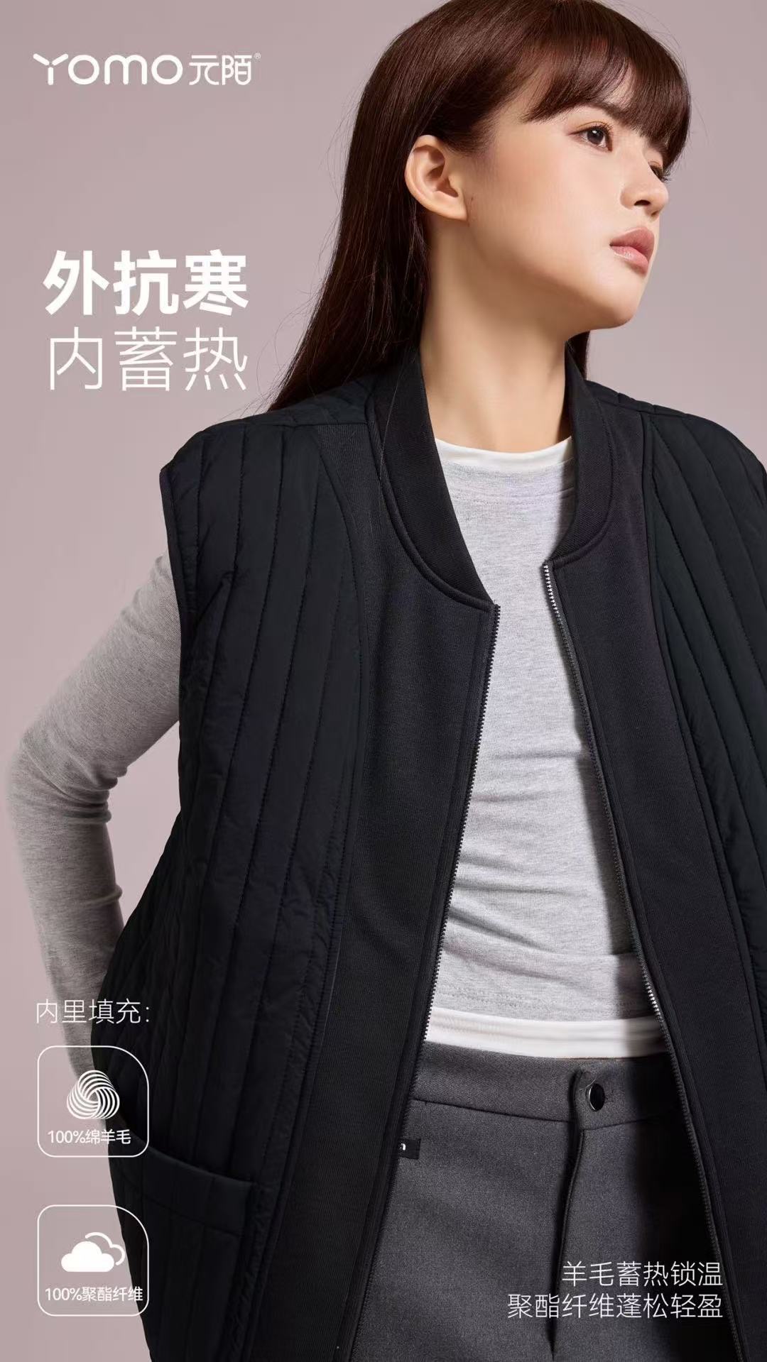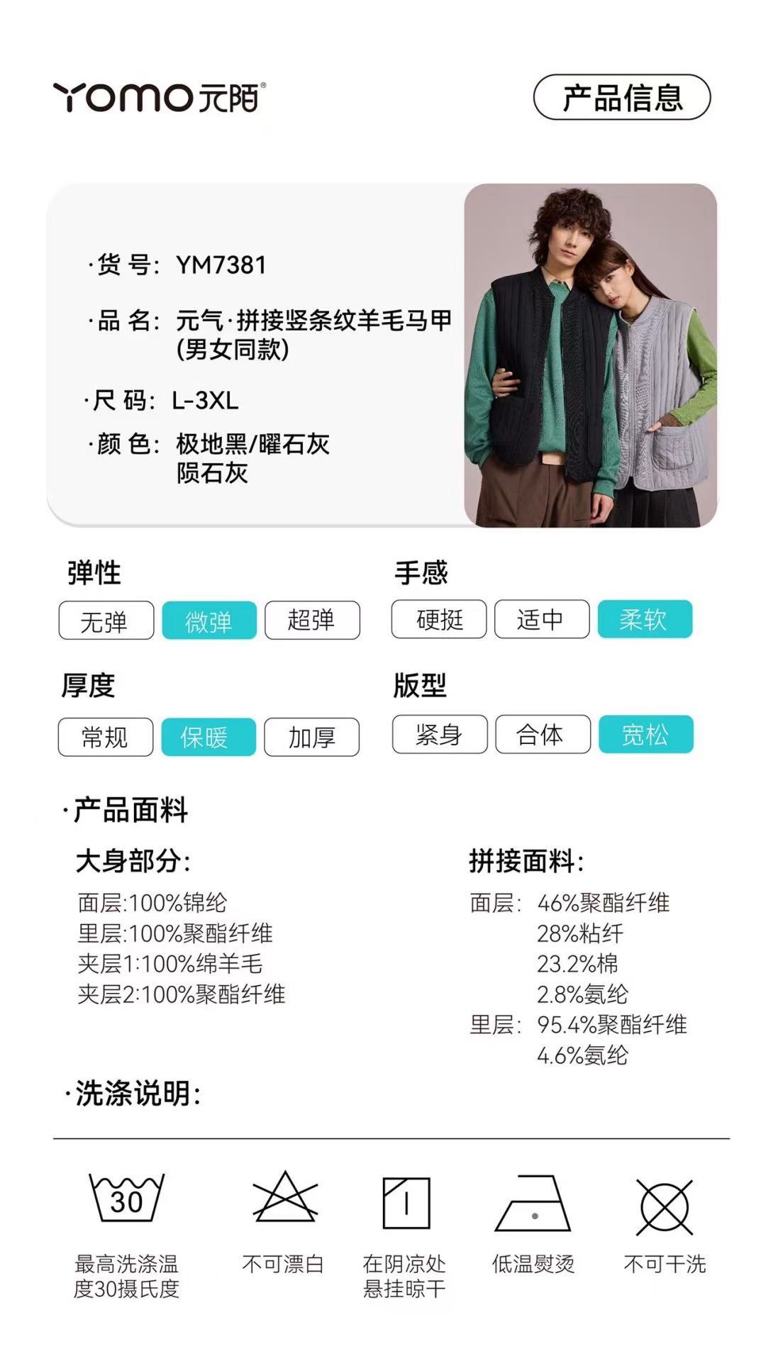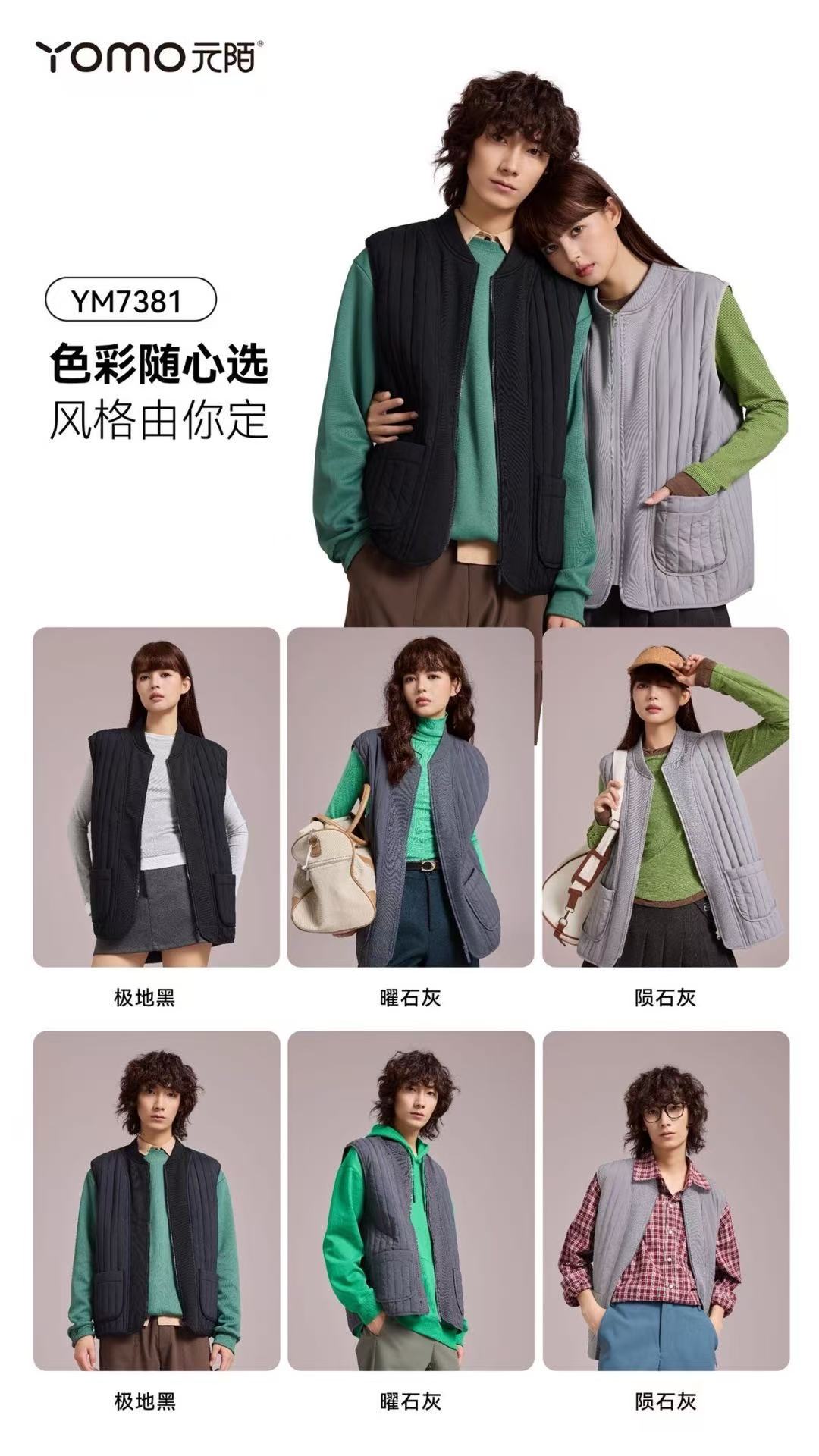 元陌 新款7381元气竖条纹拼接羊毛马甲男女同款保暖休闲背心