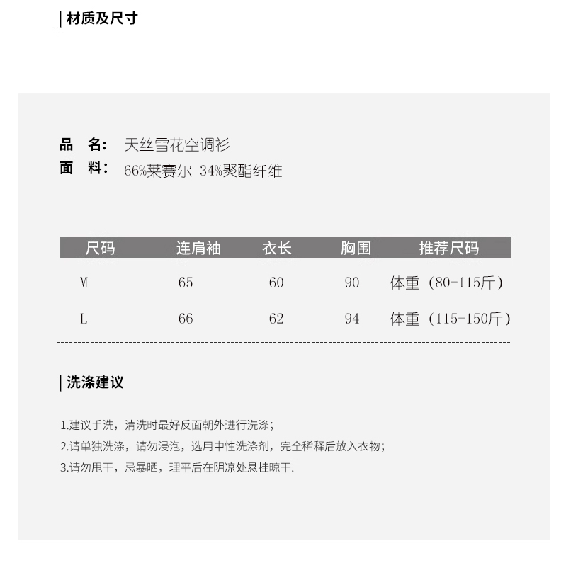 【亏本清仓 库存有限 手慢无】骆柒柒天丝雪花空调衫 百搭时尚柔滑垂顺微透防晒 舒适感十足