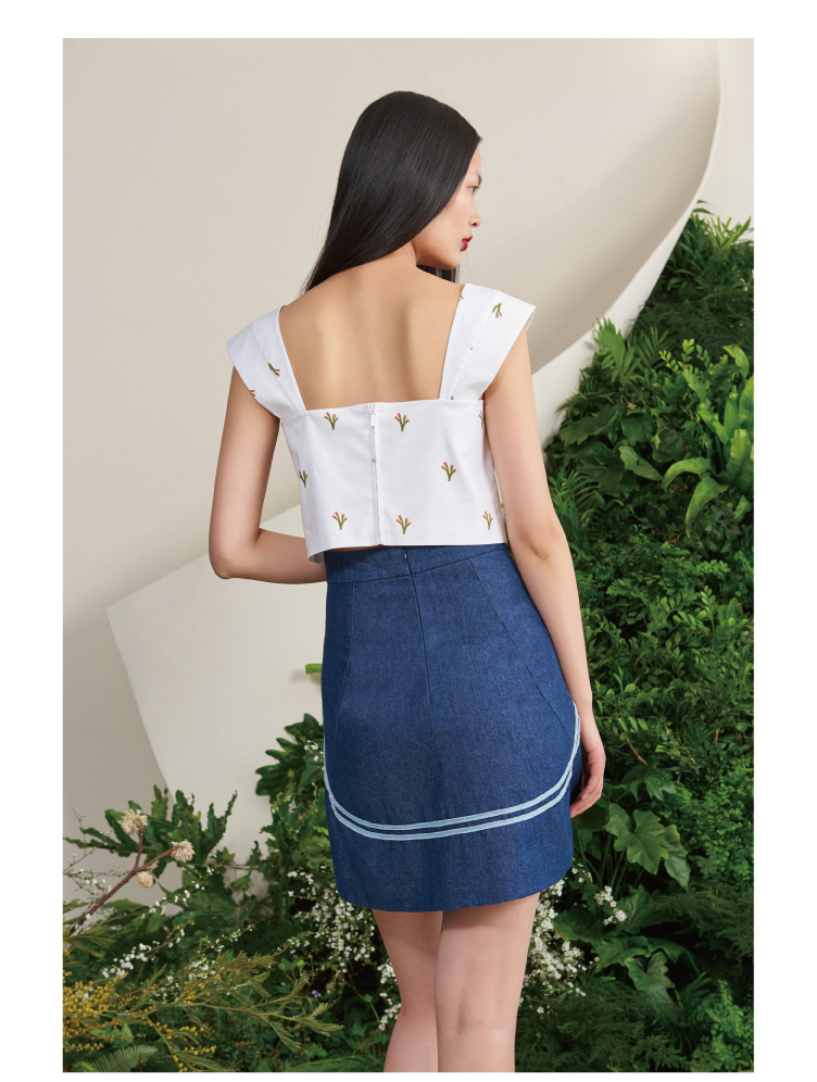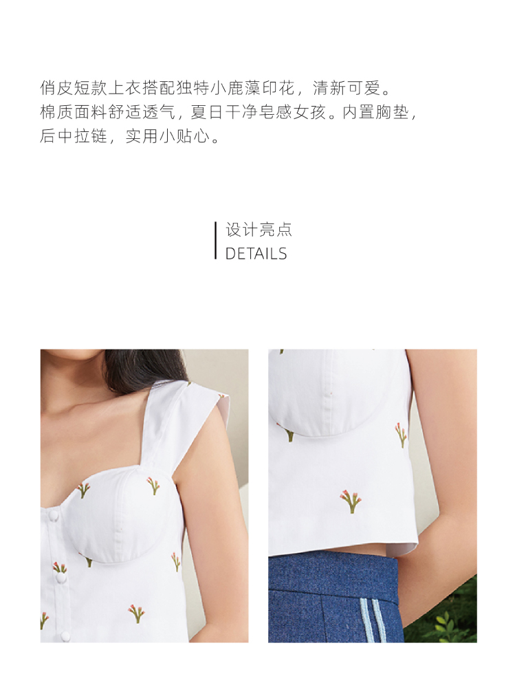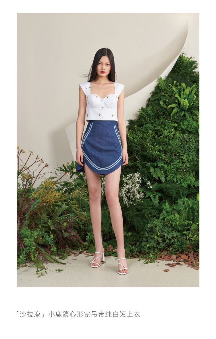 【沙拉鹿】小鹿藻心形宽吊带纯白短上衣/00185