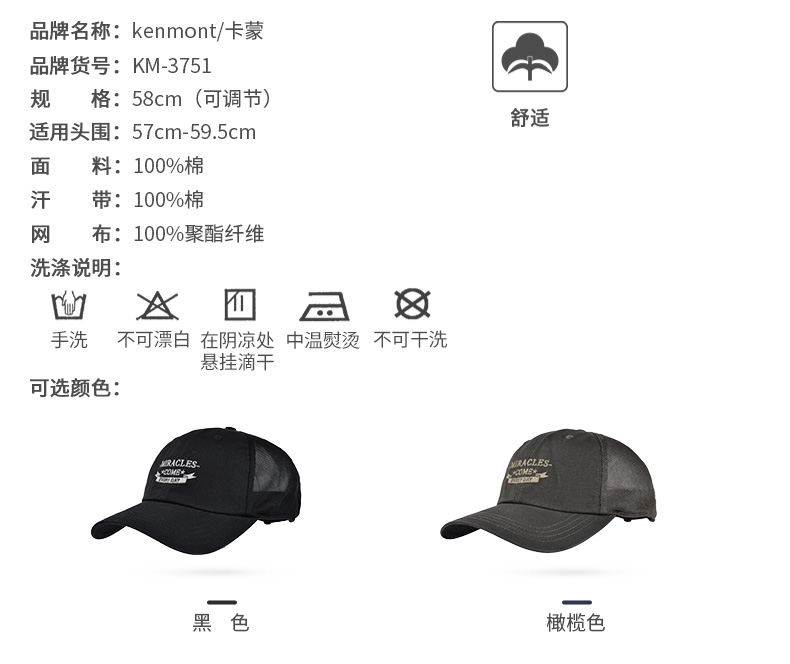 卡蒙网孔透气棒球帽男休闲全棉夏天户外遮阳防晒男士帽子鸭舌帽潮KM-3751