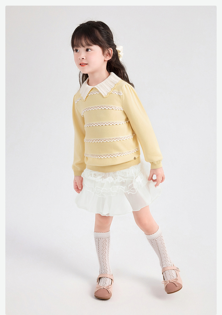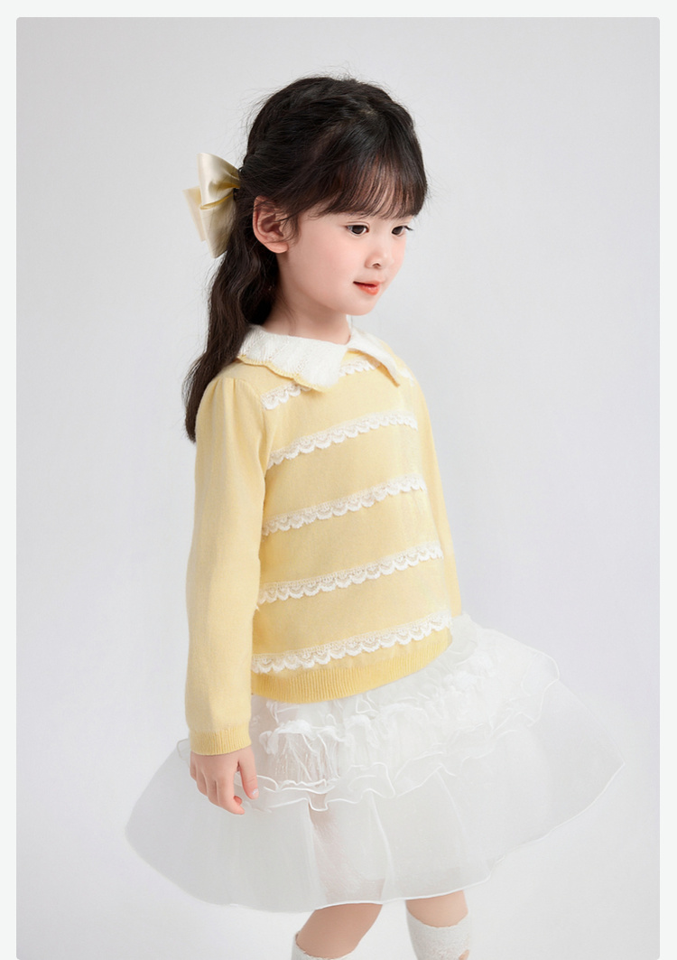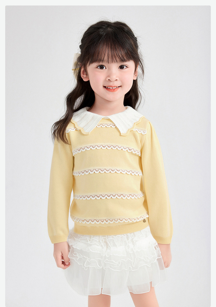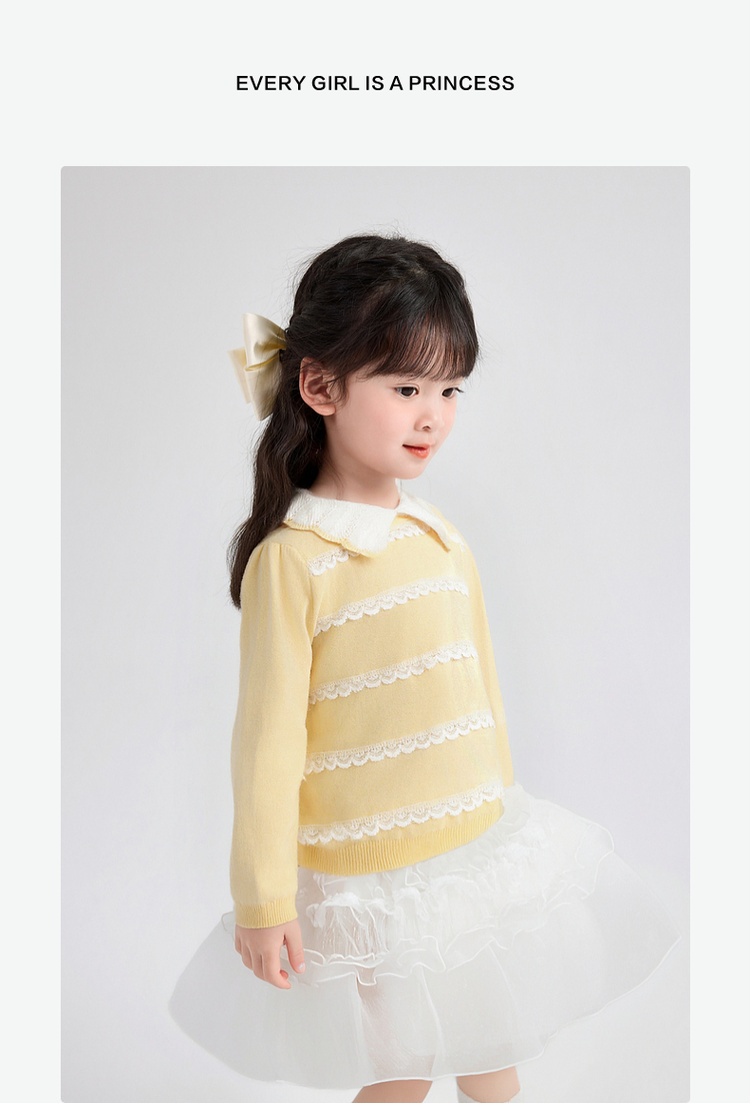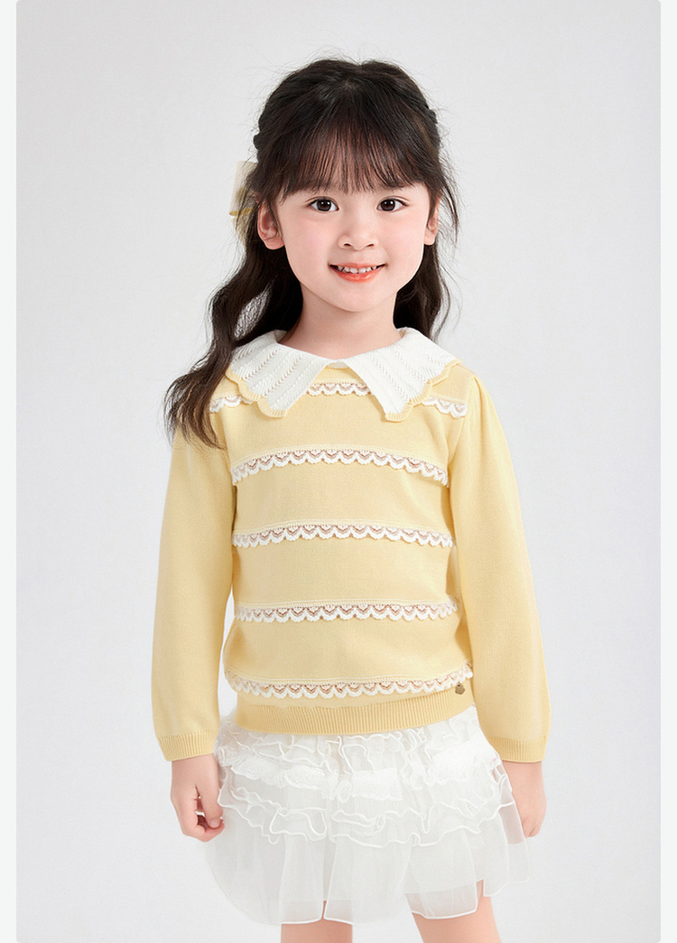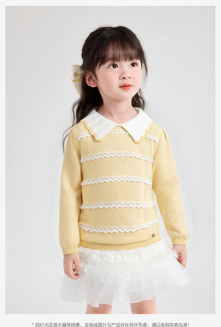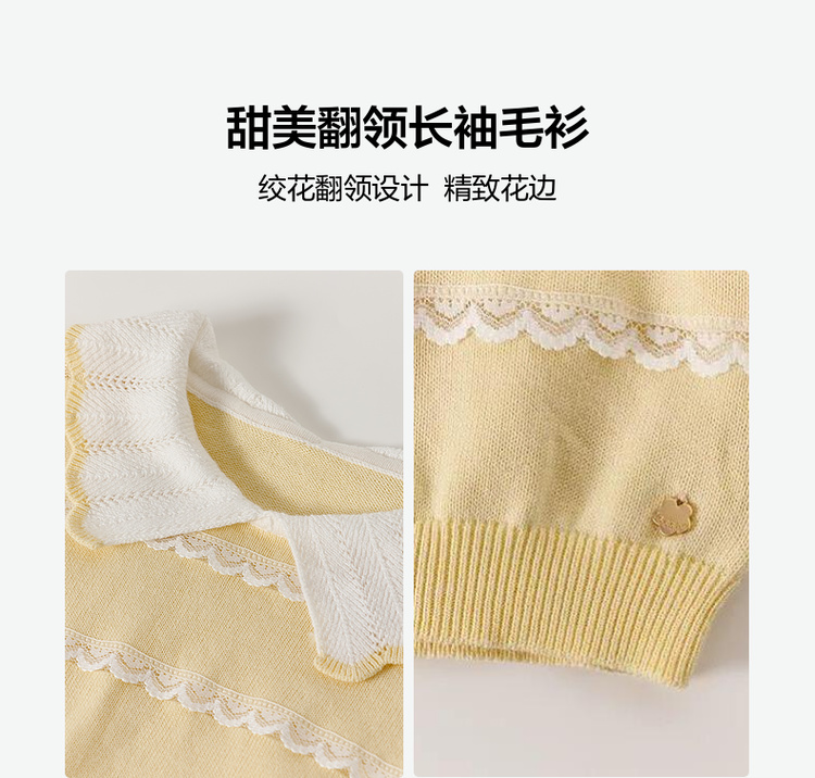 笛莎Deesha 童装女童毛衫2026春新款甜美翻领长袖毛衫