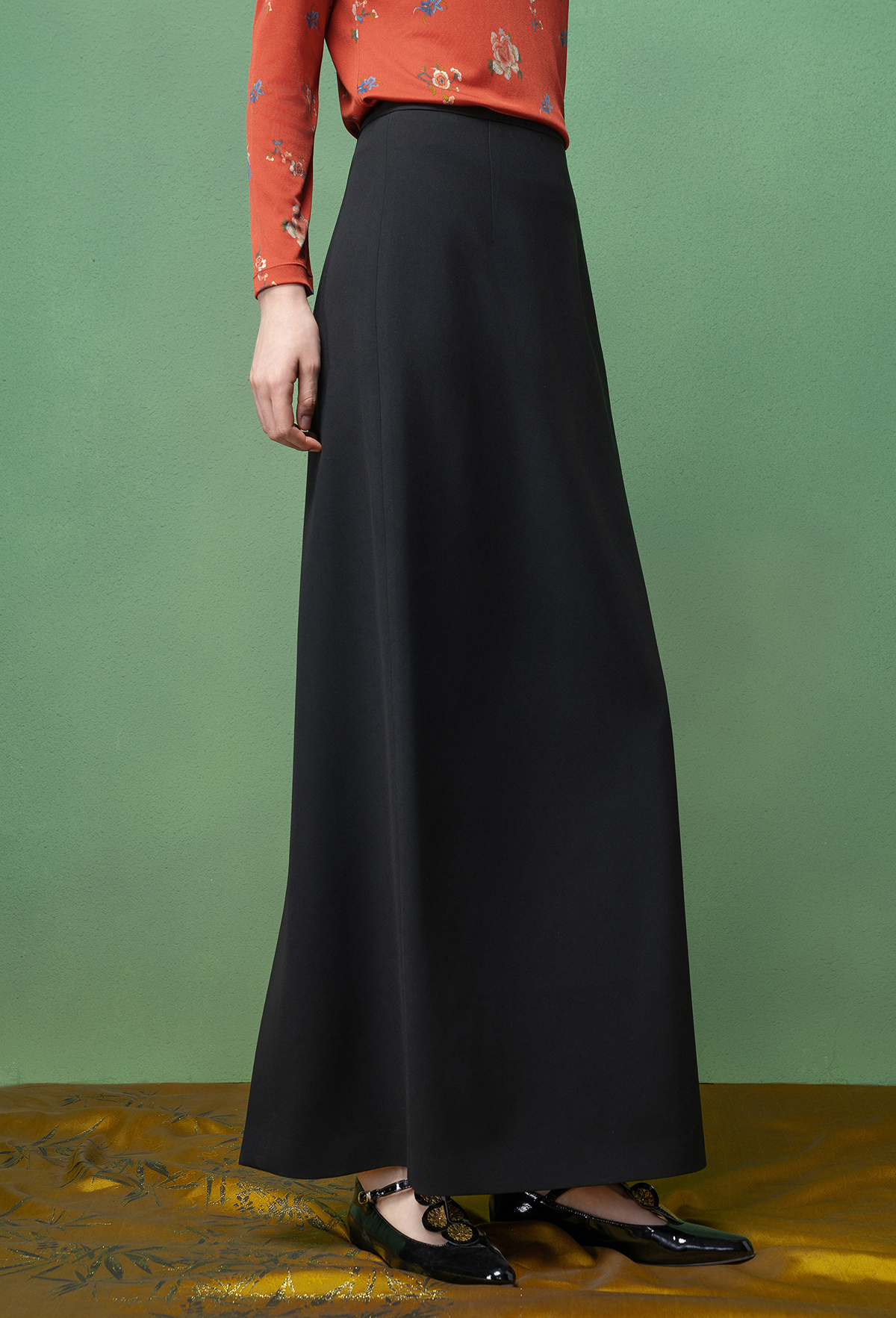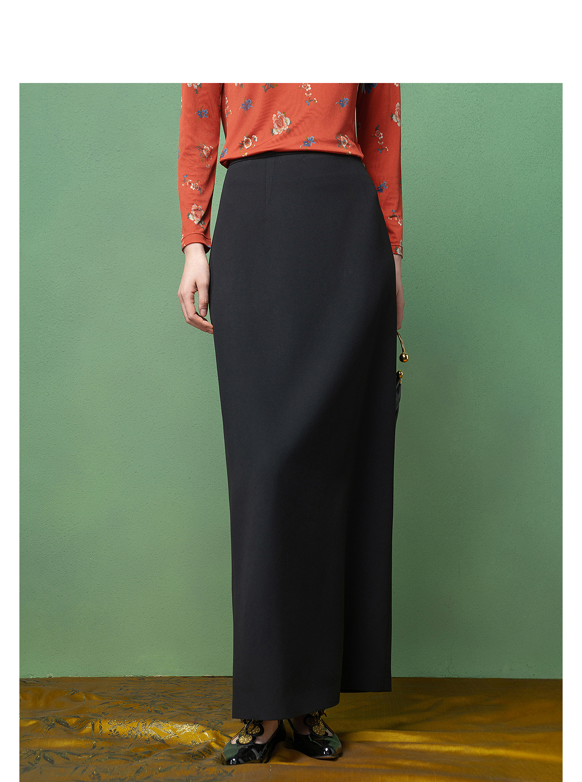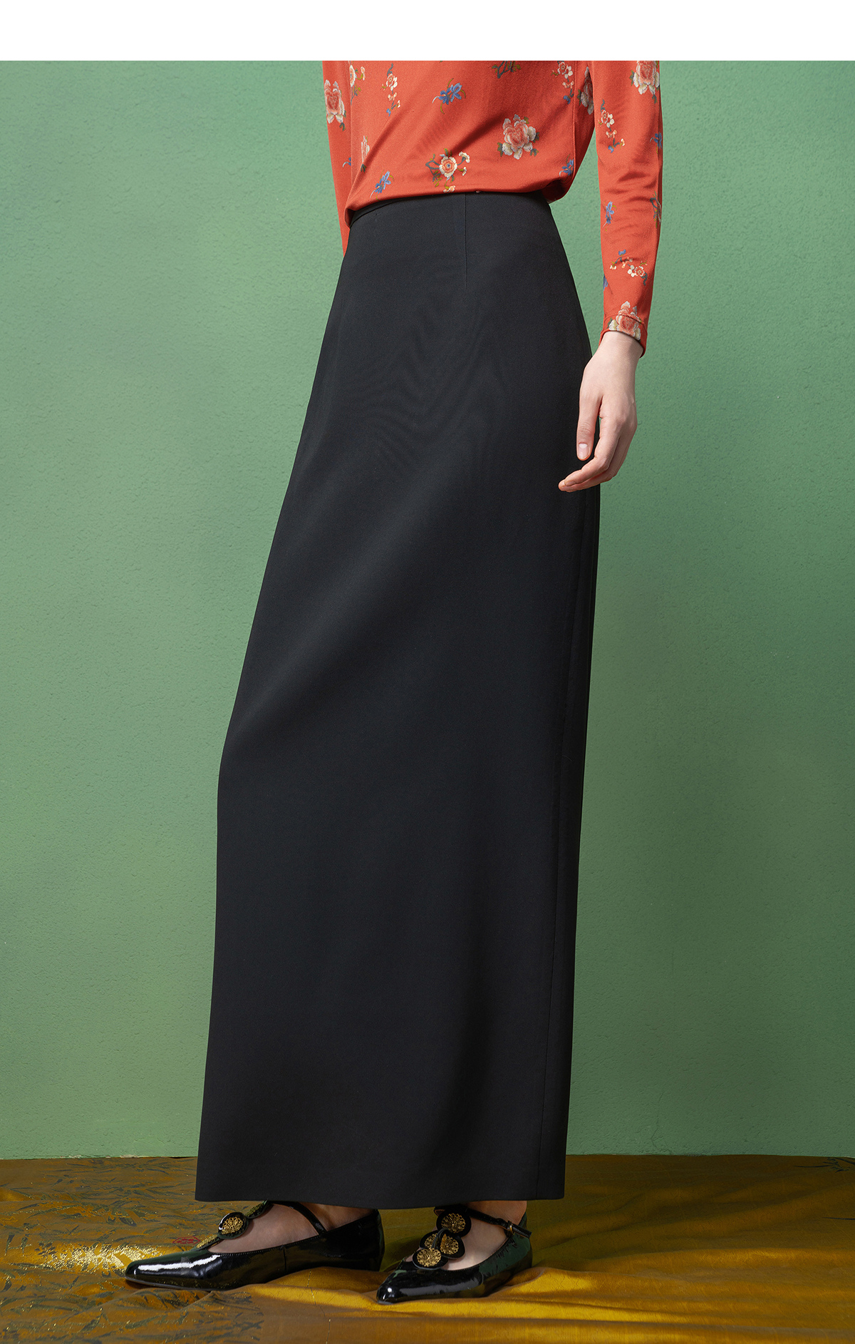 【林栖设计小店】(现货)黑色半身裙修身气质2025秋冬新款直筒裙女1961012
