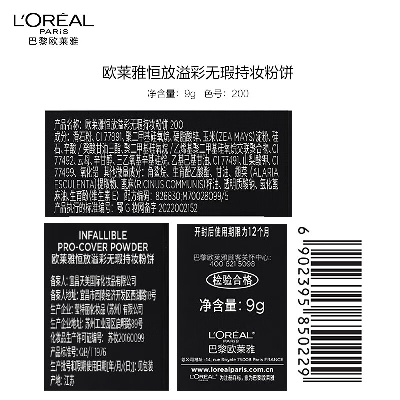 【欧莱雅4月】B1F欧莱雅磨皮大王粉饼(200/320)