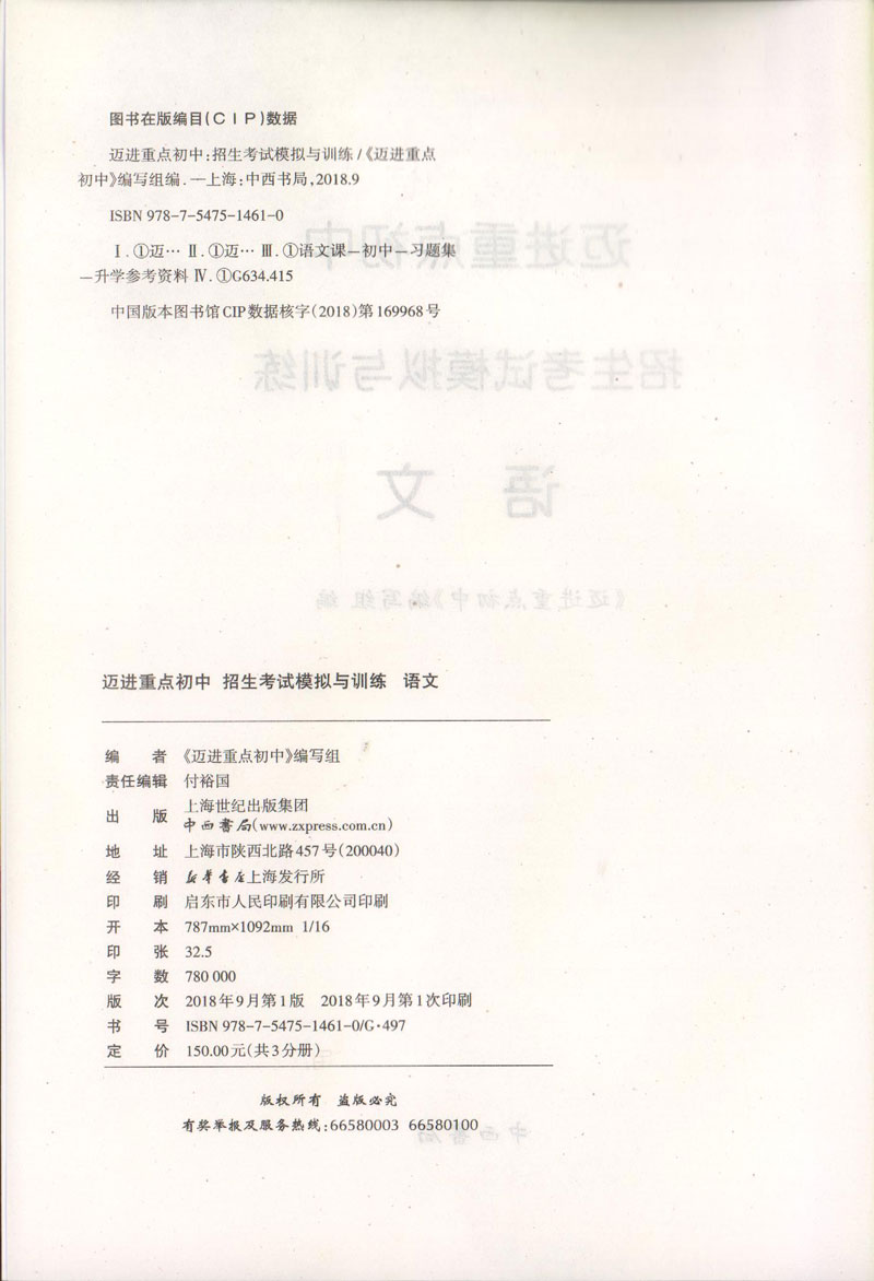 迈进重点初中招生考试模拟与训练 语文 上海小升初总复习 含答案 中西书局 上海初中语文入学招生考试辅导 走进名牌初中
