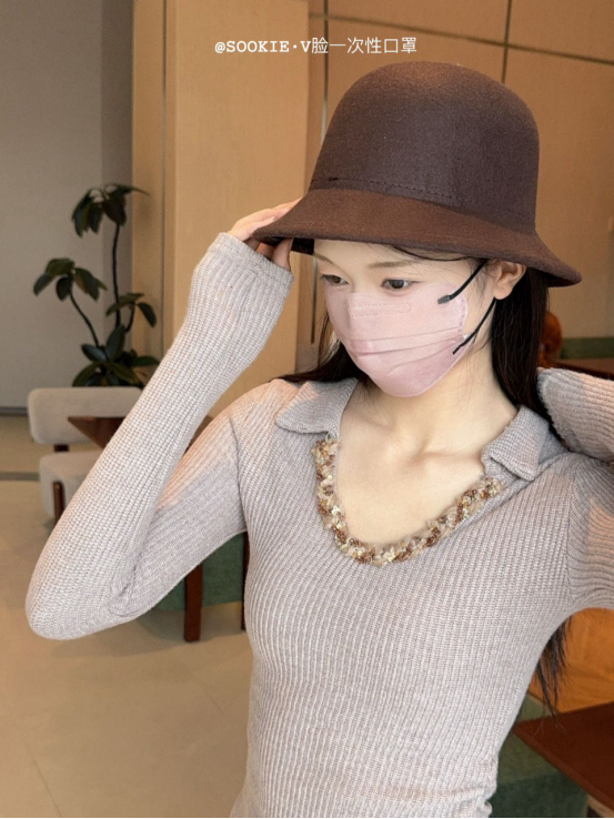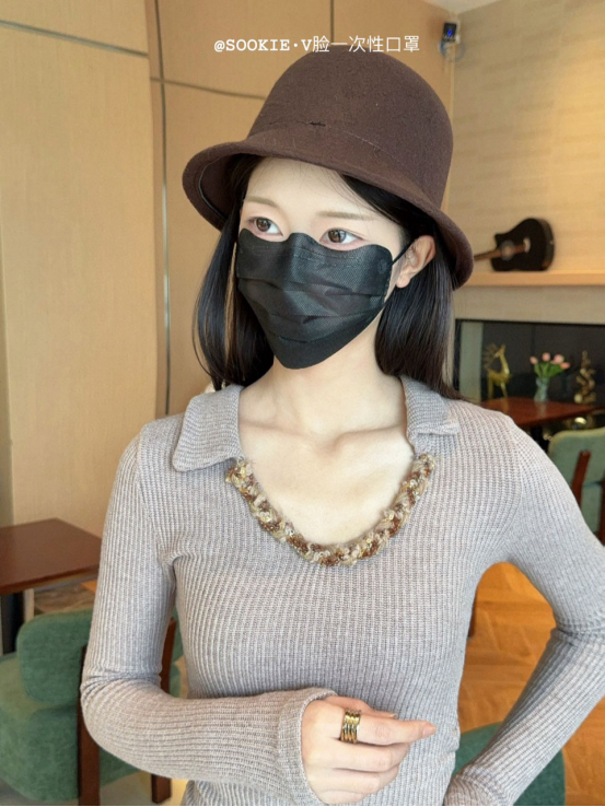 从下巴到眼角都能很好地被包裹住的 一戴上,整张脸立马变立体! 显瘦满分💯不管你是啥脸型 从侧面看都是小翘鼻神颜 修饰脸型这一块儿是认真的!