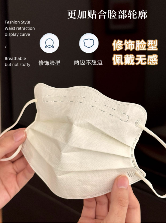 它还是美女口罩 产品设计更是可圈可点 🔺立体剪裁设计巨显脸小 🔺上脸舒服,不花妆 🔺耳挂弹力恰到好处,不勒耳朵