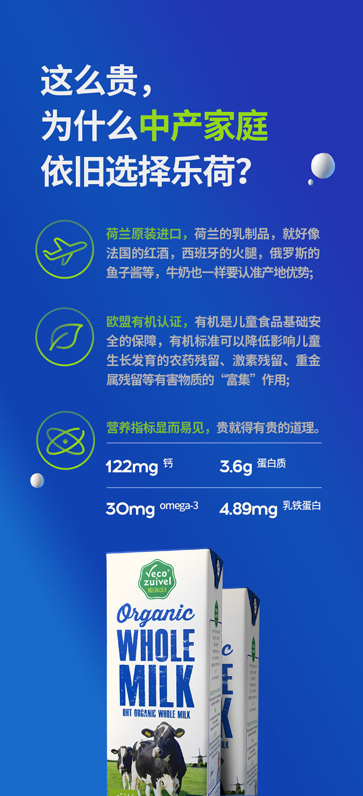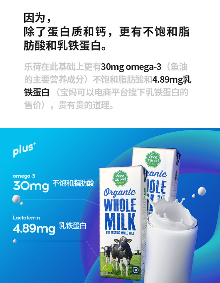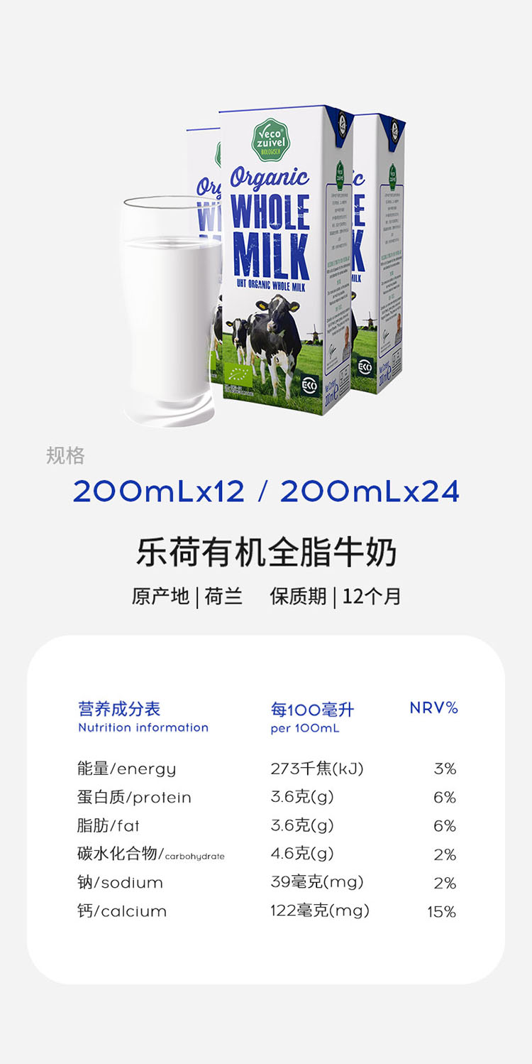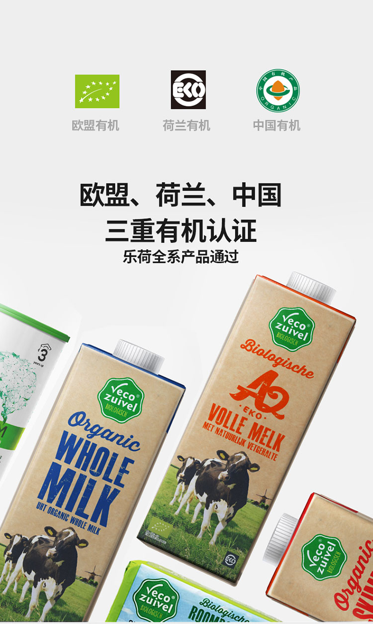 【产地直发包邮】乐荷—荷兰进口有机纯牛奶全脂