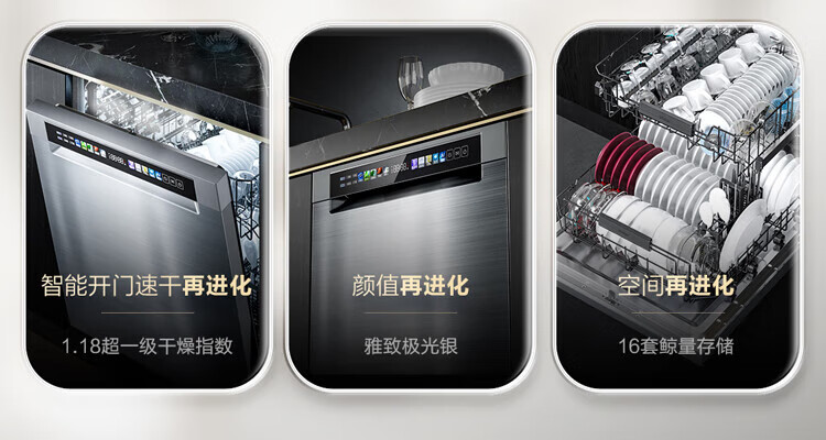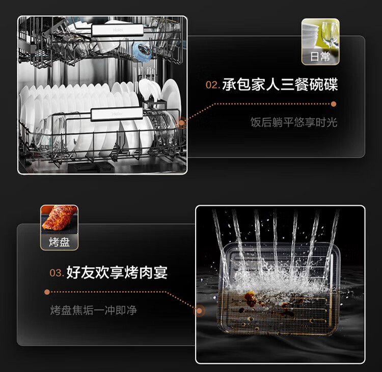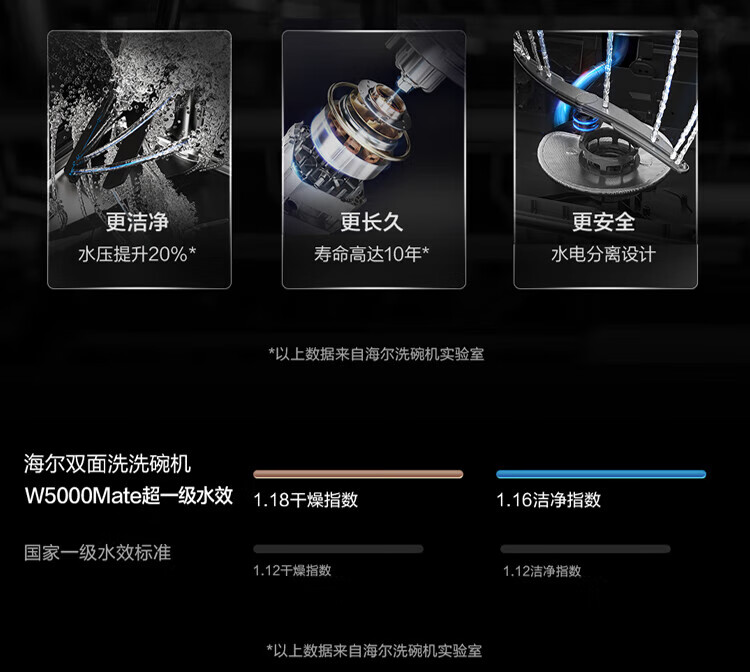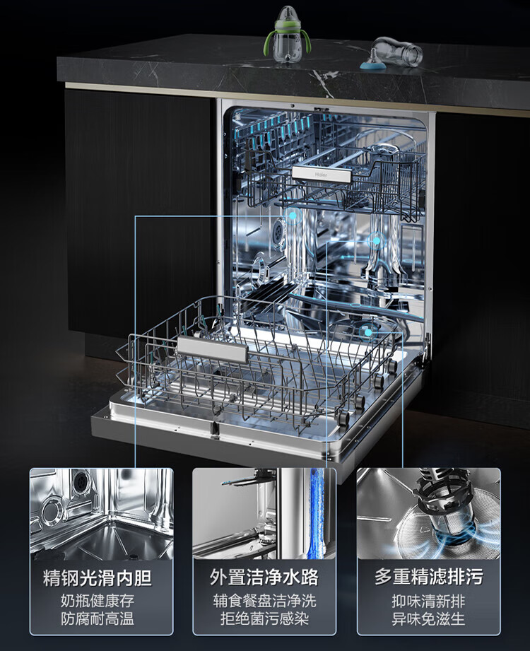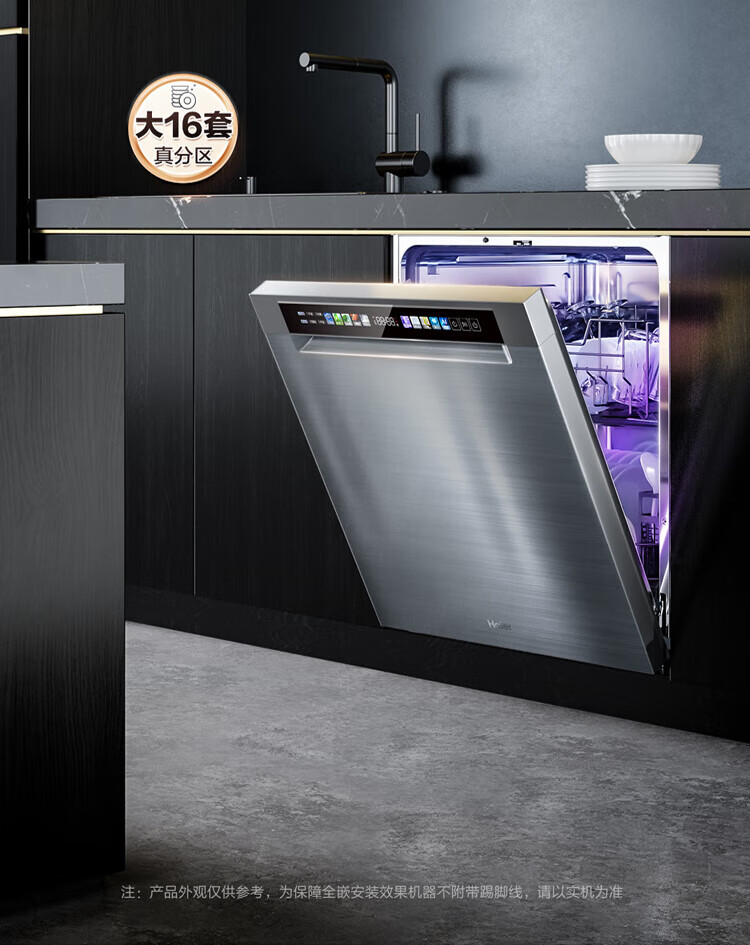 海尔(Haier)双面洗嵌入式洗碗机云溪W5000Mate 大16套容量 一级水效 六星消杀 EYBW16328BYU1