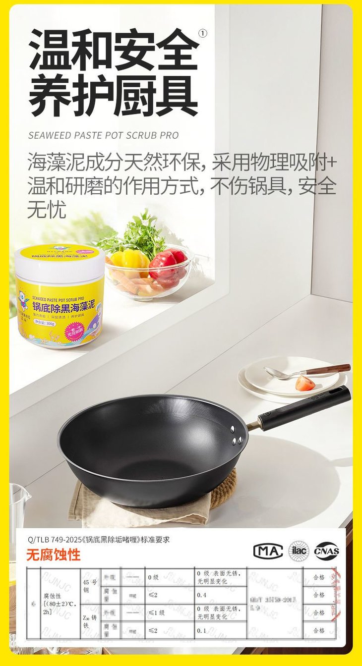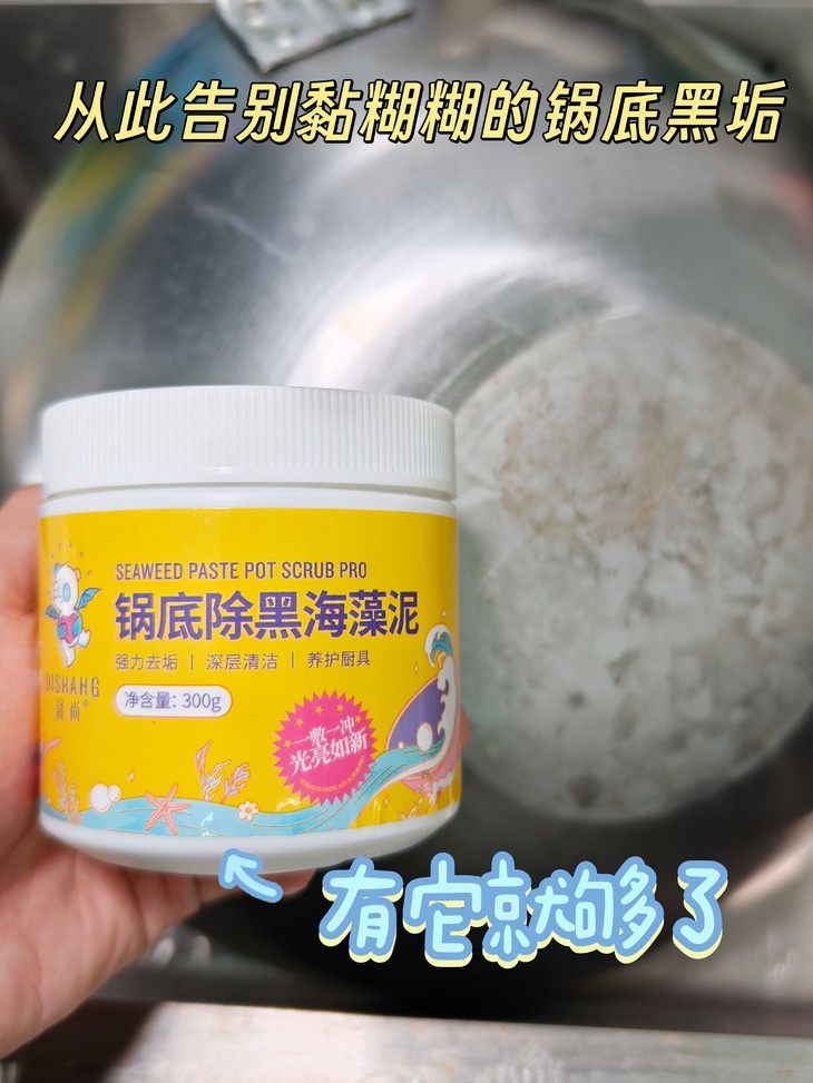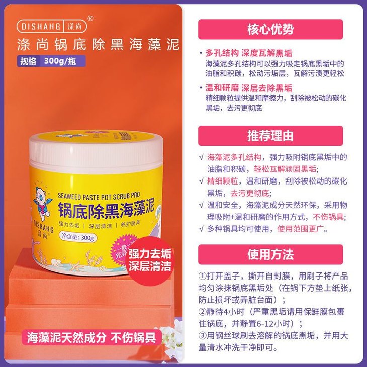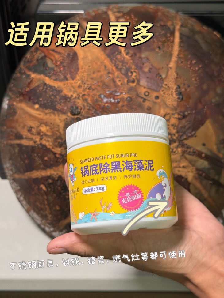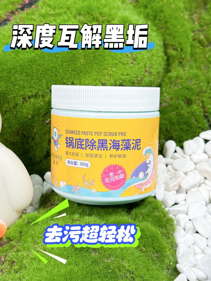 铛铛铛~它来了, 涤尚锅底除黑海藻泥温和有效去除黑垢 同时又能养护锅具,简直不要太神奇~
