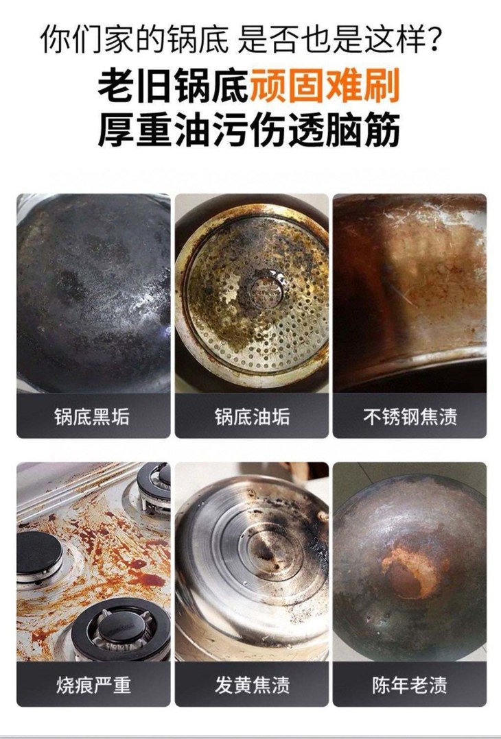 ✅ 卖点4:适用范围广·厨房工具全包圆! 🍳 不锈钢/铁锅/陶瓷/搪瓷/燃气灶/烧烤架/玻璃锅…通通搞定! 👉 一罐泥=整个厨房发光✨ (注意:本品在锅内面不能使用 不可用于铜锅、铝锅、涂层锅和不明材料锅;对于不粘锅、有色锅底等,需先小面积试用,满意后再使用)