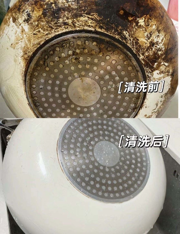 💔 这些痛,你中了几条? 1⃣ 锅底黑垢黏到崩溃 🔥 炒菜一时爽,清洁火葬场! 积碳+油垢死死焊在锅底, 抠不动、刮不花,仿佛长在了锅上…