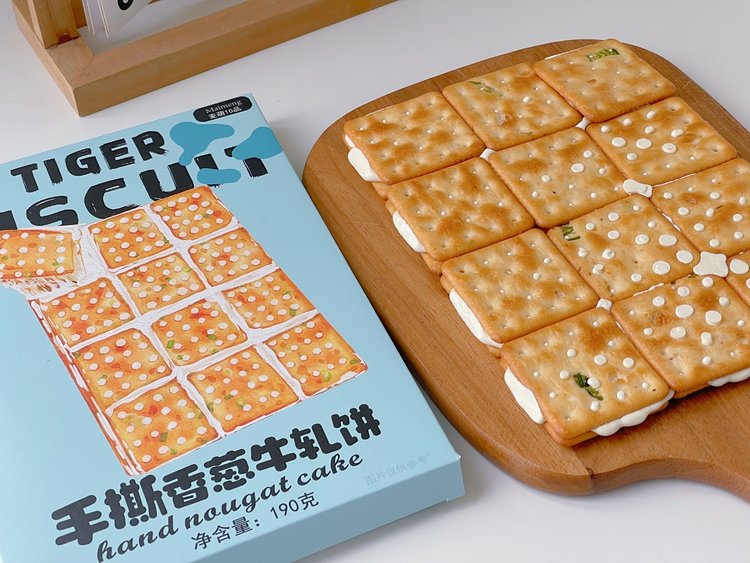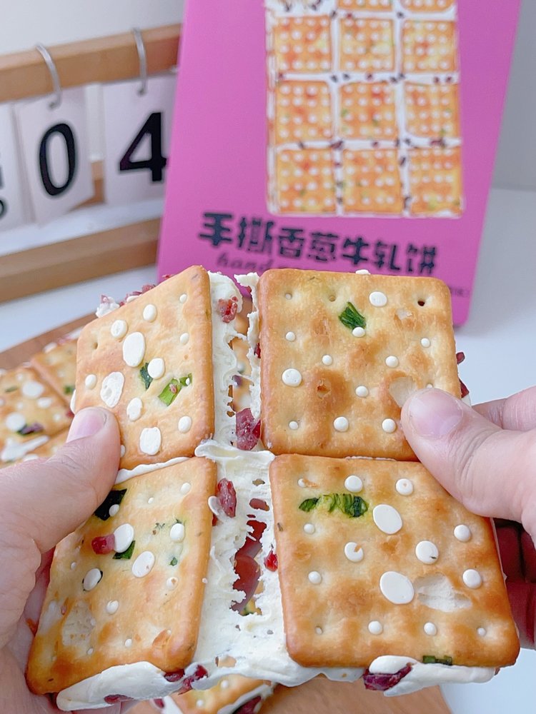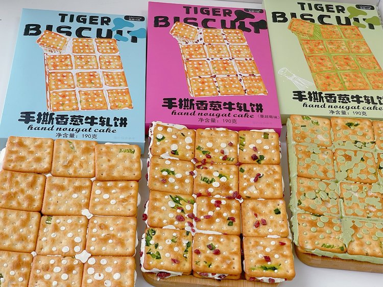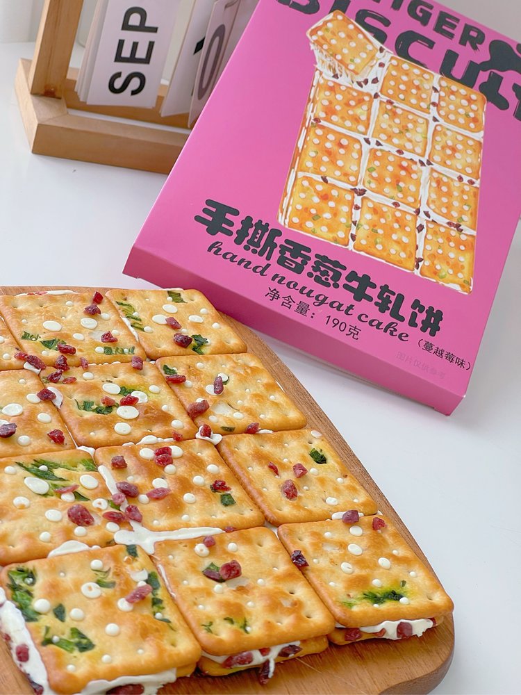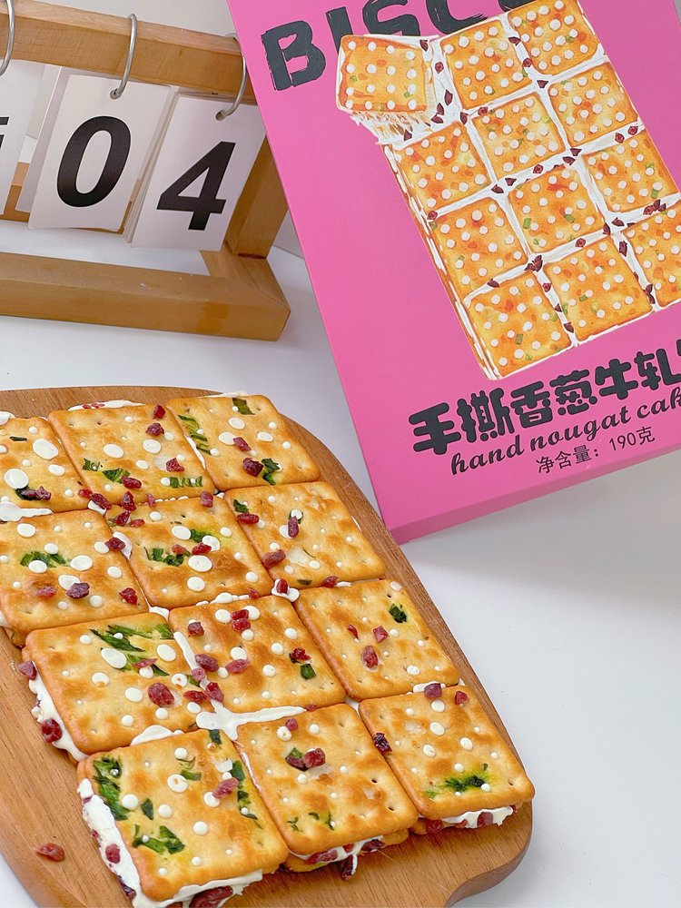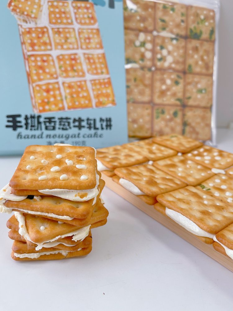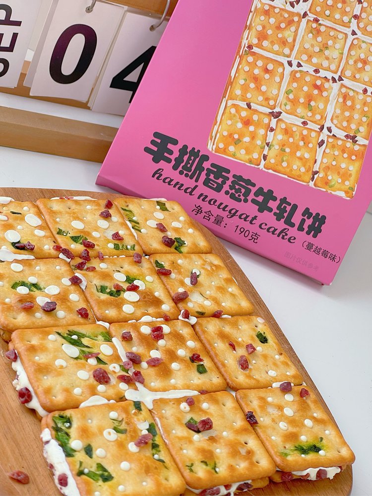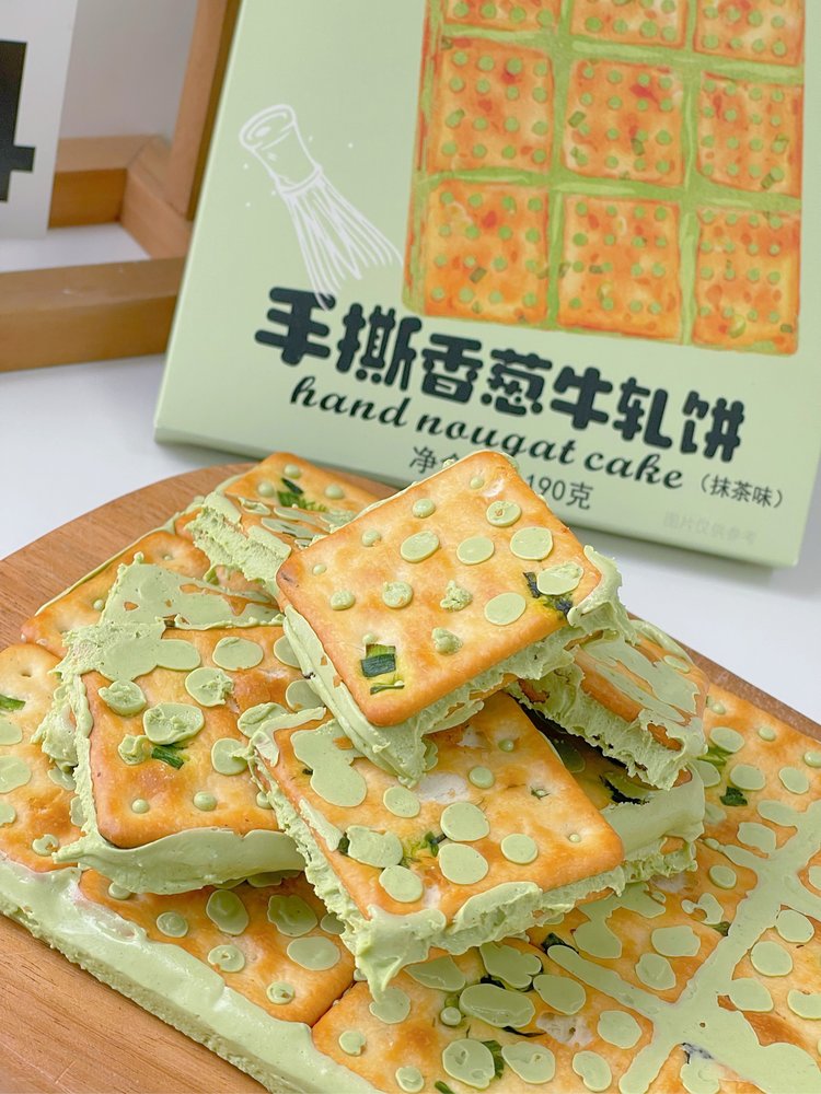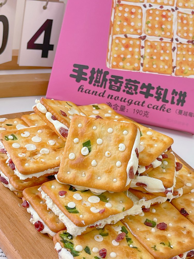 【手撕牛轧糖饼干】台湾古早手工网红休闲零食🔥一口直接沦陷‼ 咸香酥脆的香葱味苏打饼干+超能拉丝的奶香牛轧糖,好吃到停不下来‼