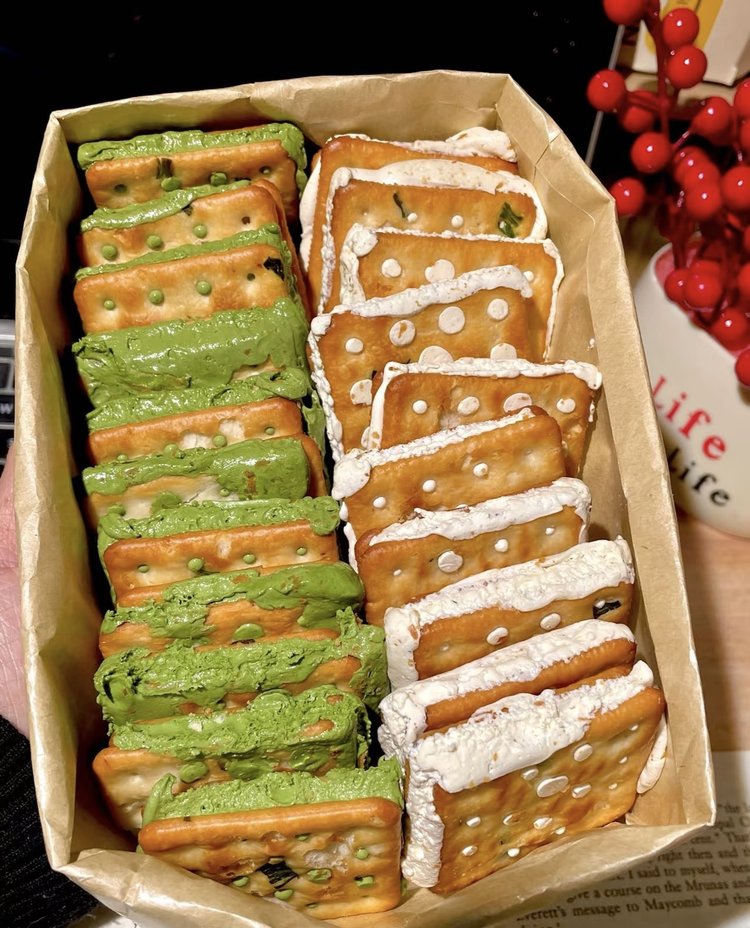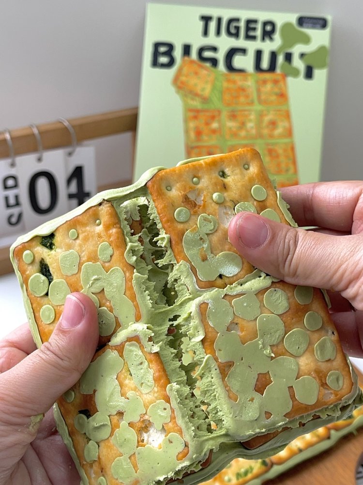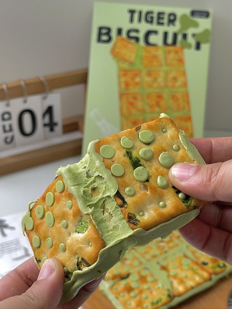 别担心味道过于单调,这款饼干的夹心非常惊艳!抹茶牛轧的搭配,完美地平衡了咸香,更让你爱上这种独特的口味!👍