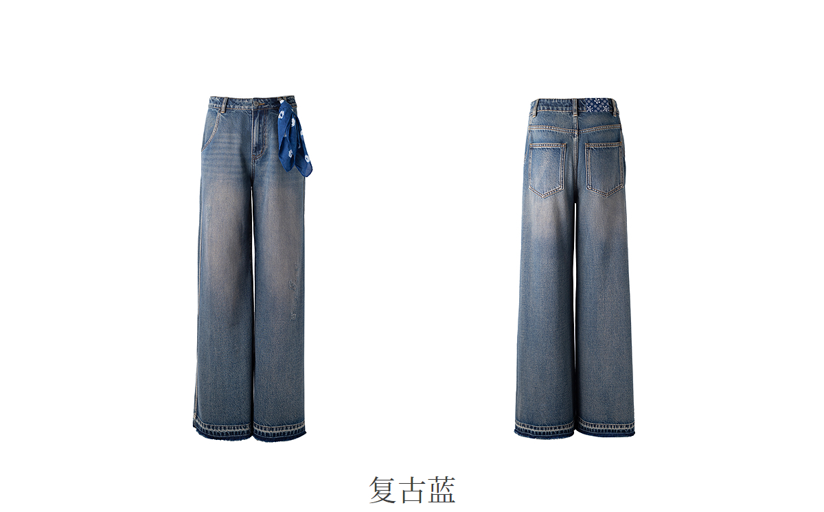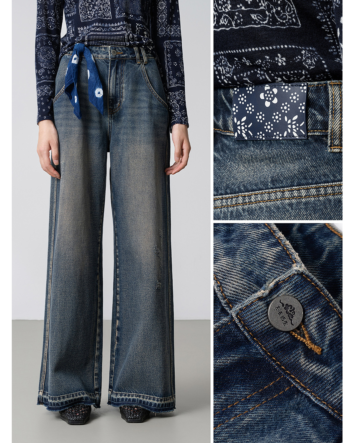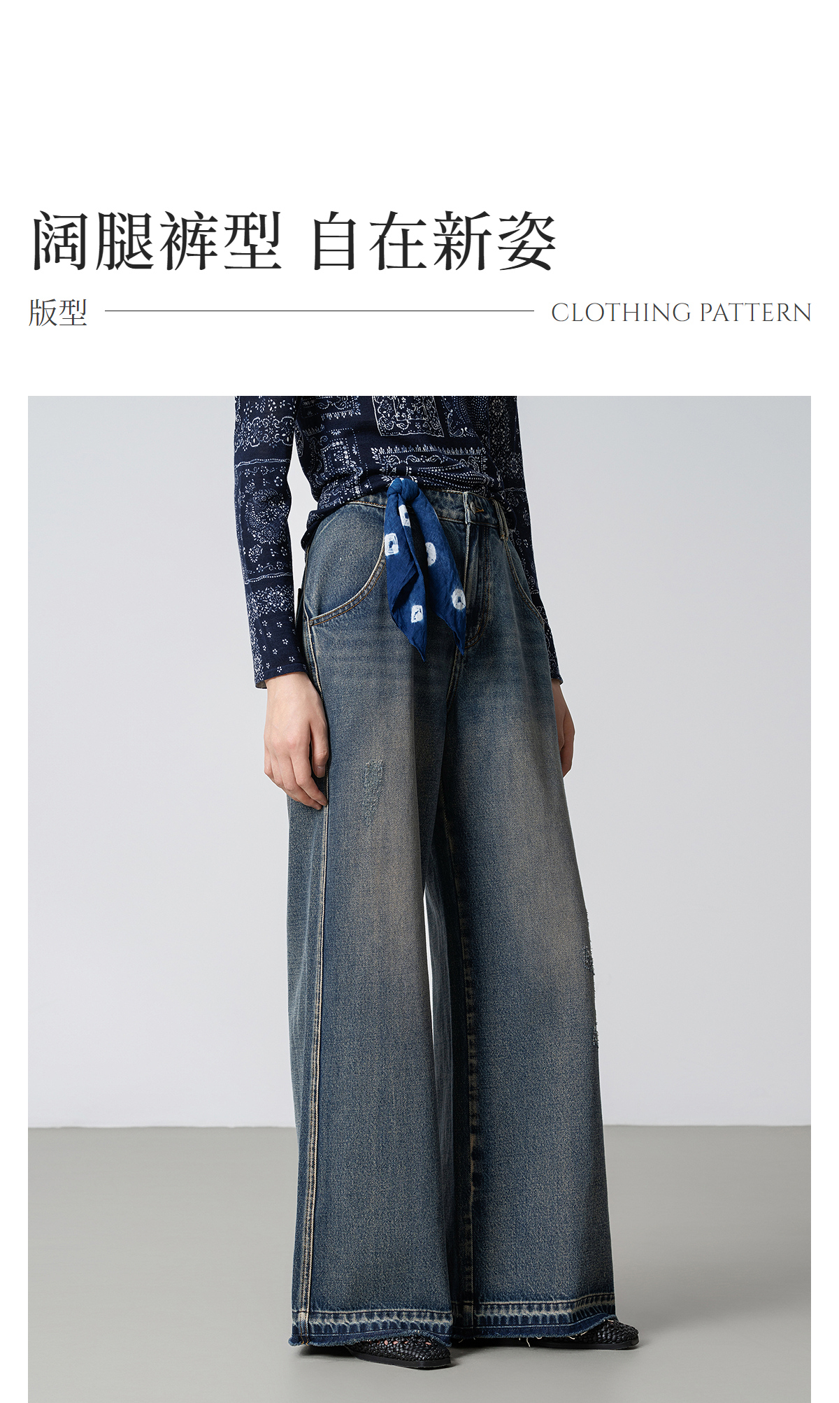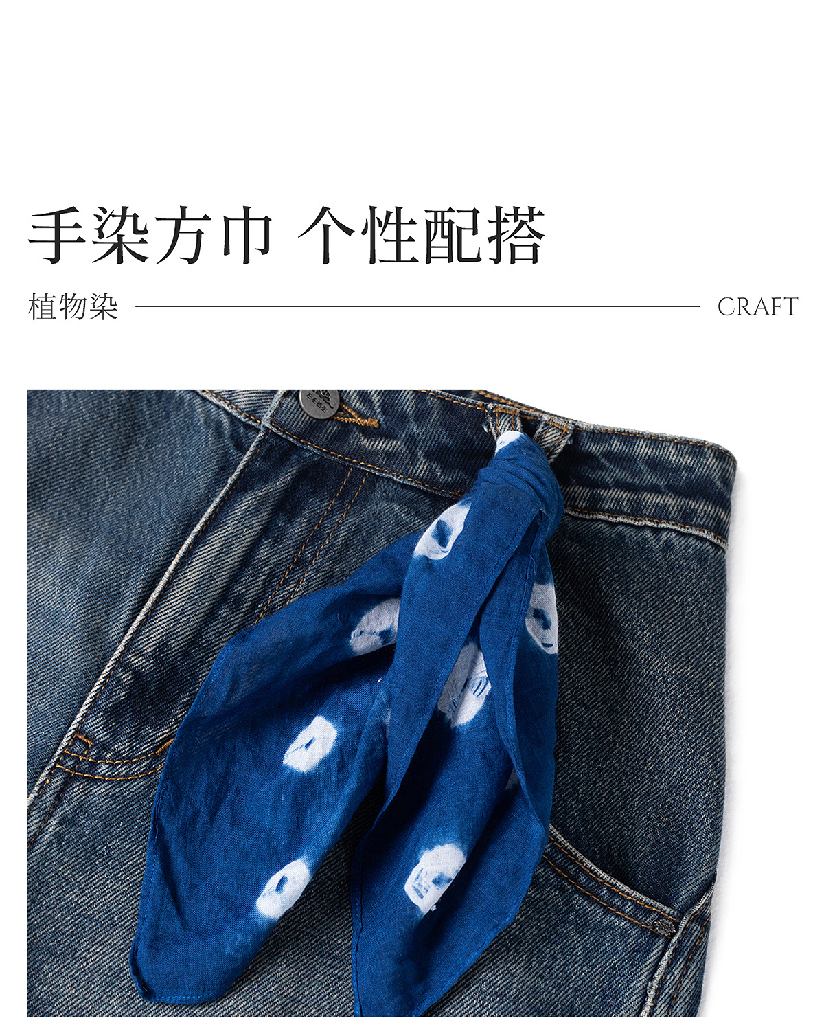 【林栖设计小店】【草木丹宁】纯棉牛仔裤配植物染方巾2025秋季新款阔腿裤G1653004