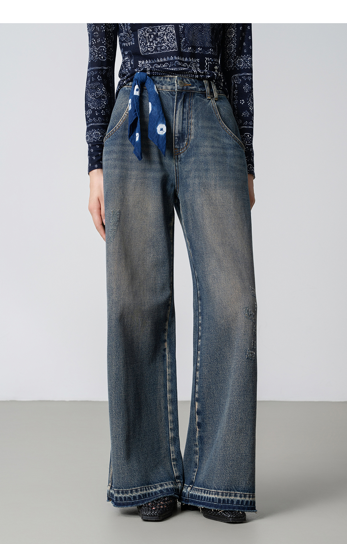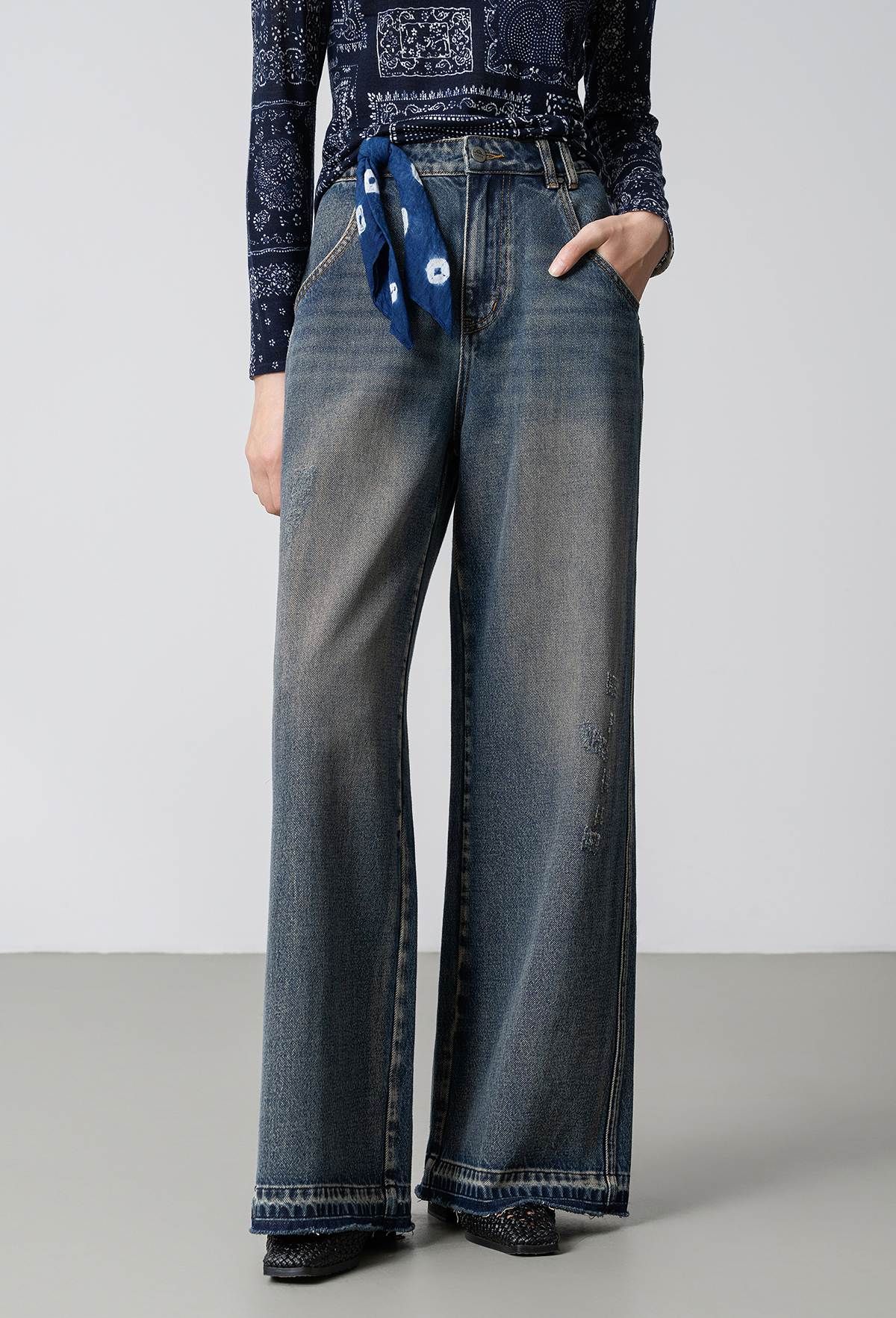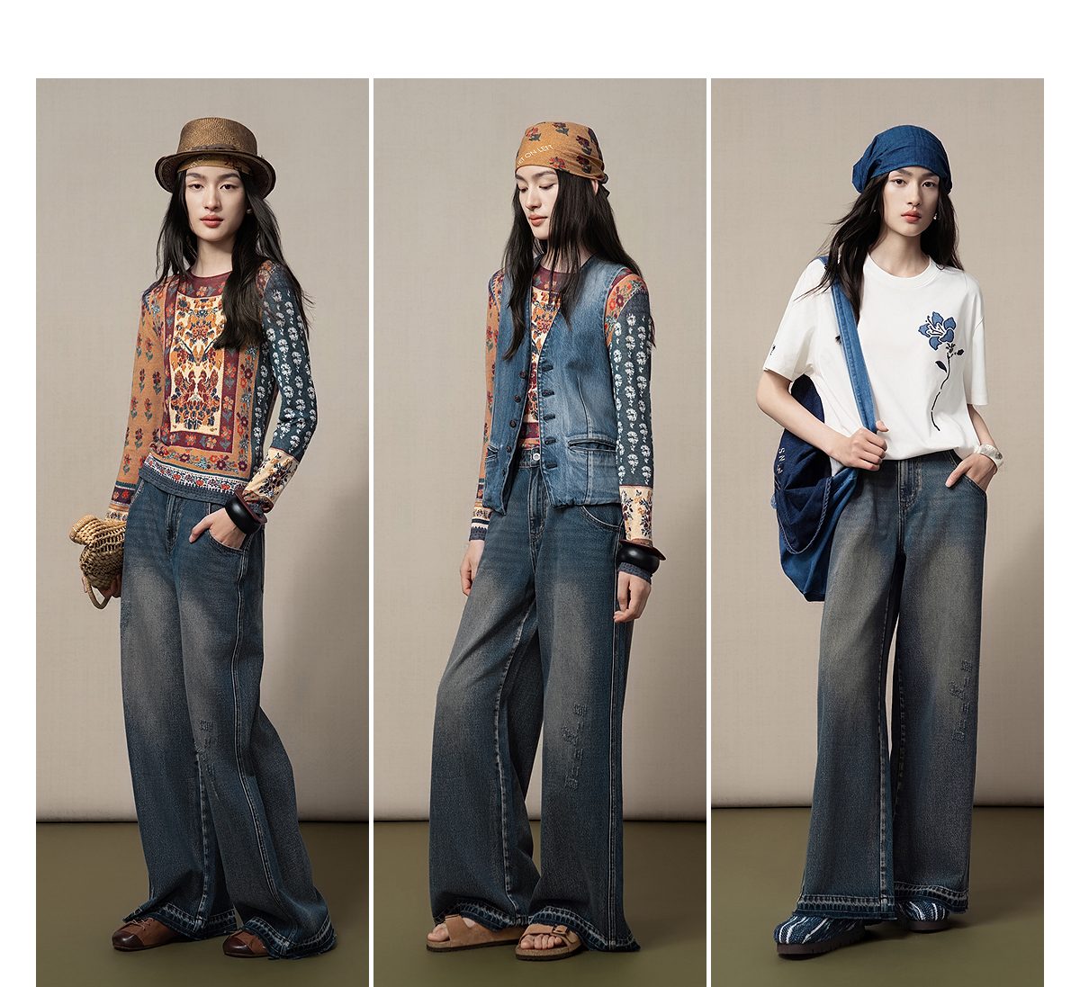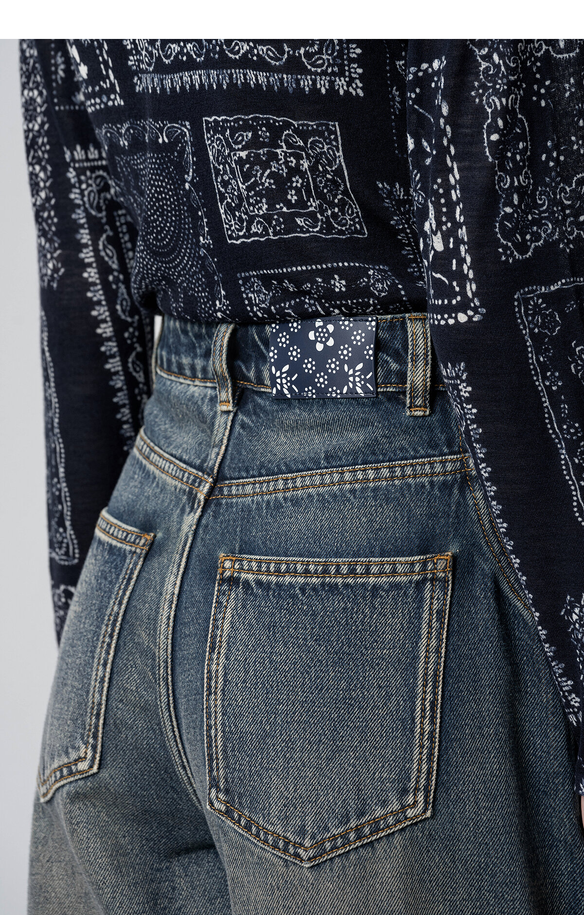 【林栖设计小店】【草木丹宁】纯棉牛仔裤配植物染方巾2025秋季新款阔腿裤G1653004