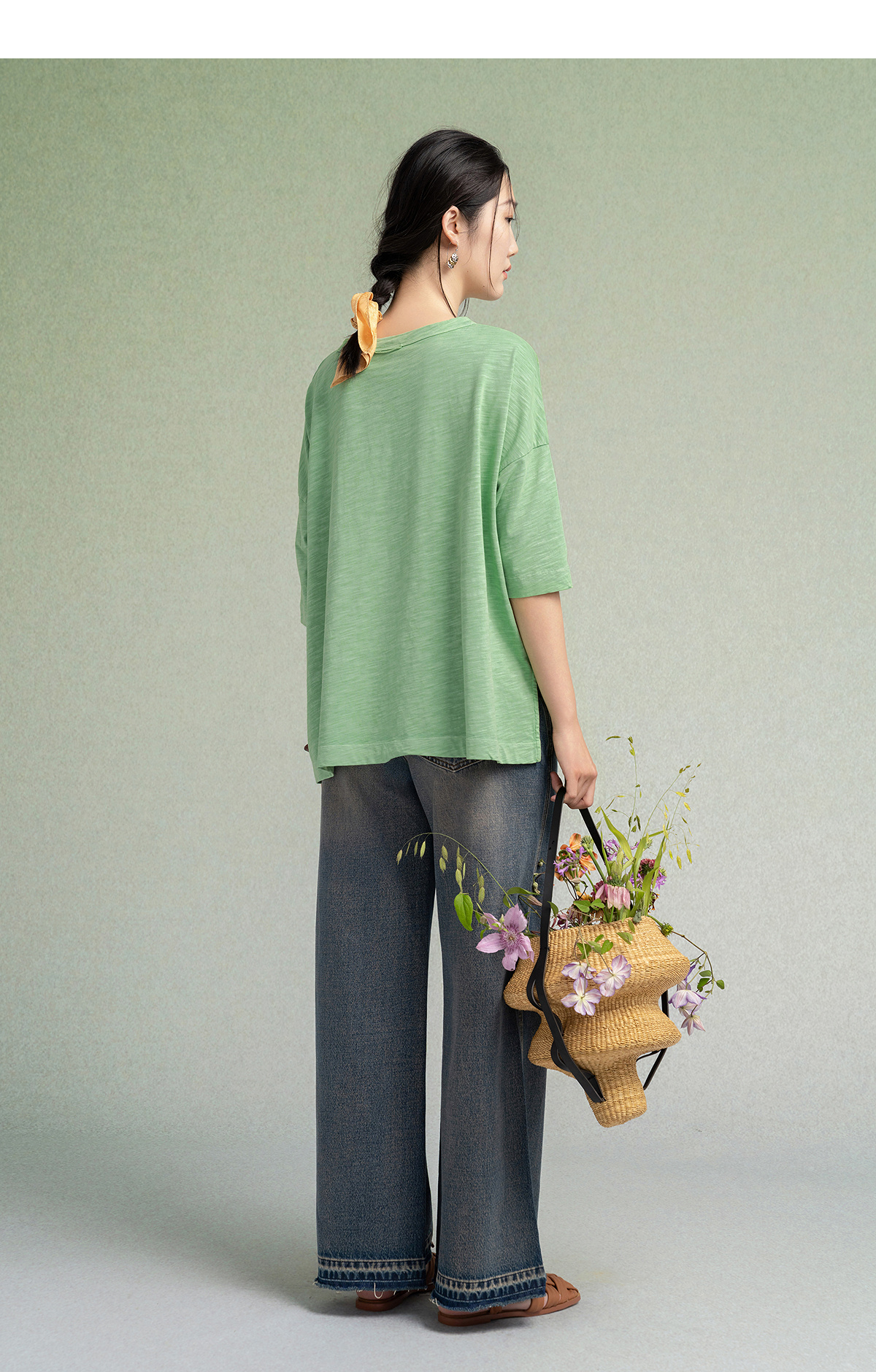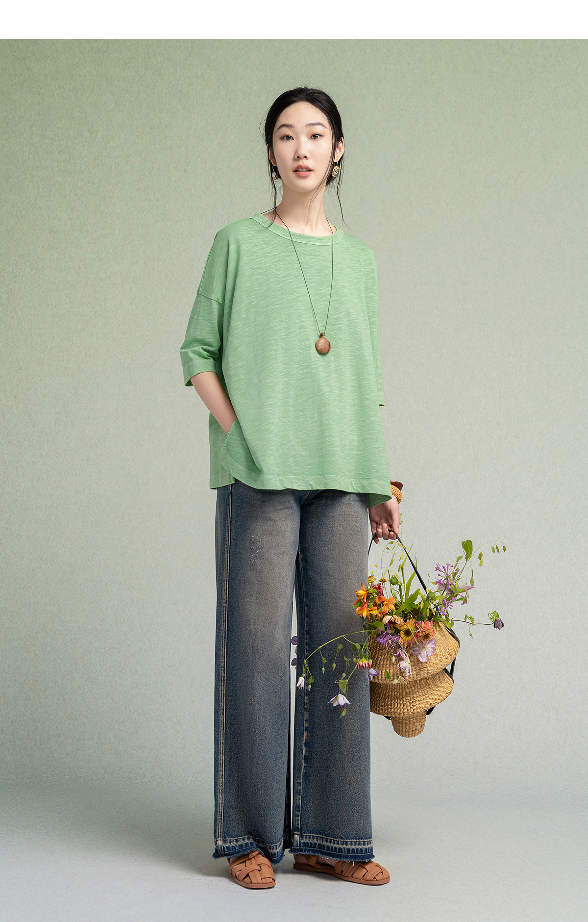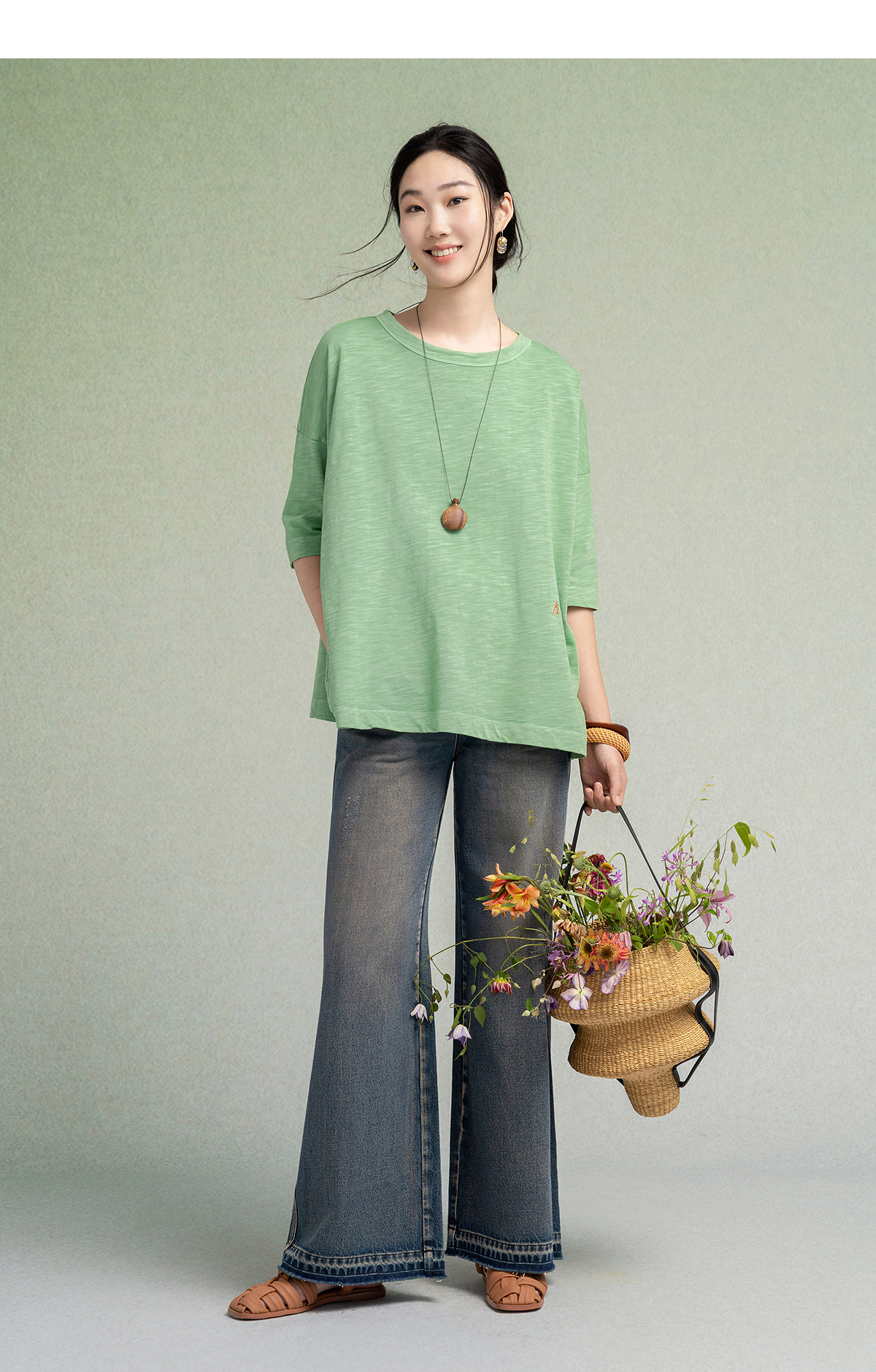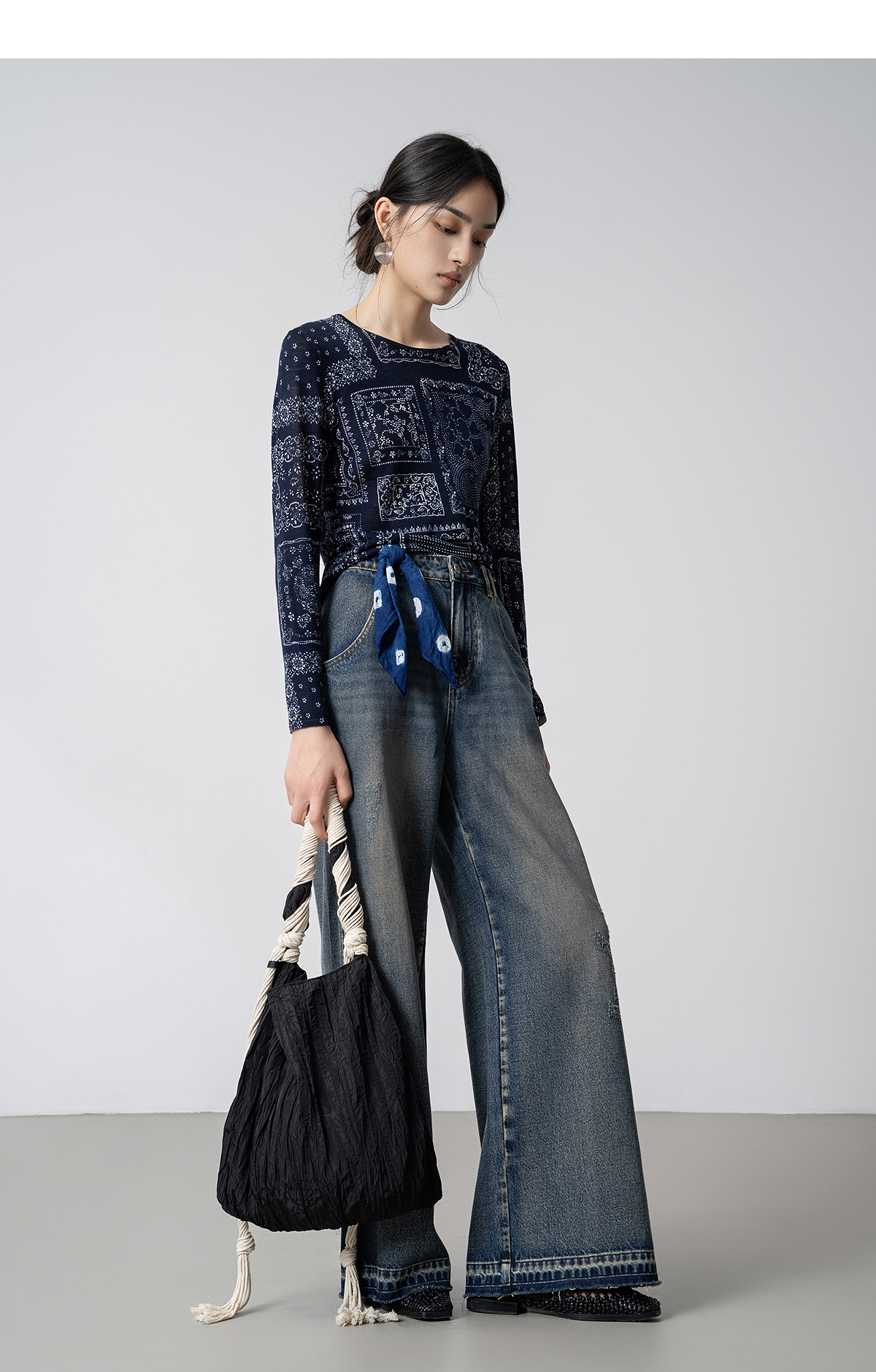 【林栖设计小店】【草木丹宁】纯棉牛仔裤配植物染方巾2025秋季新款阔腿裤G1653004