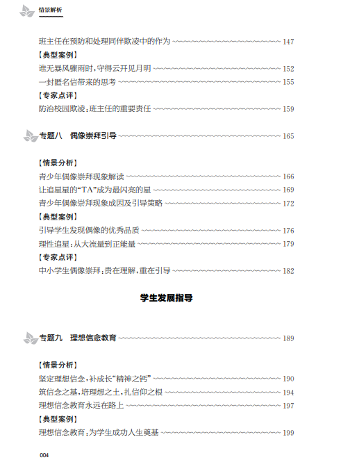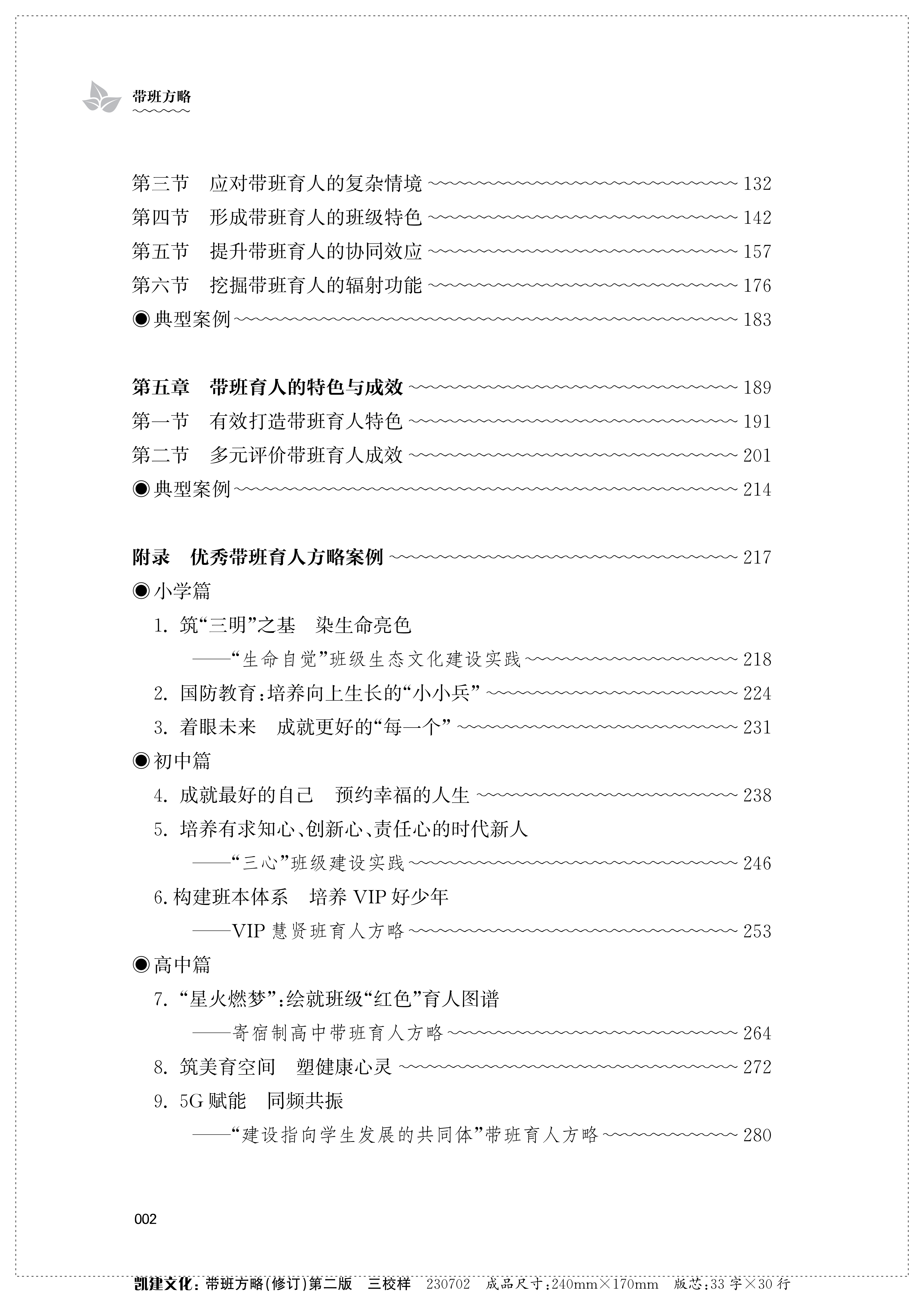 本书针对中小学生成长中的新情况、新特点、新问题给予解答,体现带班育人方略特色,反映新时代班主任工作新理念、新追求、新策略,指导班主任树立整体思维与问题意识,深入整合教育资源,学会沟通与协调班级科任教师的教育力量,努力形成家校共育的教育合力,从而综合体现班主任教育理念与实践智慧,不断培根铸魂、启智润心。