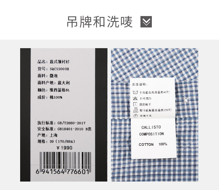 callisto维希蓝格微泡意式领衬衫 SQCSS003H