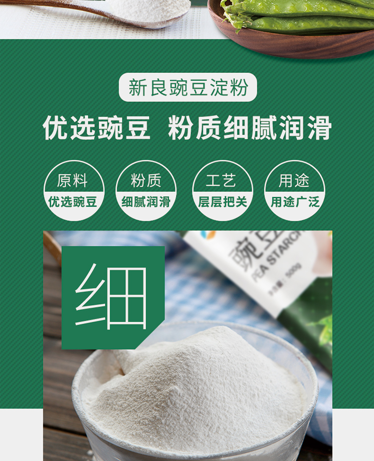 新良豌豆淀粉 凉粉凉皮原料 豌豆粉 四川特产白凉粉原料500g