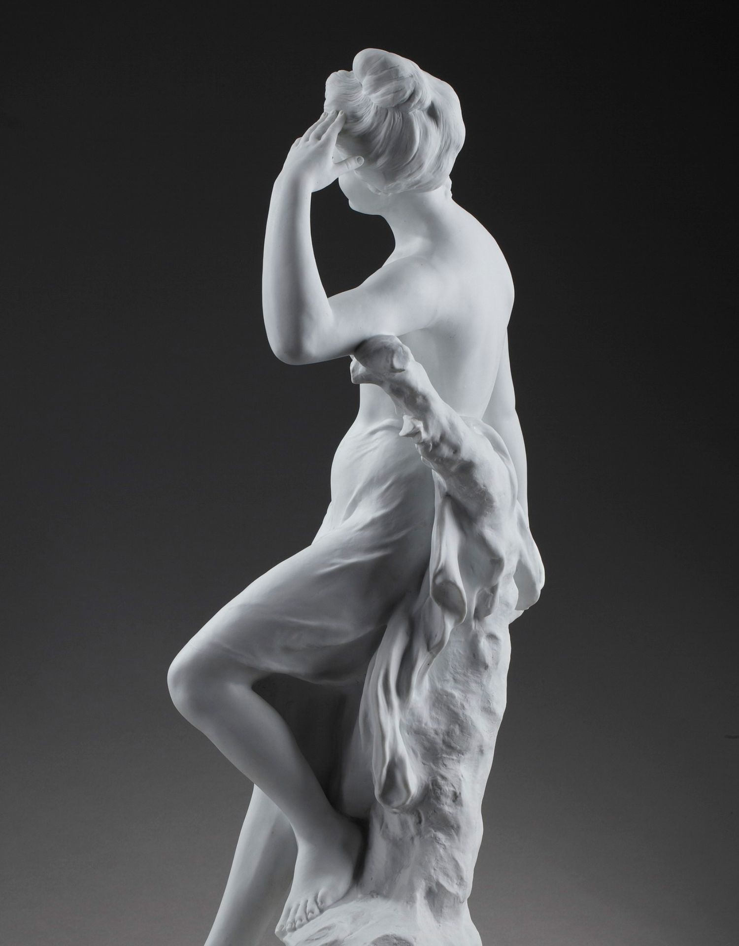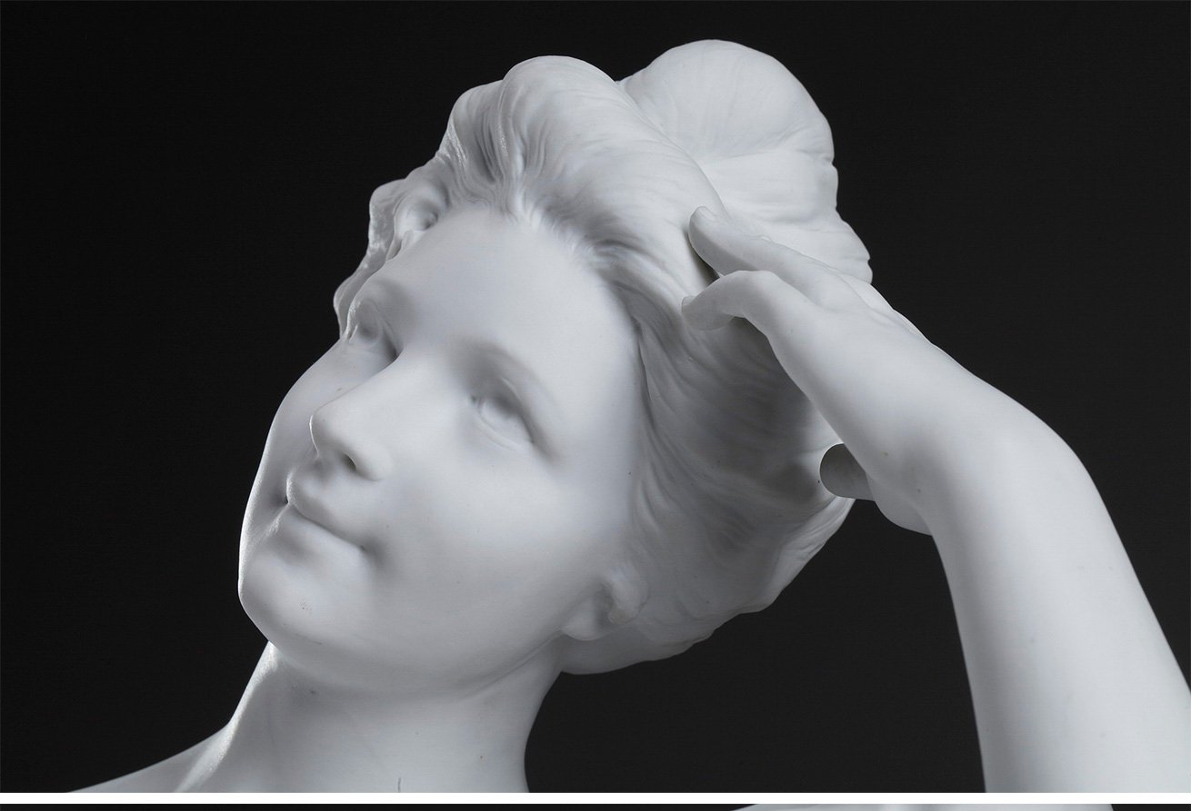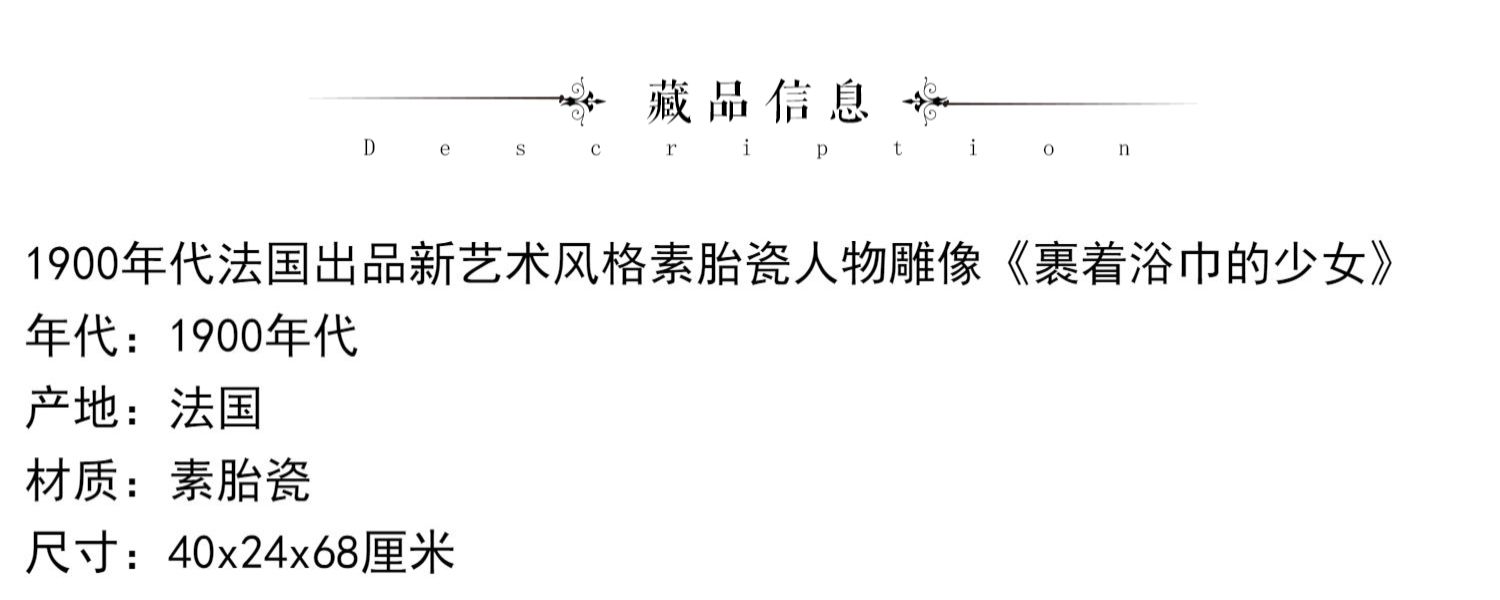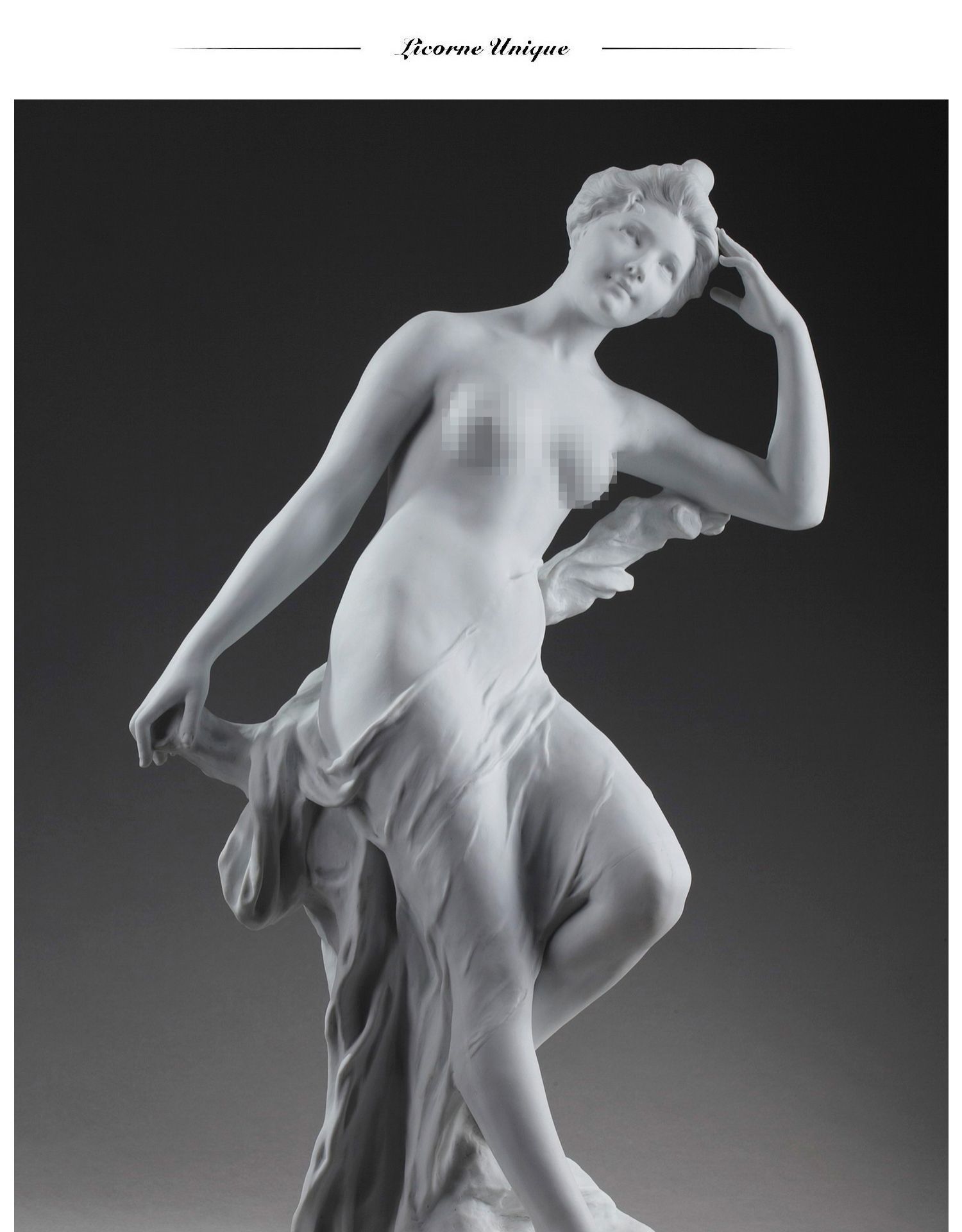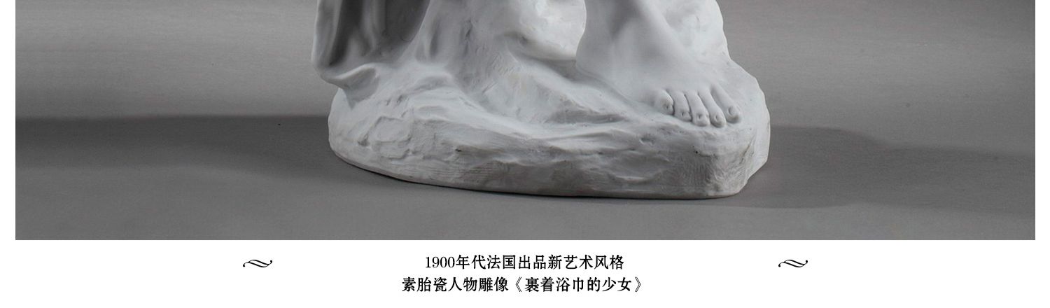 独角鹿西洋古董雕塑新艺术风格素胎瓷人物雕像《裹着浴巾的少女》