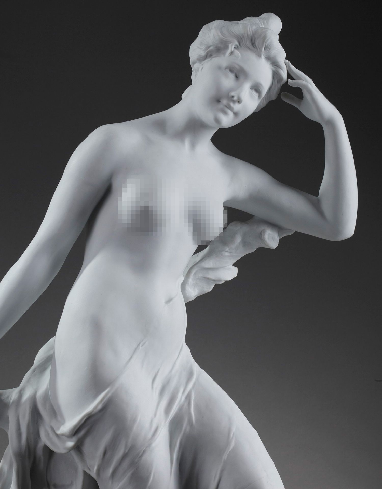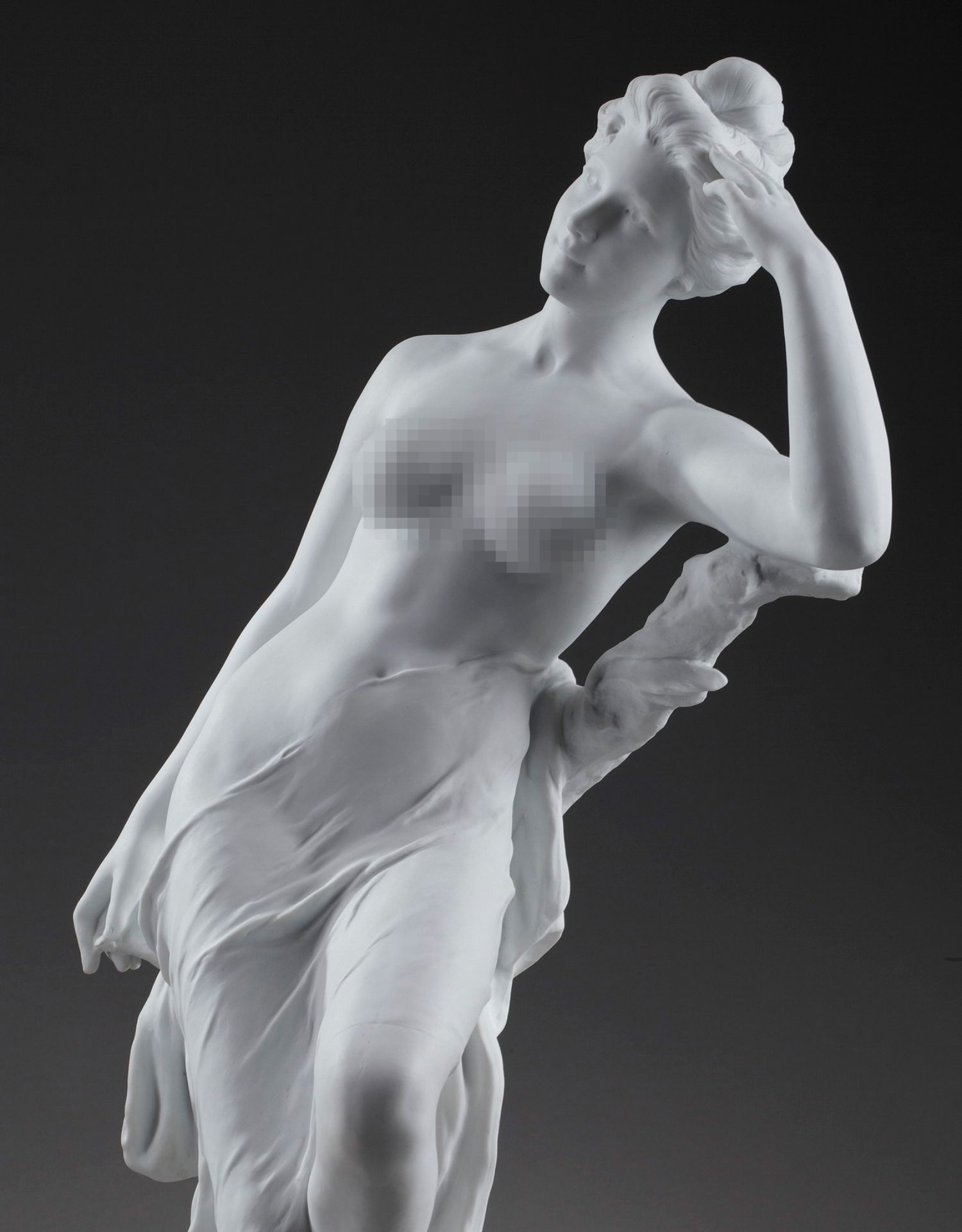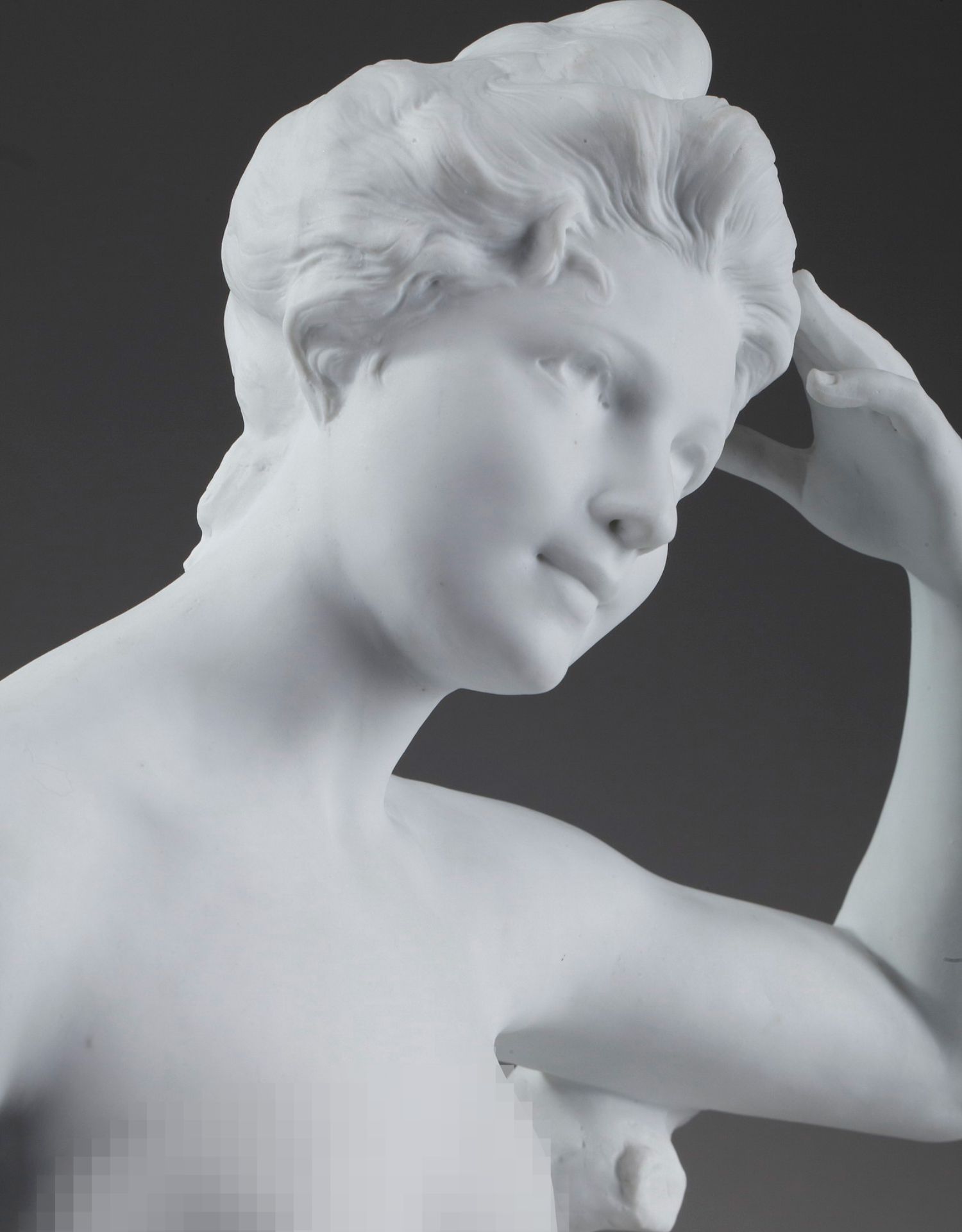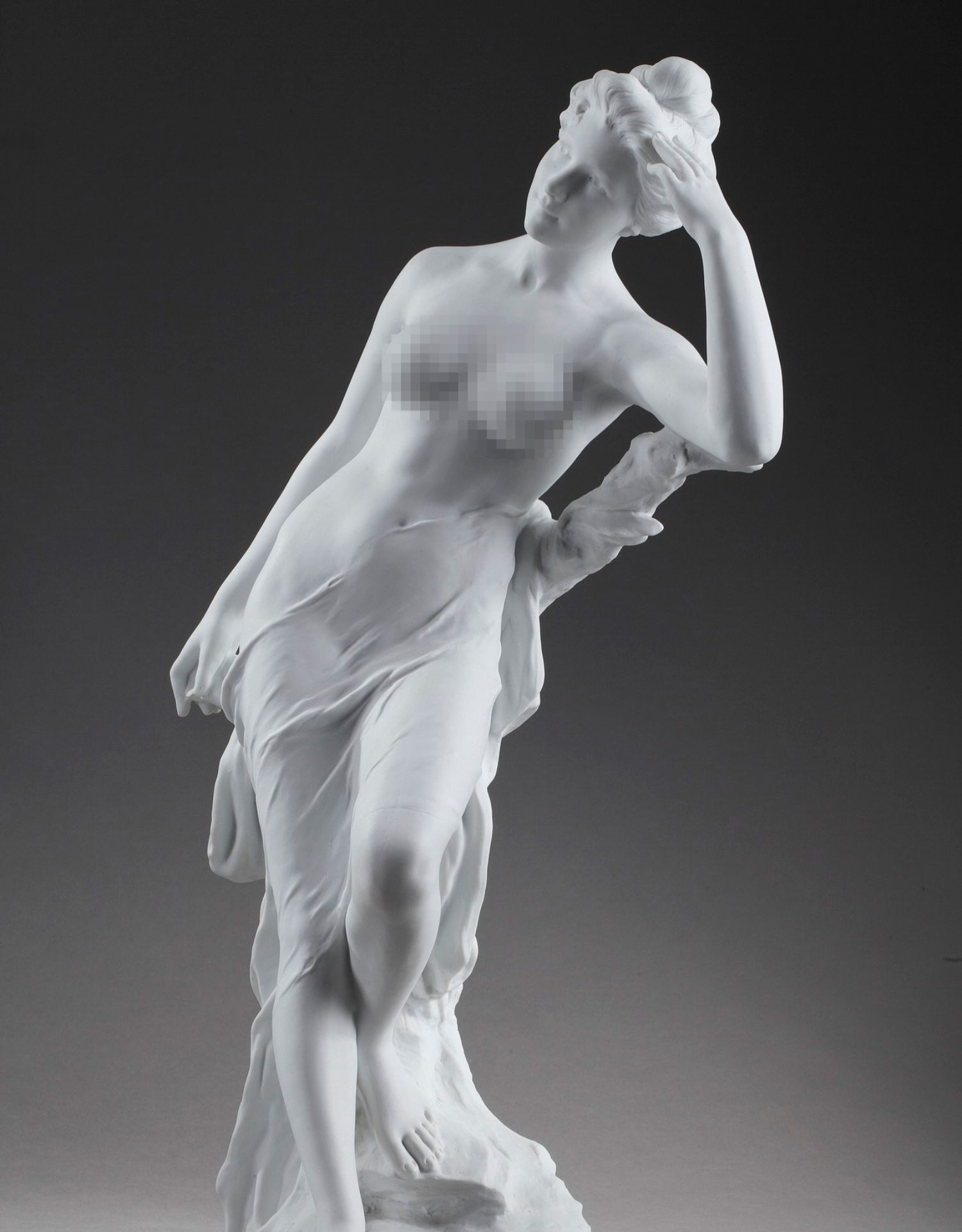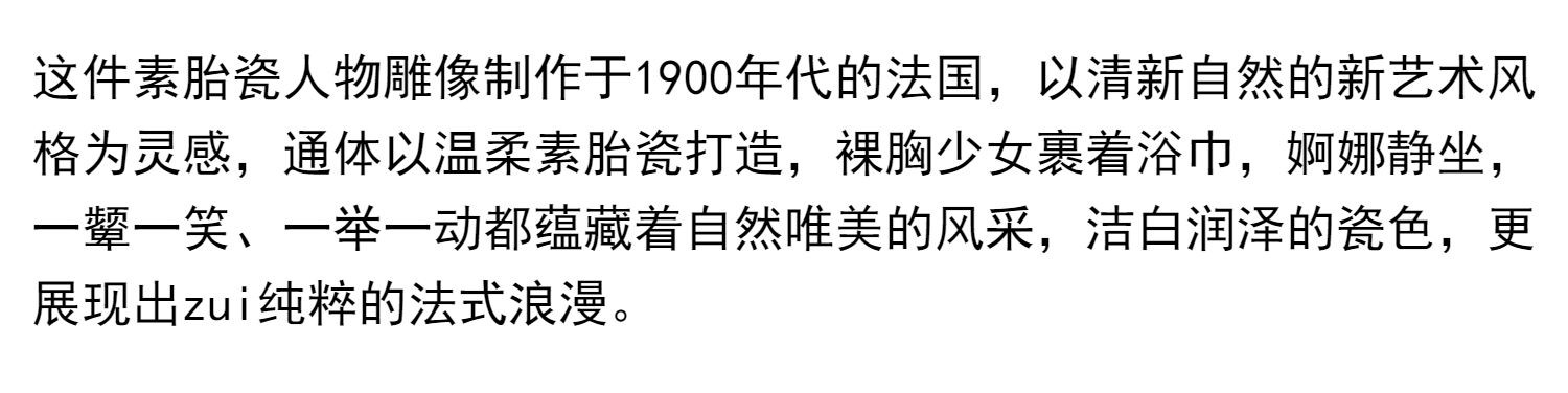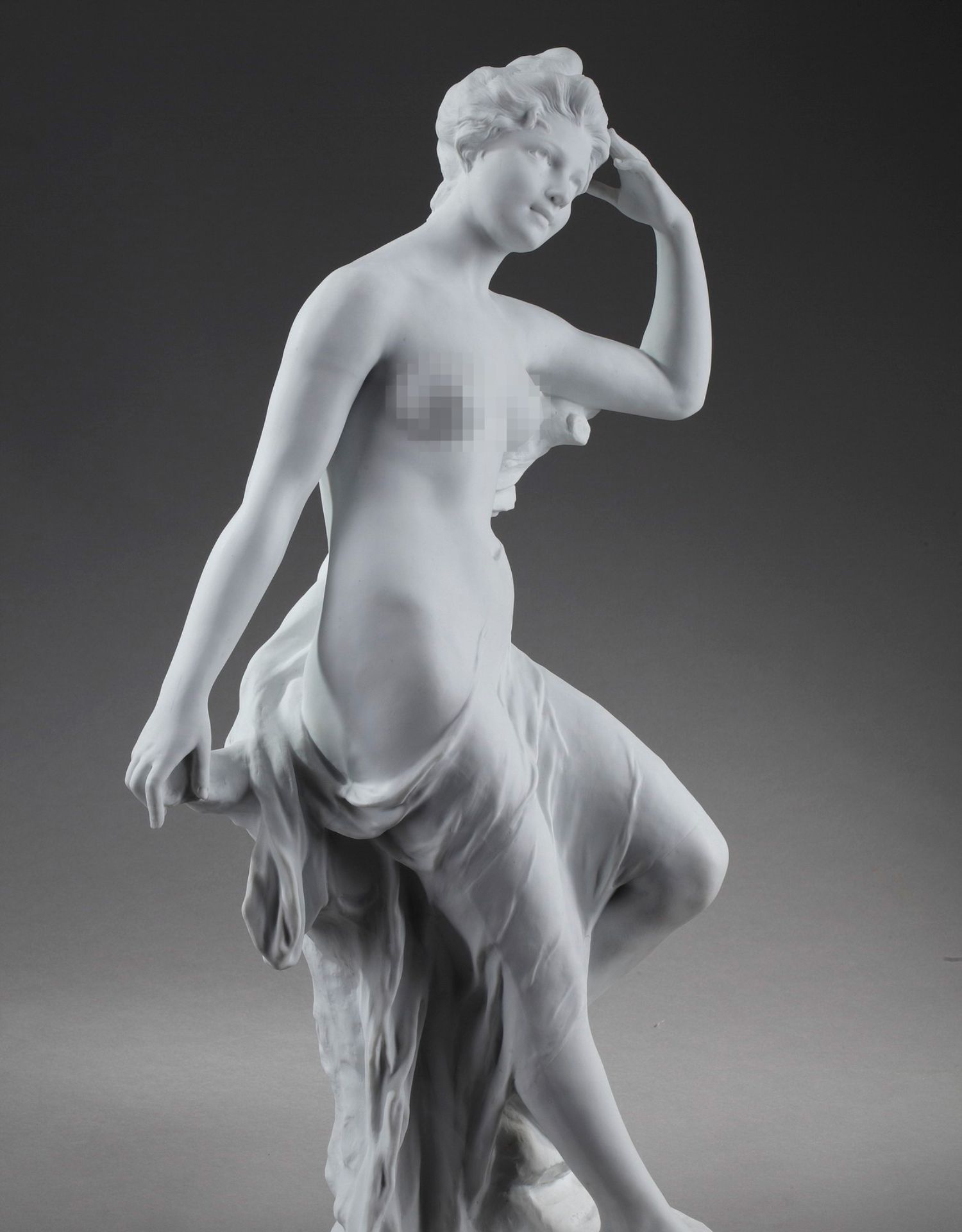 独角鹿西洋古董雕塑新艺术风格素胎瓷人物雕像《裹着浴巾的少女》