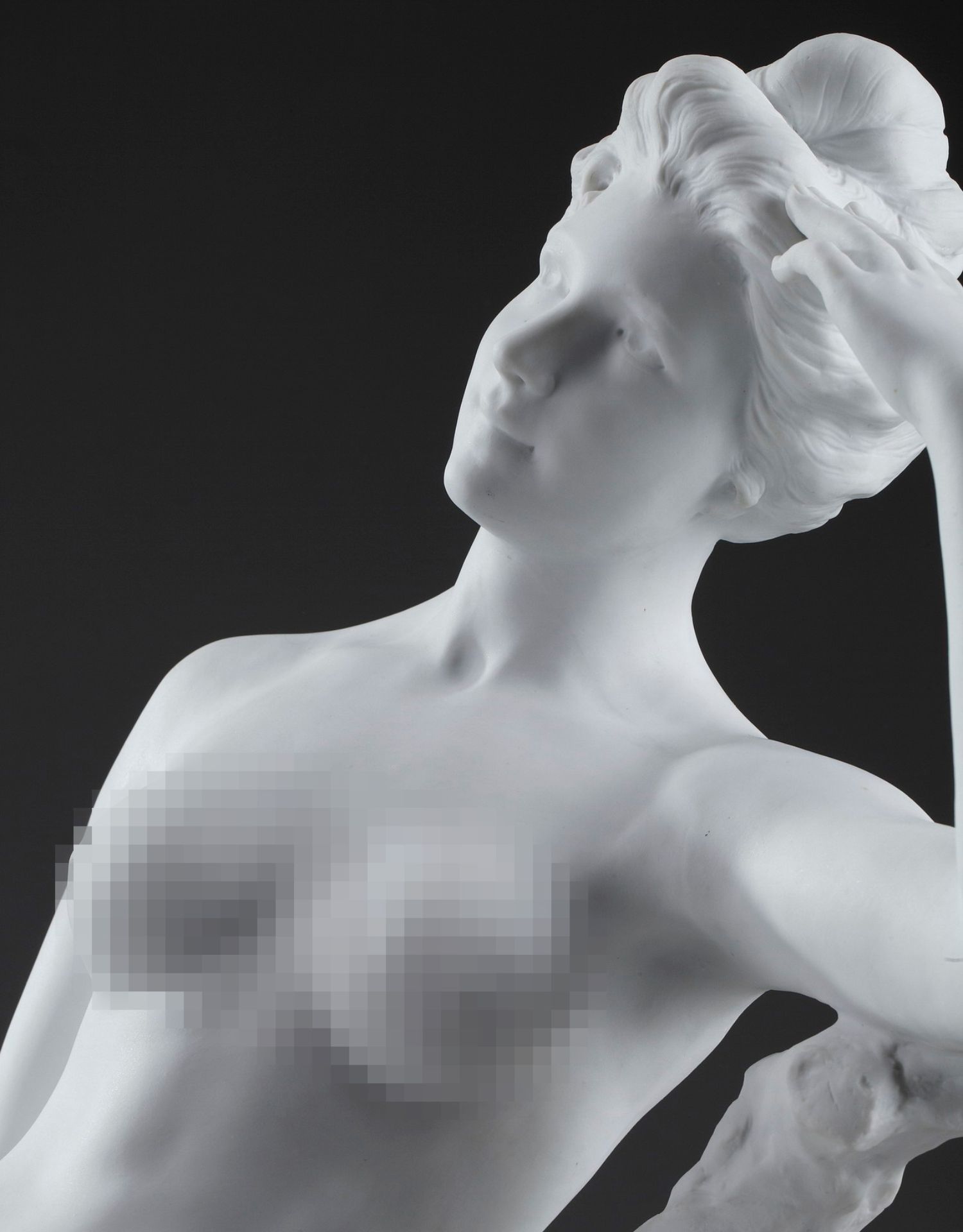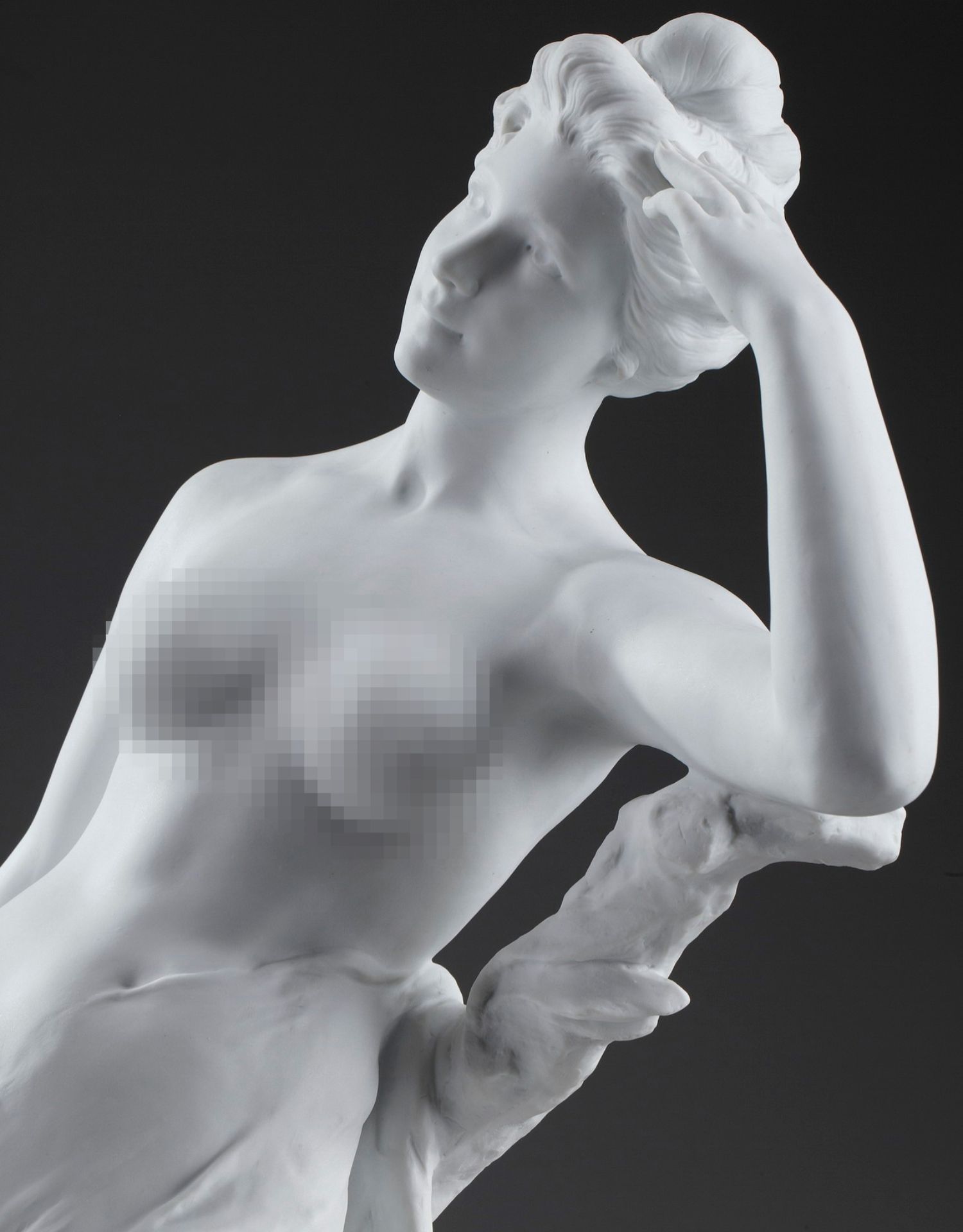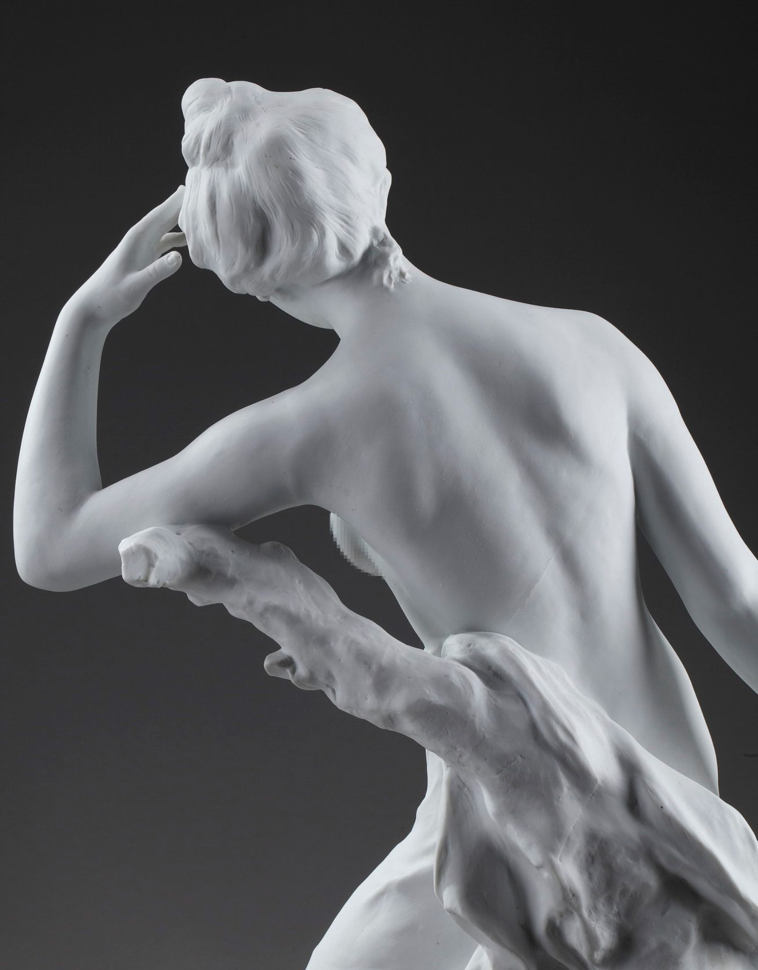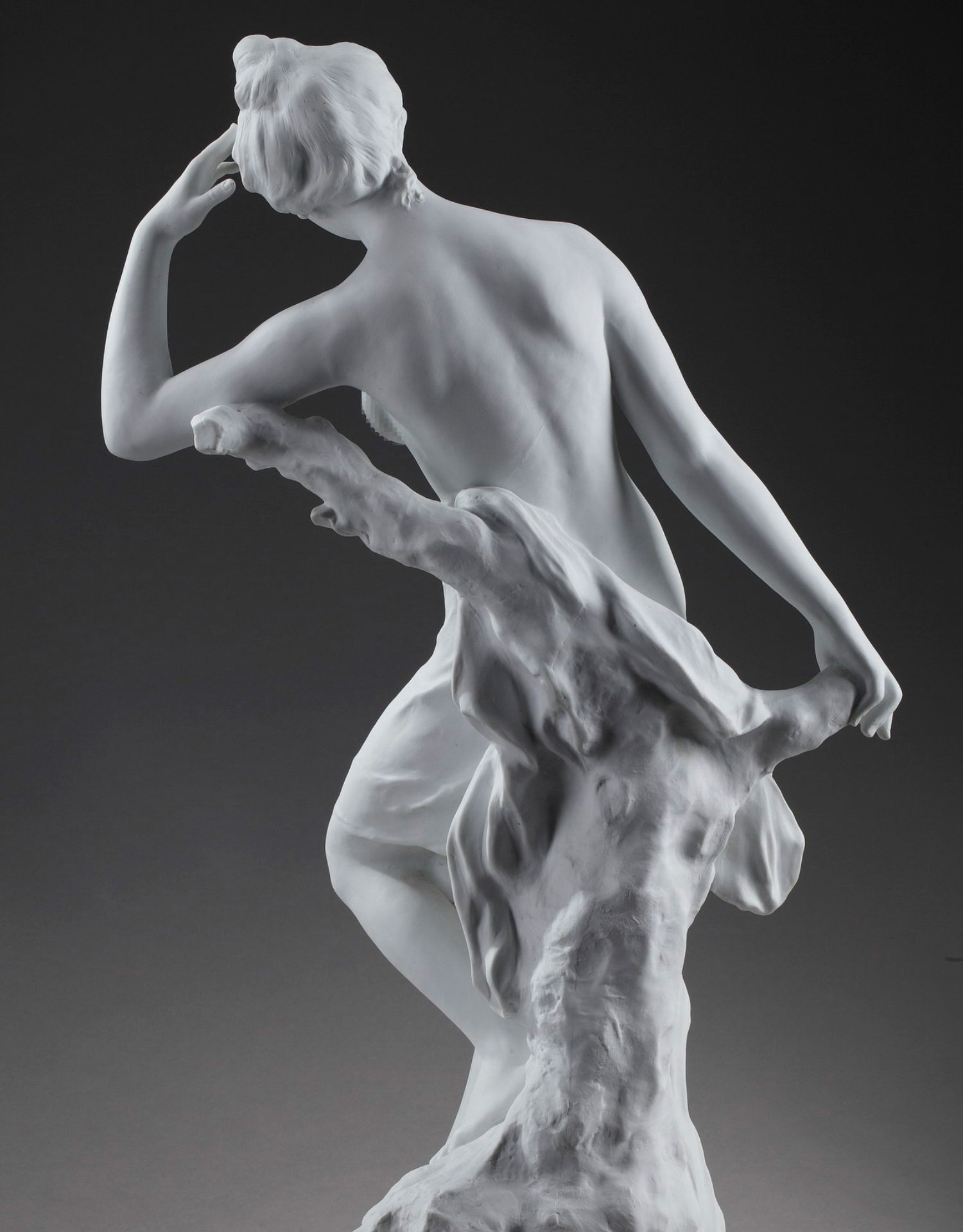 独角鹿西洋古董雕塑新艺术风格素胎瓷人物雕像《裹着浴巾的少女》