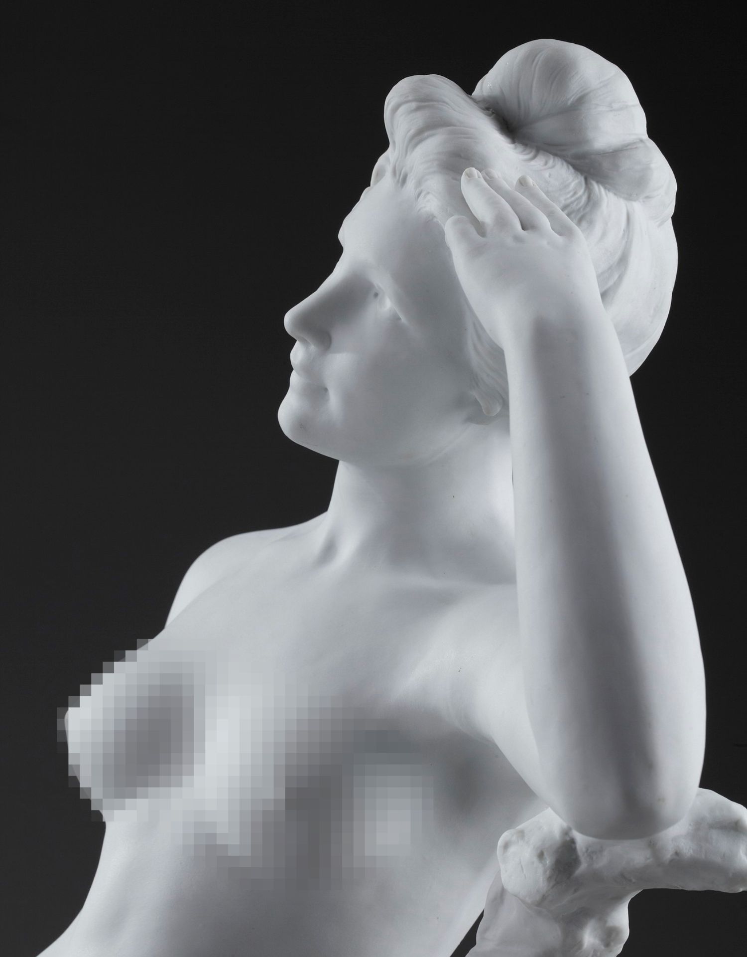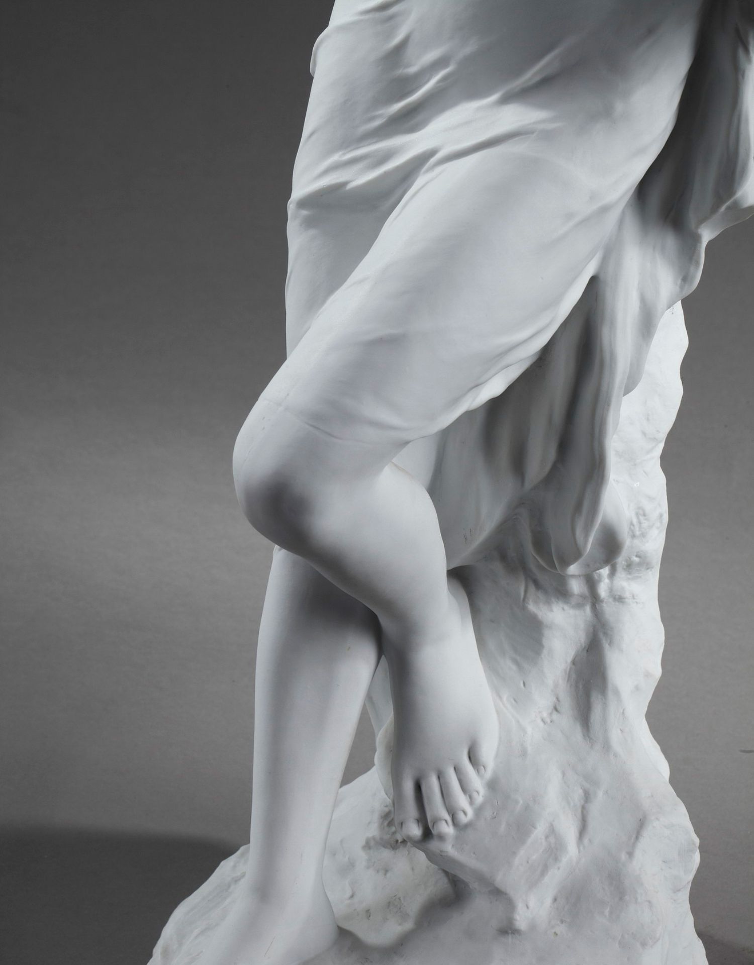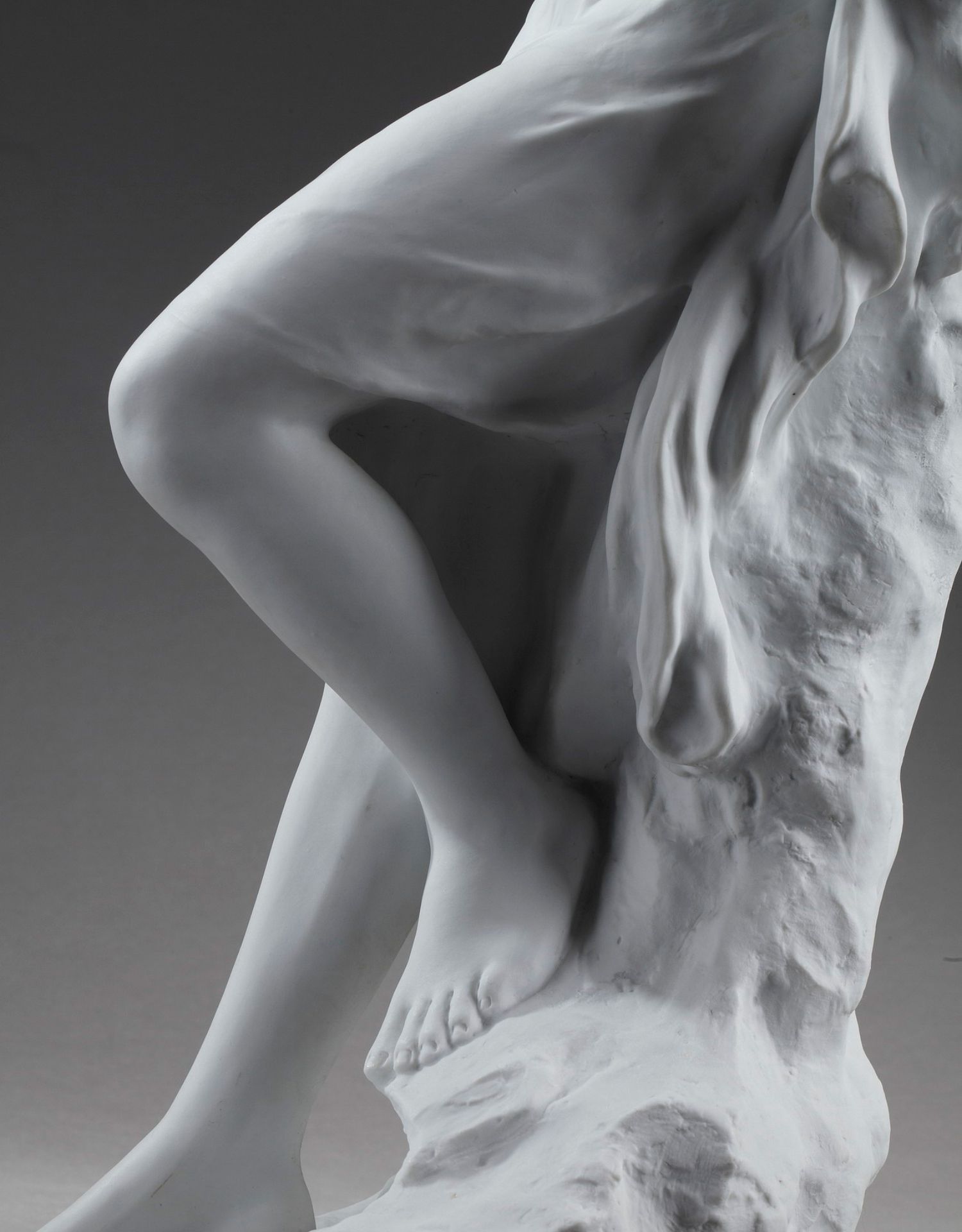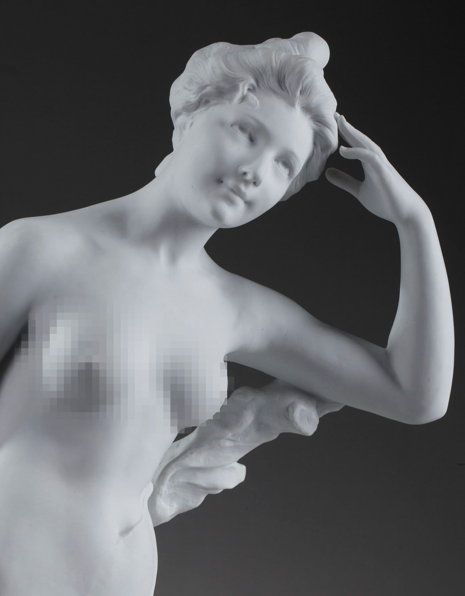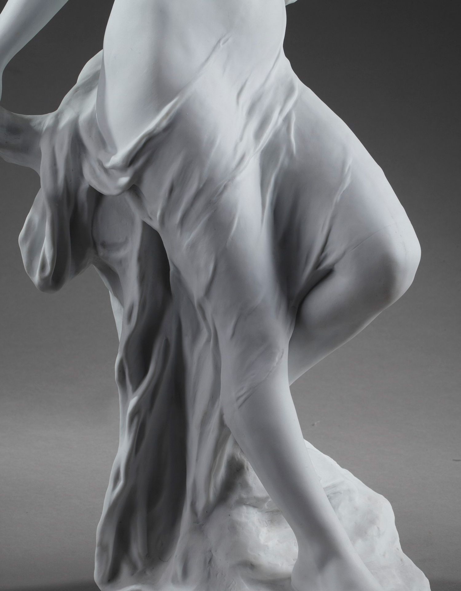 独角鹿西洋古董雕塑新艺术风格素胎瓷人物雕像《裹着浴巾的少女》