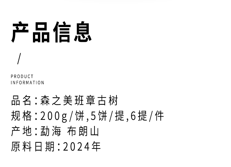 2024年 班章老寨 森之美 拍5发6 普洱茶 生茶 200g/饼
