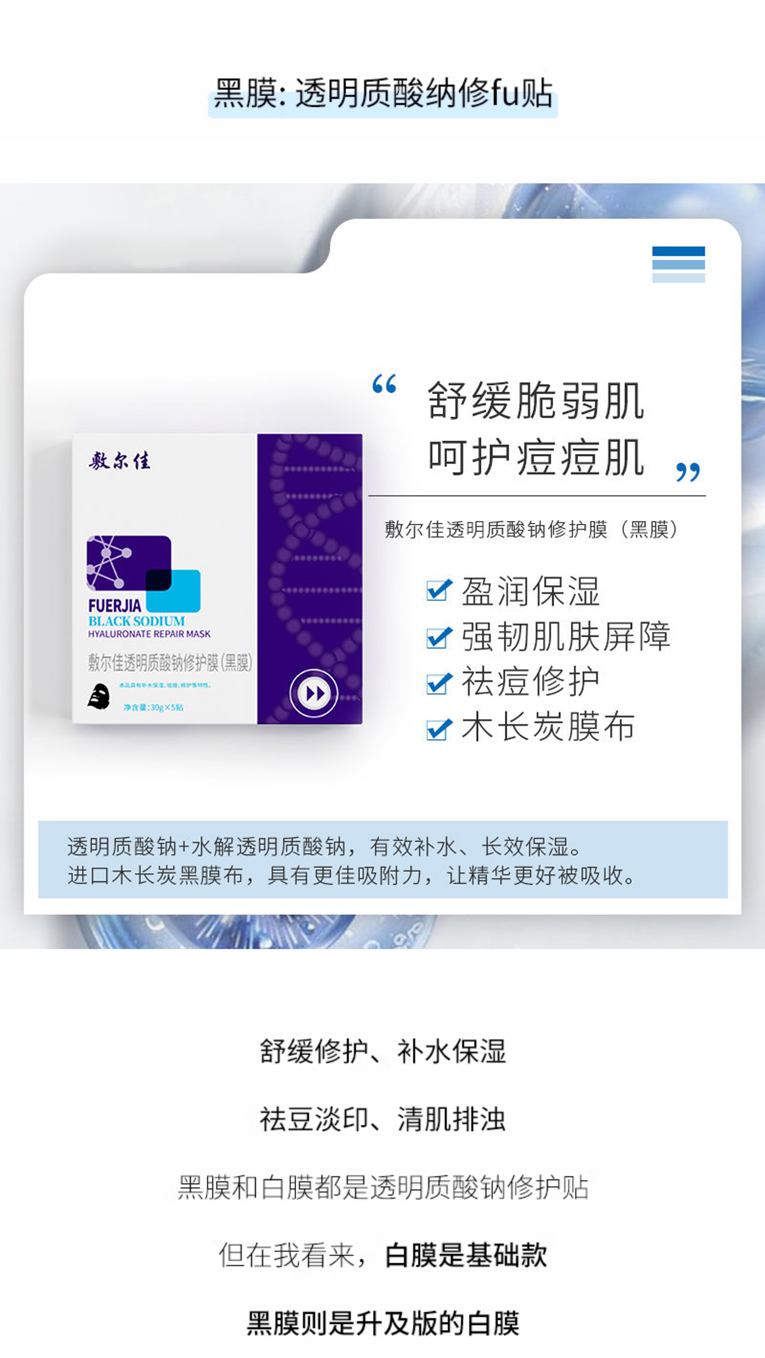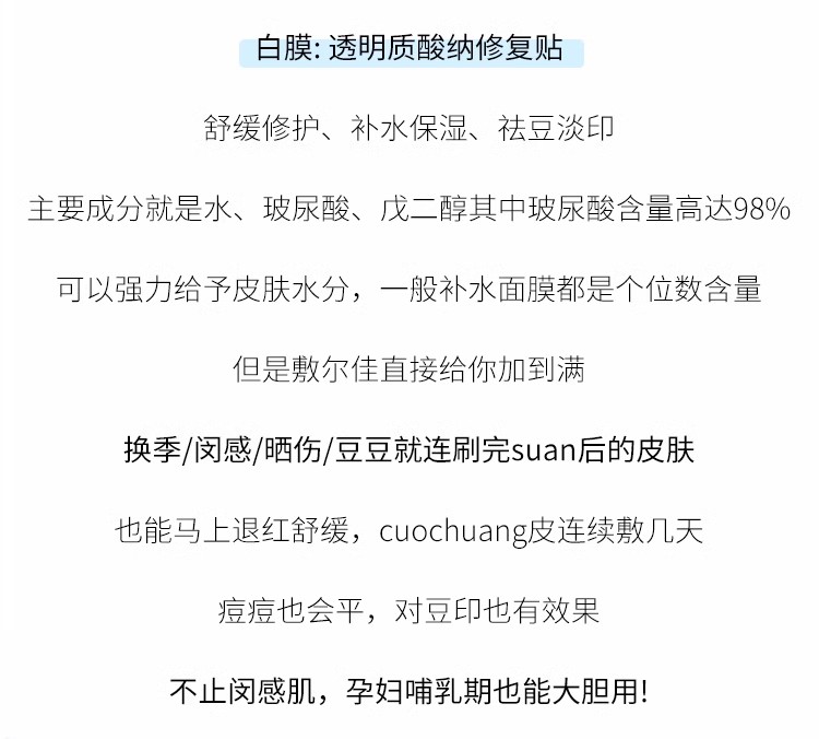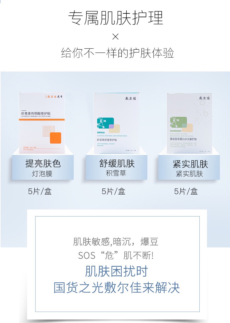 敷尔佳面膜 黑膜白膜绿膜灯泡膜虾青素积雪草面膜 补水修护 5片/盒voolga 妆字号