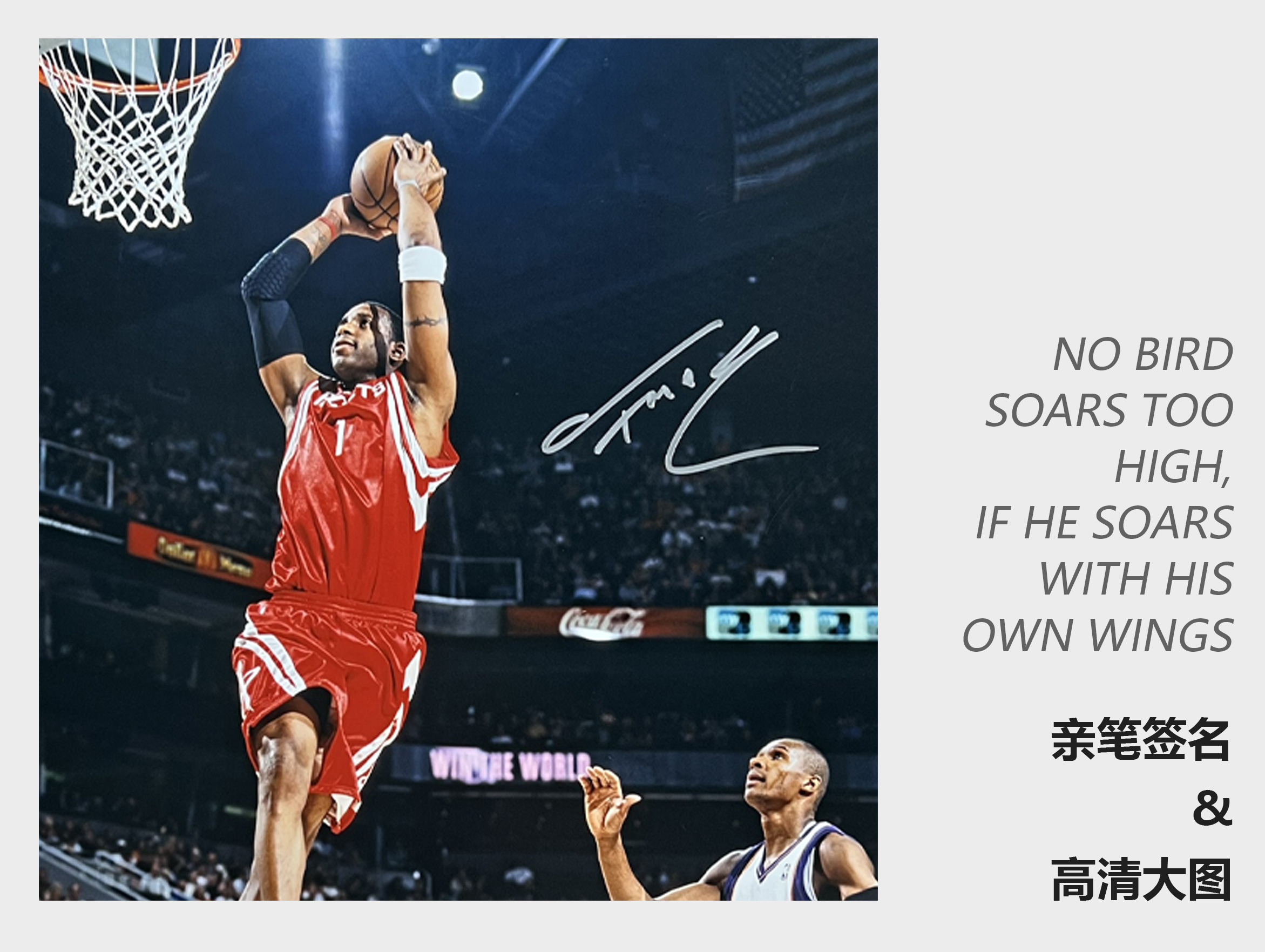 收藏系列 麦迪 火箭队 双手扣篮 亲笔签名照片
