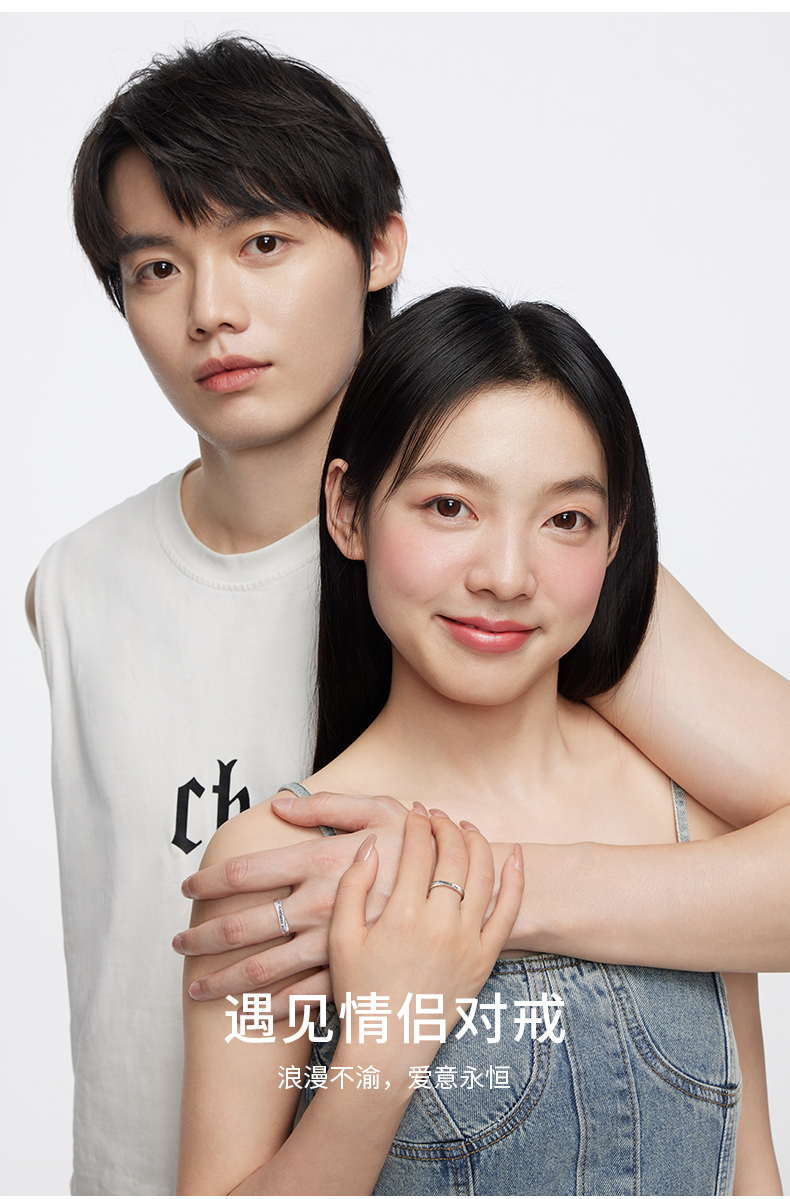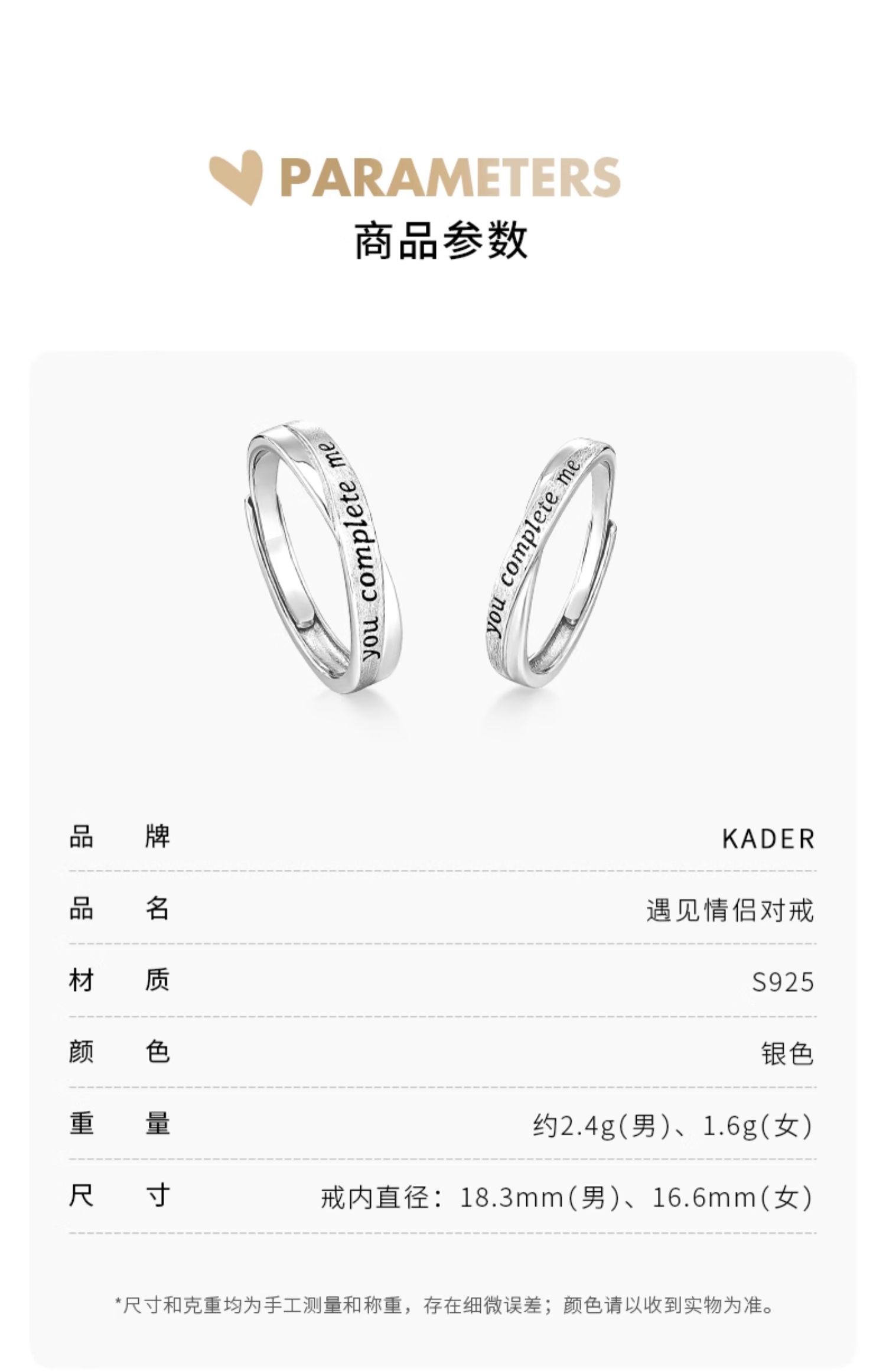 卡蒂罗遇见情侣对戒925银小众设计素圈戒指一对指环生日礼送女友