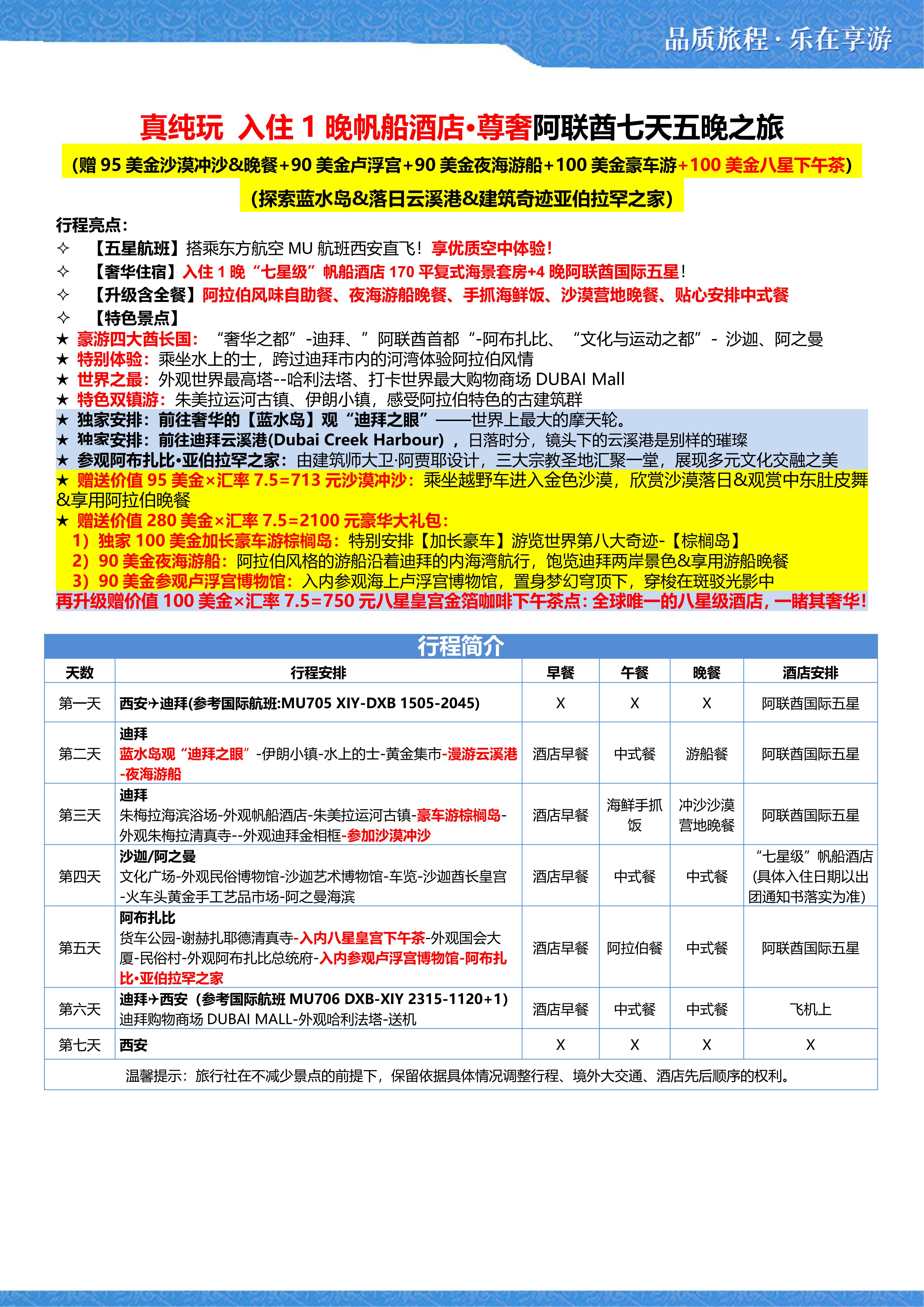 【阿联酋】尊奢plus纯玩7天5晚