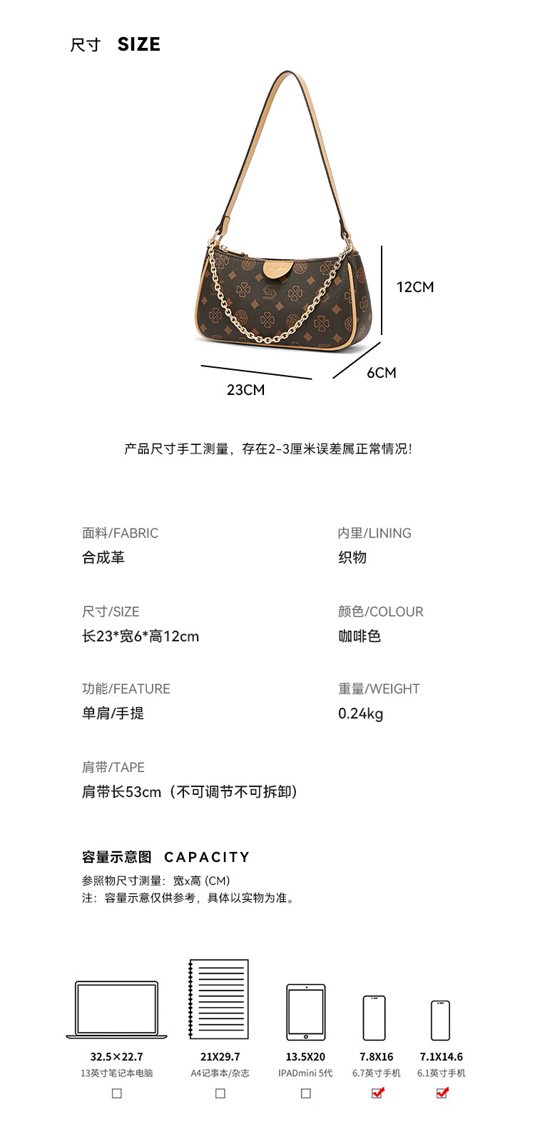 星期六老钱风链条印花腋下单肩包SSD521A03D