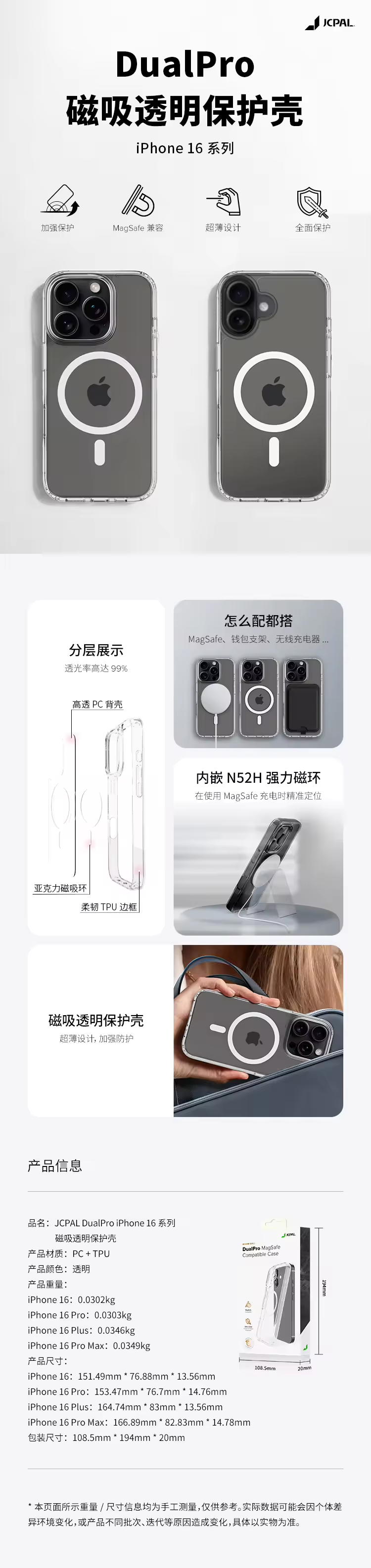 保护壳 磁吸透明 - jcpal(适用 iPhone 16/iPhone 16 Pro/iPhone 16 Pro Max)