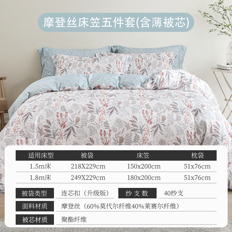 雅芳婷新款摩登丝床笠款睡之锦囊五件套轻奢高级真丝被套套件床品