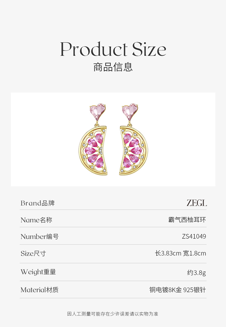 ZEGL设计师水果系列西柚耳环女小众设计感高级耳钉925银针耳饰品