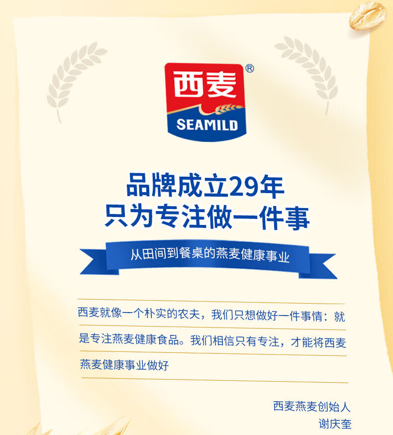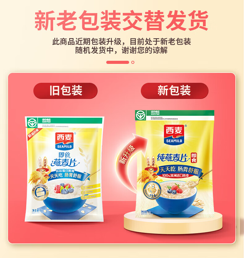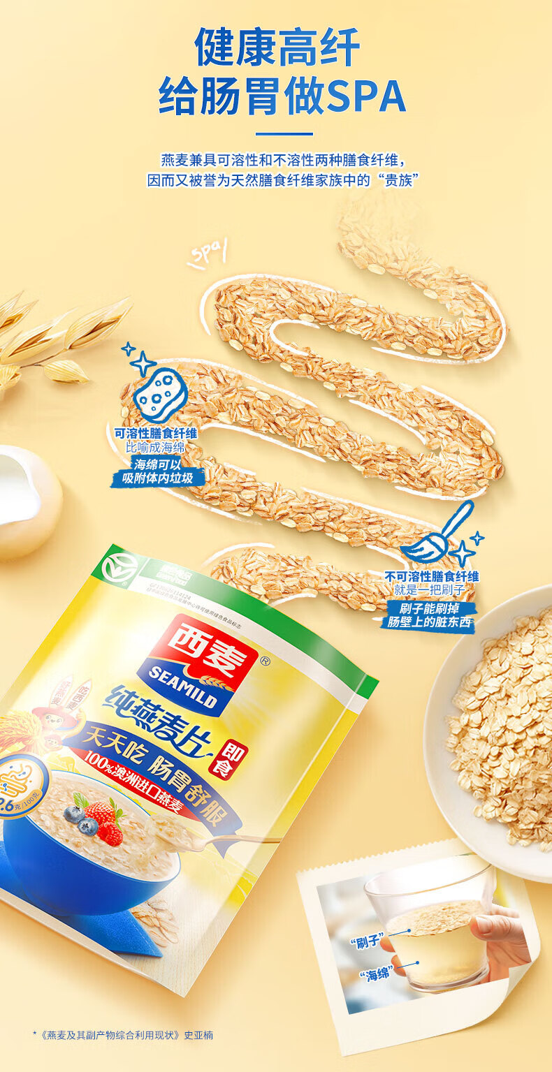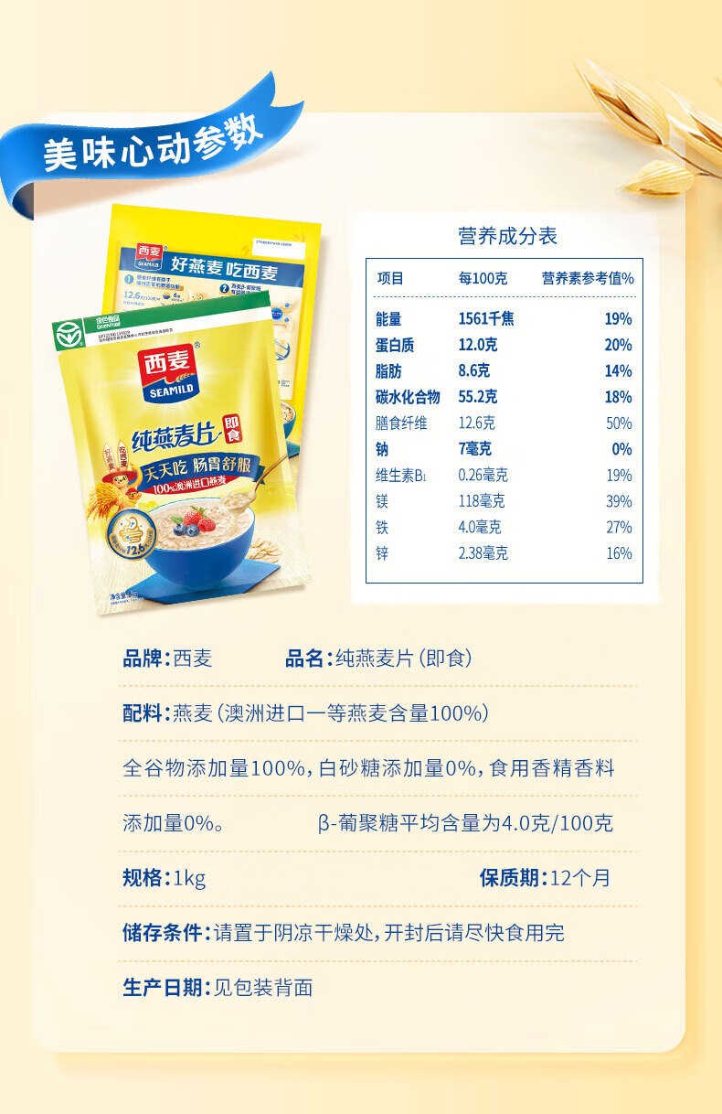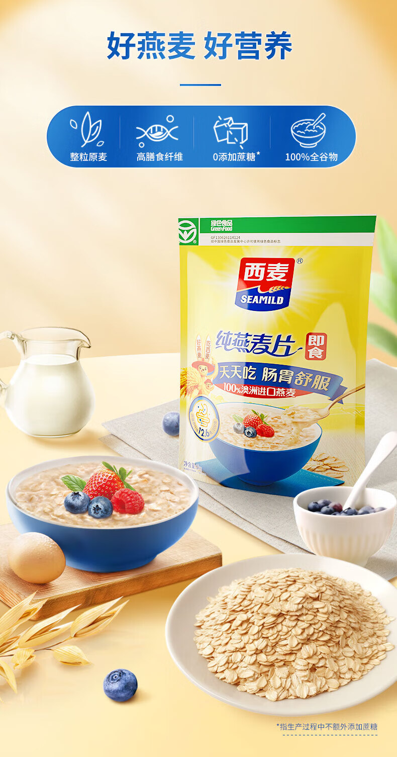 西麦即食纯燕麦片1000g*3袋 冲饮谷物 未添加蔗糖 速食营养早餐代餐