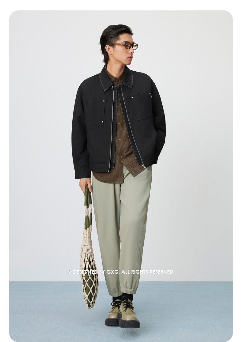GXG男装 微肌理时尚通勤商务设计感简约立领夹克外套 25年春热卖