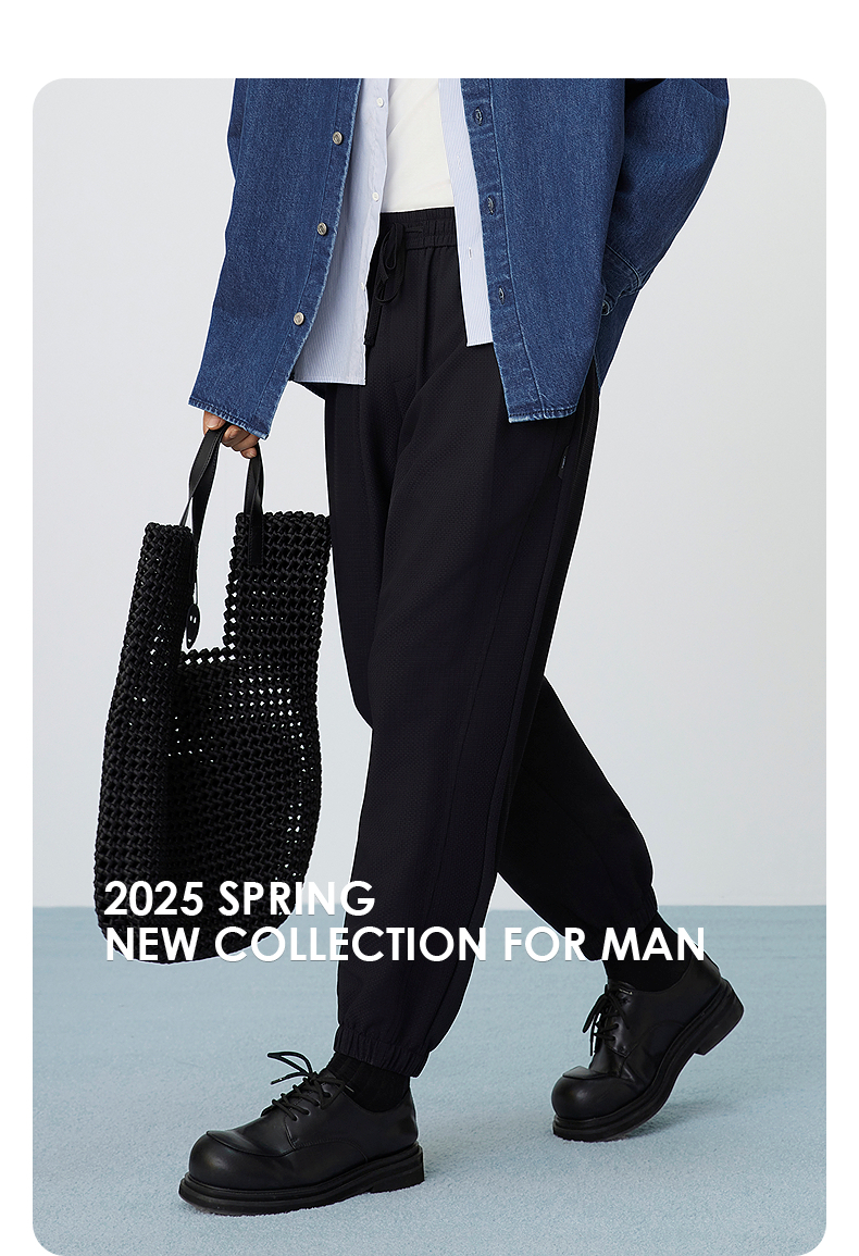【肌理】GXG男装 简约设计感束脚休闲裤男宽松通勤长裤 25春热卖