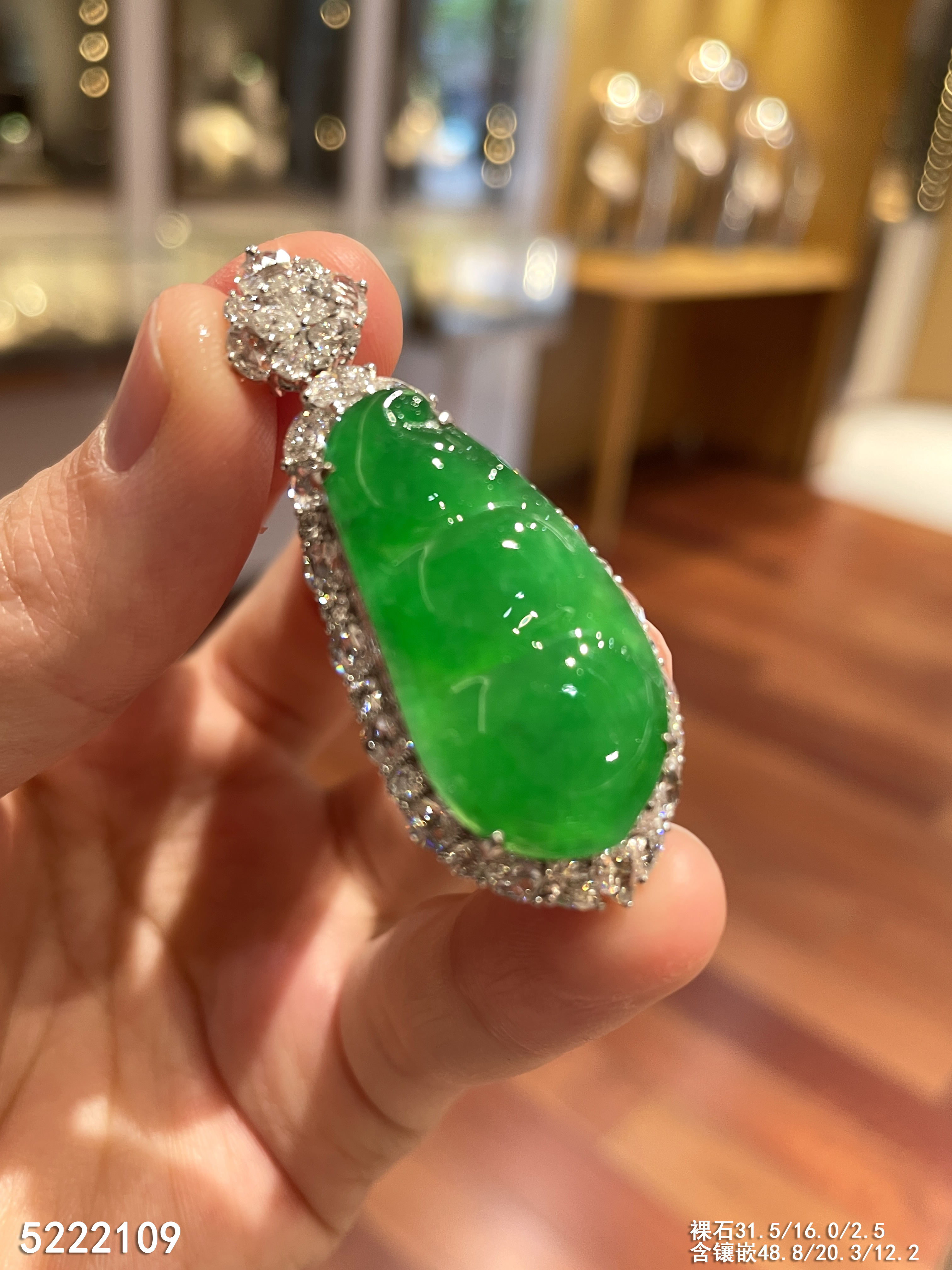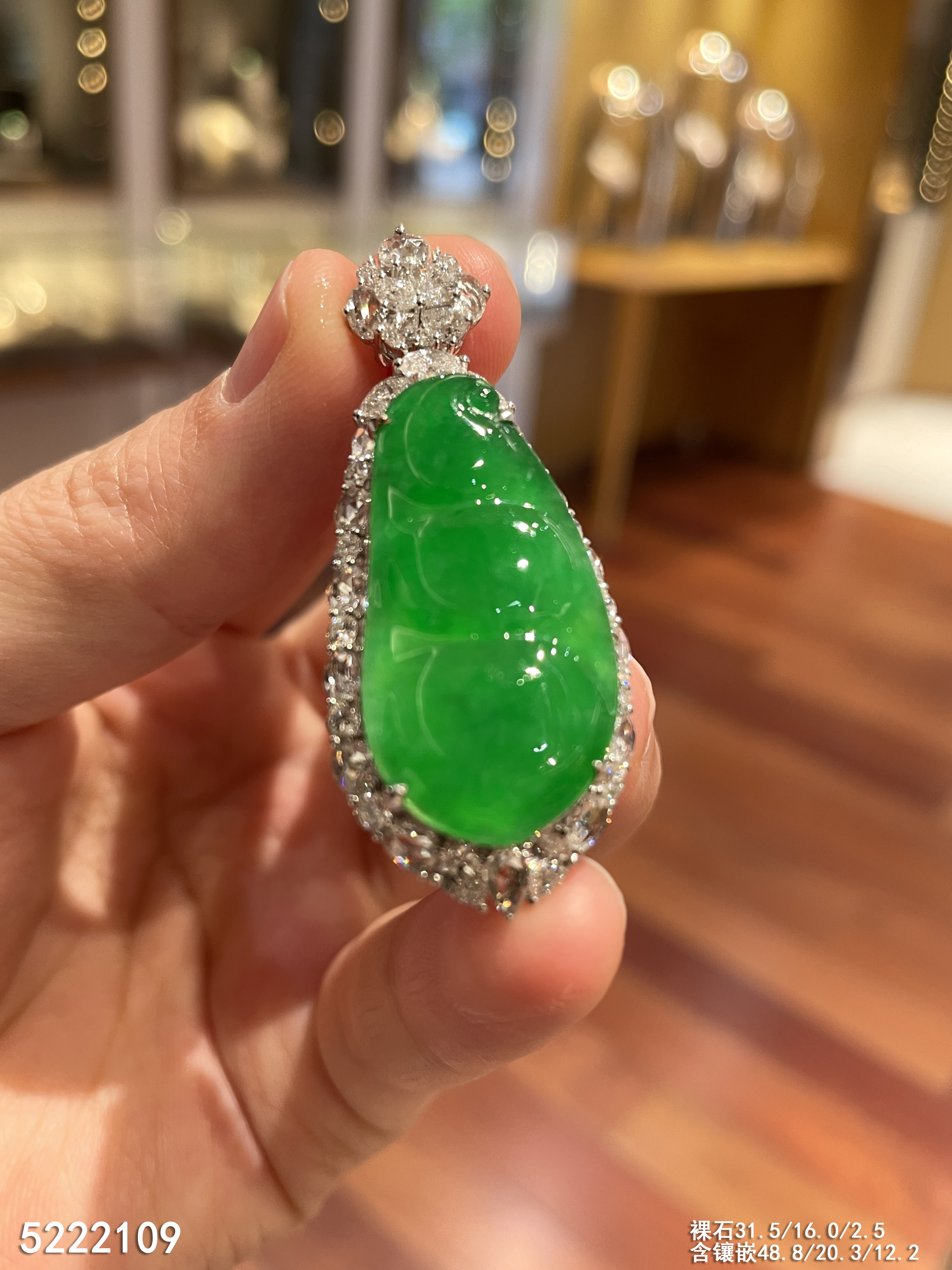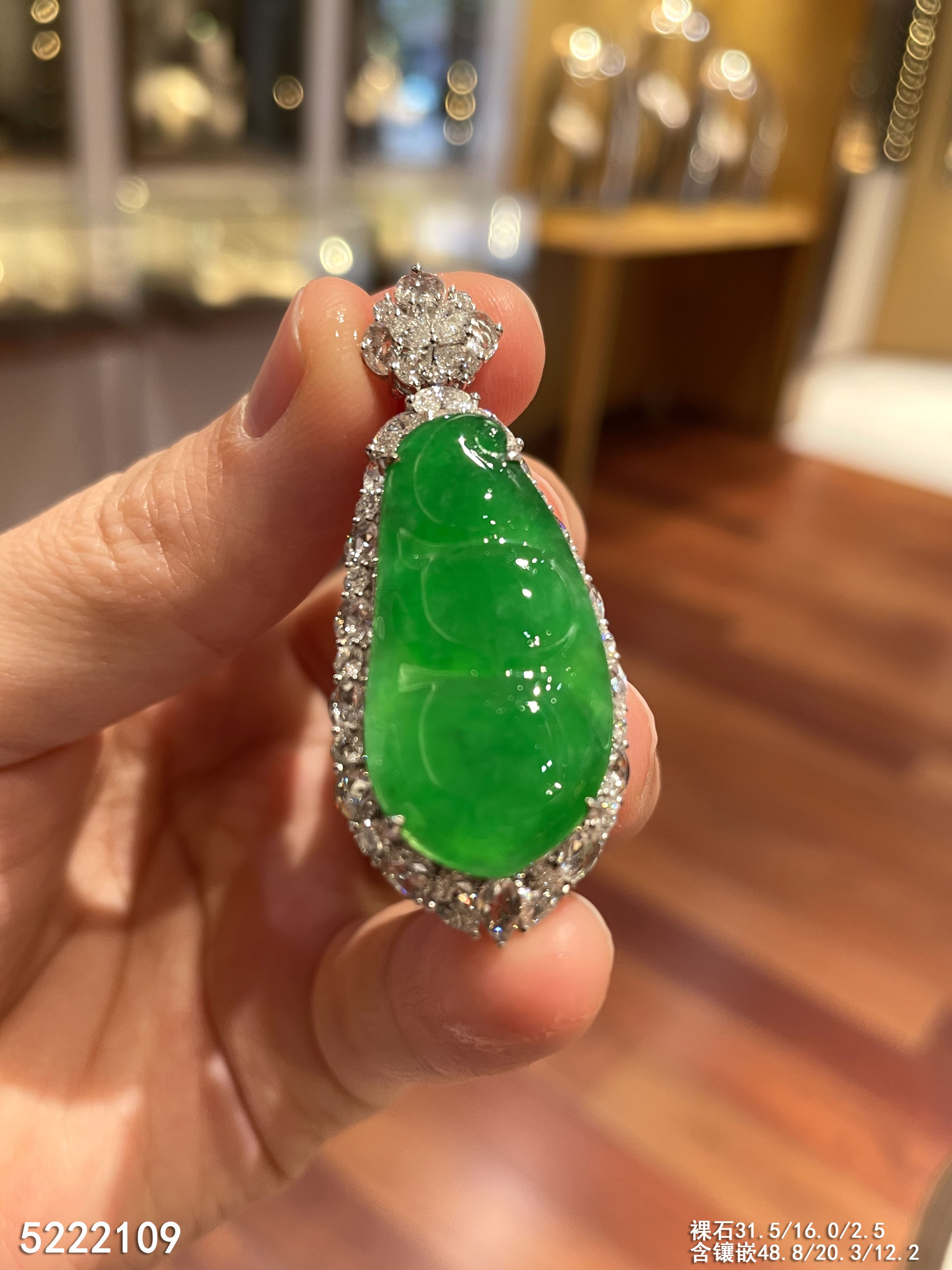老坑高冰种艳绿富贵豆吊坠【5222109】具体价格微信咨询